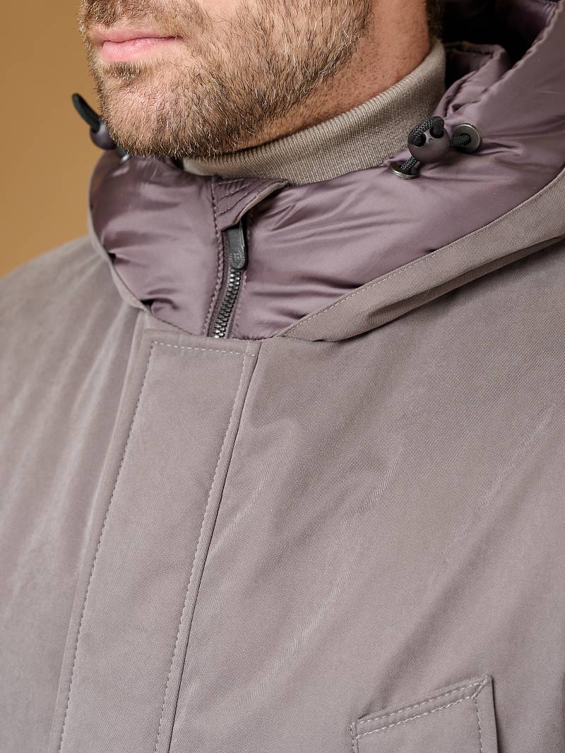Мужская парка с глубоким регулируемым капюшоном станет хорошим спутником в переменчивую погоду. Ткань верха с мембраной TPU, современная одежда из материалов с ТПУ покрытием отличается отличной дышащей способностью, что в сочетании с водонепроницаемостью и защитой от ветра обеспечивает комфорт пользователю. Теплозащита изделия достигается за счет наличия утеплителя в горизонтальных ячейках-камерах подкладки. Модель дополнили множеством функциональных карманов на магнитах и кнопках, штормовой планкой и патой на рукавах, наличием капюшона из отделочной ткани. На подкладке - имеются верхние и нижние карманы для документов. Длина изделия по спинке для роста 176 - 90см. Ткань верха: 55% нейлон, 45% хлопок. Подкладка: 100%полиэстер. Утеплитель: термоплюс 150гр/150гр