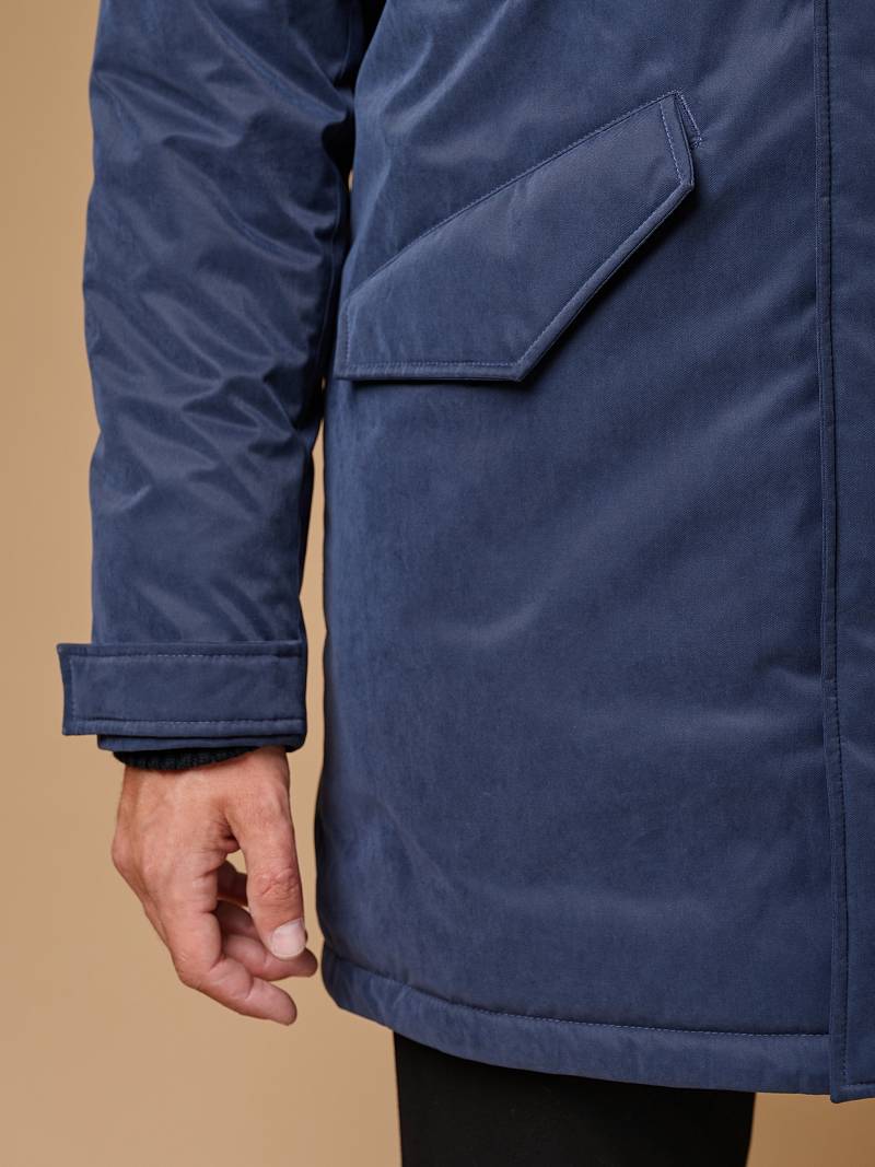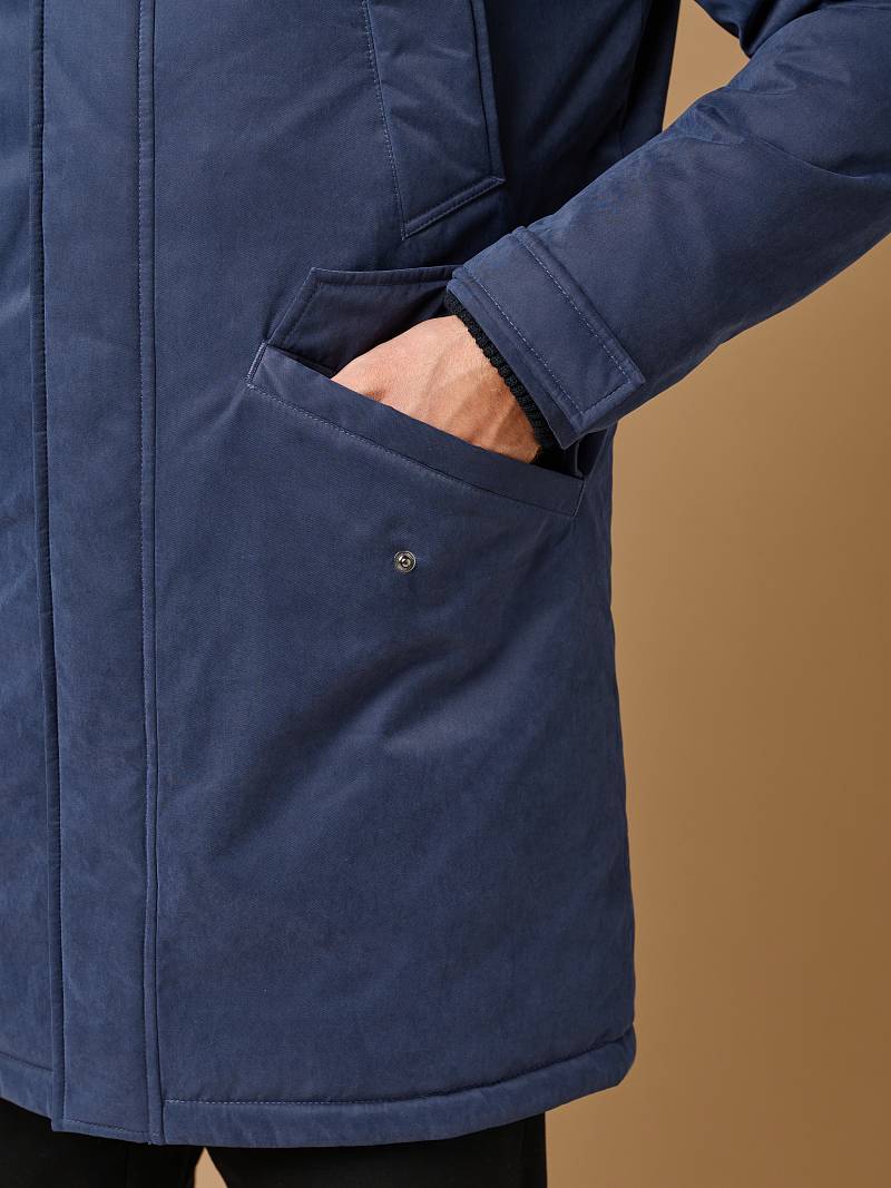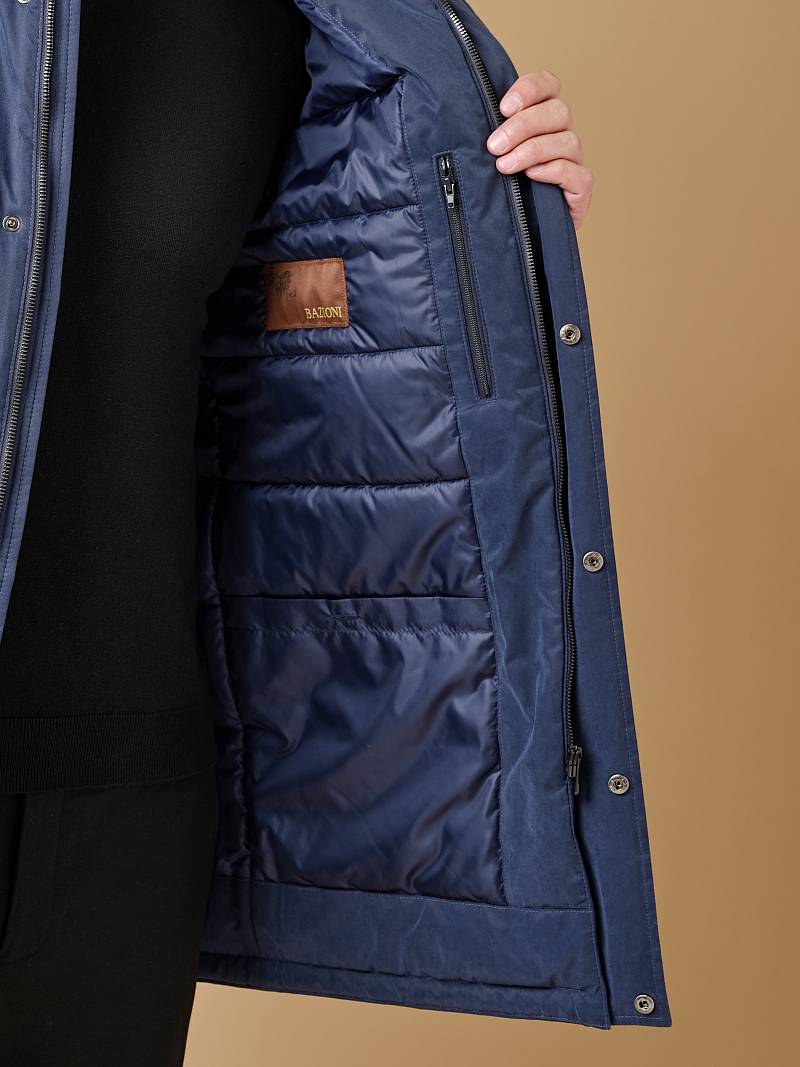 Мужская парка с глубоким регулируемым капюшоном станет хорошим спутником в переменчивую погоду. Ткань верха с мембраной TPU, современная одежда из материалов с ТПУ покрытием отличается отличной дышащей способностью, что в сочетании с водонепроницаемостью и защитой от ветра обеспечивает комфорт пользователю. Теплозащита изделия достигается за счет наличия утеплителя в горизонтальных ячейках-камерах подкладки. Модель дополнили множеством функциональных карманов на магнитах и кнопках, штормовой планкой и патой на рукавах, наличием капюшона из отделочной ткани. На подкладке - имеются верхние и нижние карманы для документов. Длина изделия по спинке для роста 176 - 90см. Ткань верха: 55% нейлон, 45% хлопок. Подкладка: 100%полиэстер. Утеплитель: термоплюс 150гр/150гр