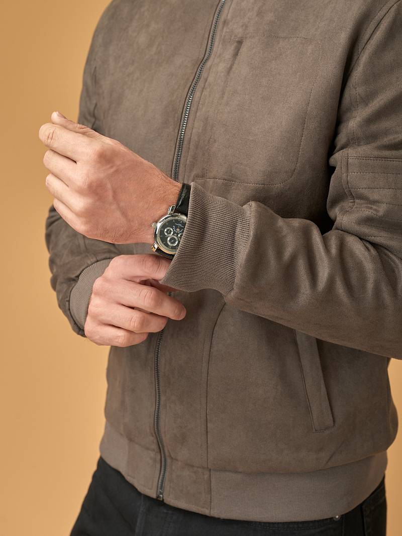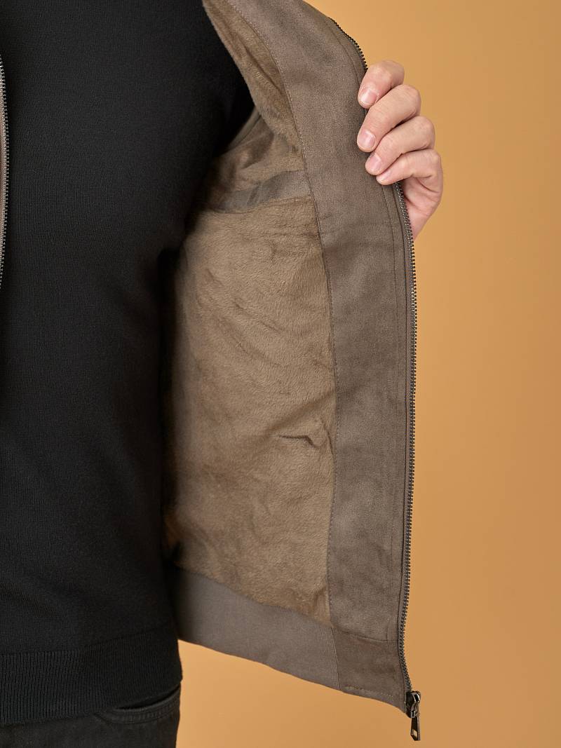 Стильная куртка-бомбер из эко-замши на молнии. Имеет множество карманов - верхний прорезной карман на молнии и нижние боковые карманы на молниях, дополнительно еще и внутренний карман. Модель из мягкой ткани из искусственной замши сдержанного дизайна по праву можно считать классикой повседневного гардероба - это изделие не потеряет своей актуальности даже спустя несколько сезонов. Куртка-бомбер с небольшим воротником-стойкой отлично подходит для создания брутальных образов в стиле casual с ботинками и синими джинсами. Подкладка изделия - трикотажный мех, согреет в ненастную погоду. Она с легкостью дополнит ваши образы для любого повода - повседневные дела, встреча с друзьями, свидание или прогулка по городу на мотоцикле. Вы по достоинству оцените универсальность этой практичной куртки. *Рекомендуемый температурный режим является приблизительным и может быть скорректирован с учетом многослойности общего комплекта одежды и особенностей теплового восприятия окружающей среды.