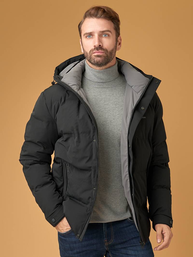 Куртка мужская утепленная из Новой Зимней Коллекции из плащевой ткани. Центральная застежка на молнию с ветрозащитной планкой. Воротник -стойка, капюшон притачной - не съемный, лицевая часть капюшона с регулируемыми фиксаторами на резинке препятствует потоку холодного воздуха. Дизайнеры BAZIONI использовали ткань с водоотталкивающей пропиткой, которая не боится дождя и снега. Материал верха куртки - мягкий на ощупь, прочный, благодаря плотному переплетению нитей. Для максимального комфорта в изделии предусмотрели боковые карманы на полочках, которые застегиваются на молнии, по низу рукавов манжеты на резинке для плотного облегания низа рукава, не пропускают холодный поток воздуха. во внутрь изделия. Подкладка изделия - принтованная с рисунком, благодаря своей фактуре- скольжению, способствует быстрому снятию или надеванию, на подкладке - карманы, обеспечивающие сохранность необходимых ежедневных мелочей.