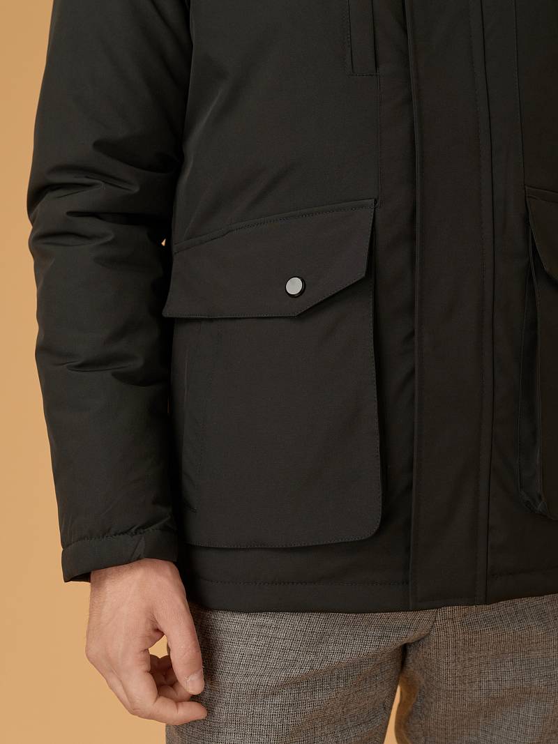 Мужской пуховик - выбор для тех, кто ценит комфорт и стиль. Утеплитель сохранит тепло зимой, высокий воротник стойка защитит вас от ветра и непогоды. Теплый пуховик от дизайнеров LACONI сочетает в себе модный дизайн и функциональность верхней одежды, он идеально подойдет для любого образа. Куртка имеет глубокий сьемный капюшон, защитит в непогоду. Ткань верха - плотная, выполнена из прочного материала для износостойкости в процессе носки, с водоотталкивающими свойствами, что защитит вас от дождя и снега в период зимы, осенью или весной. Куртка имеет практичные детали - множество карманов. Боковые накладные карманы с дополнительными боковыми входами, накладной карман на рукаве, в которые легко поместятся необходимые мелочи, внутренний карман подойдет для документов, также внутри рукавов - трикотажные манжеты облегают руку, не дают пропусканию холода вовнутрь изделия. Благодаря своей легкости, куртка комфортна в носке и не ограничивает движения. Закажите сейчас и наслаждайтесь комфортом и стилем в любое время года.