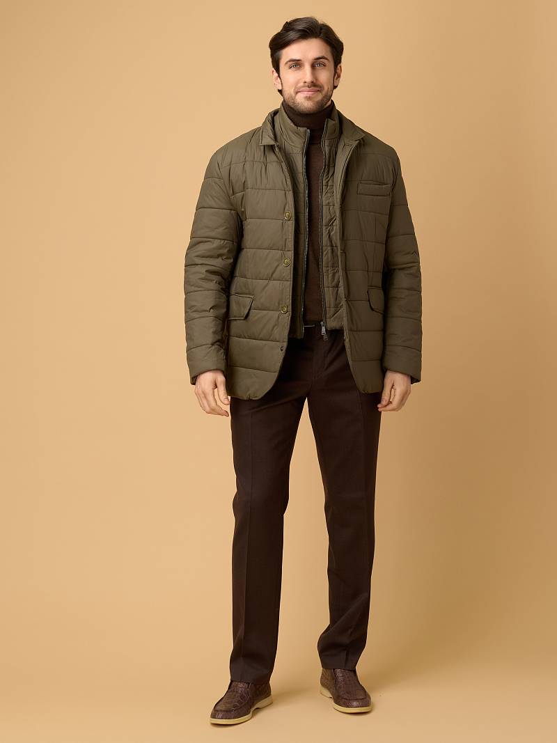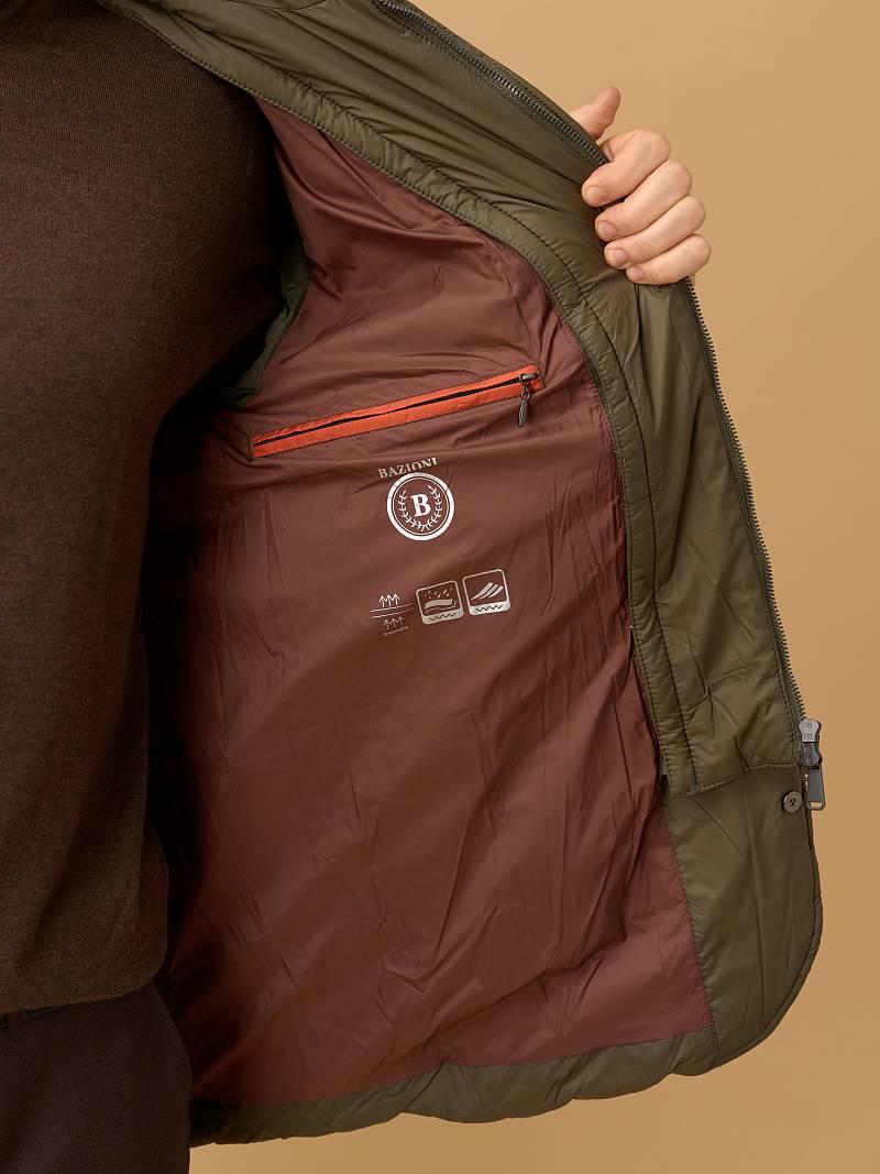 Предлагаем изысканную демисезонную модель куртки, в которой гармонично сочетаются практичность, современный дизайн и продуманная функциональность. Идеальна для прохладной погоды — сохраняет тепло и защищает от непогоды. Дизайнеры марки Bazioni выполнили куртку из мягкого матового нейлона с водоотталкивающей пропиткой, дополнили ее воротником-стойкой. Для усиления теплозащиты и вариативности образа куртка снабжена съемной манишкой на удобной молнии с двумя брендированными пуллерами. Центральная застежка на пуговицы. Два нижних боковых кармана вместительны, закрываются клапанами на магнитных кнопках, что повышает удобство использования. Верхний нагрудный карман-листочка лаконичен, без визуального перегруза. Внутри оформлена подкладкой с двумя карманами на молнии. Куртка станет комфортной спутницей аутфита с парой брюк или джинсов из ассортимента нашего магазина. Отличный выбор для городских будней, прогулок и путешествий. Дизайнеры марки BAZIONI тщательно выбирают и используют ткани и прикладные материалы только от передовых производителей.
