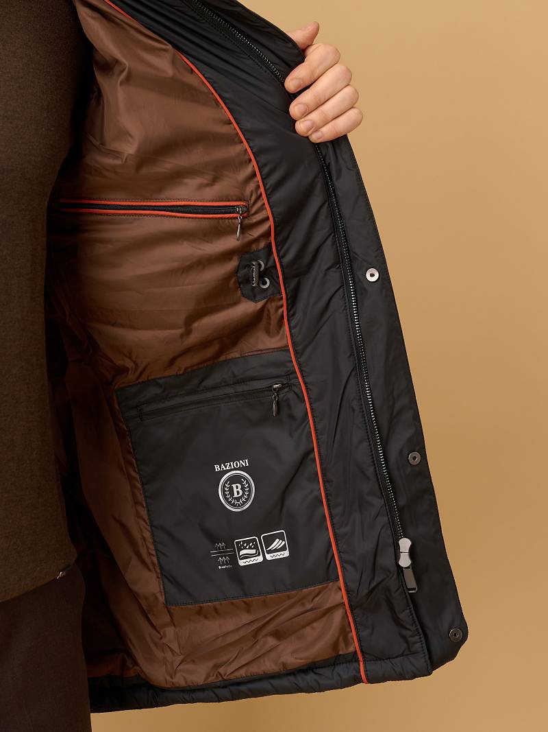 Представляем практичную и стильную куртку, сочетающую надёжную теплоизоляцию, продуманную эргономику и современный дизайн. Модель рассчитана на прохладную осень, обеспечивает защиту от ветра и умеренных холодов. Ромбовидная стежка удерживает равномерное распределение утеплителя. Воротник - стойка плотно облегает шею и защищает от ветра. Водоотталкивающая плащевая ткань и интегрированный в воротник капюшон на кулиске защитят от дождя. Куртка застегивается на центральную молнию с двумя фирменными брендированными бегунками и ветрозащитную планку на кнопках. Два крупных многофункциональных накладных кармана с боковым входом на магнитной кнопке и верхним входом с клапаном на двух кнопках. Дополнительный нагрудный вертикальный карман-листочка на молнии обеспечит надежное хранение важных мелочей. Удлиненный силуэт позволяет надевать куртку на пиджак, либо классический костюм, которые вы можете выбрать из представленного ассортимента нашего магазина. Внутри куртка оформлена подкладкой с двумя карманами на молнии и контрастным кантом, а расположенная на уровне талии регулируемая кулиска обеспечивает дополнительную защиту от ветра. Дизайнеры марки BAZIONI тщательно выбирают и используют ткани и прикладные материалы только от передовых производителей. Завершат Ваш стильный образ трикотаж и актуальные брюки из нашей осенне-зимней коллекции, широко представленной в магазине.