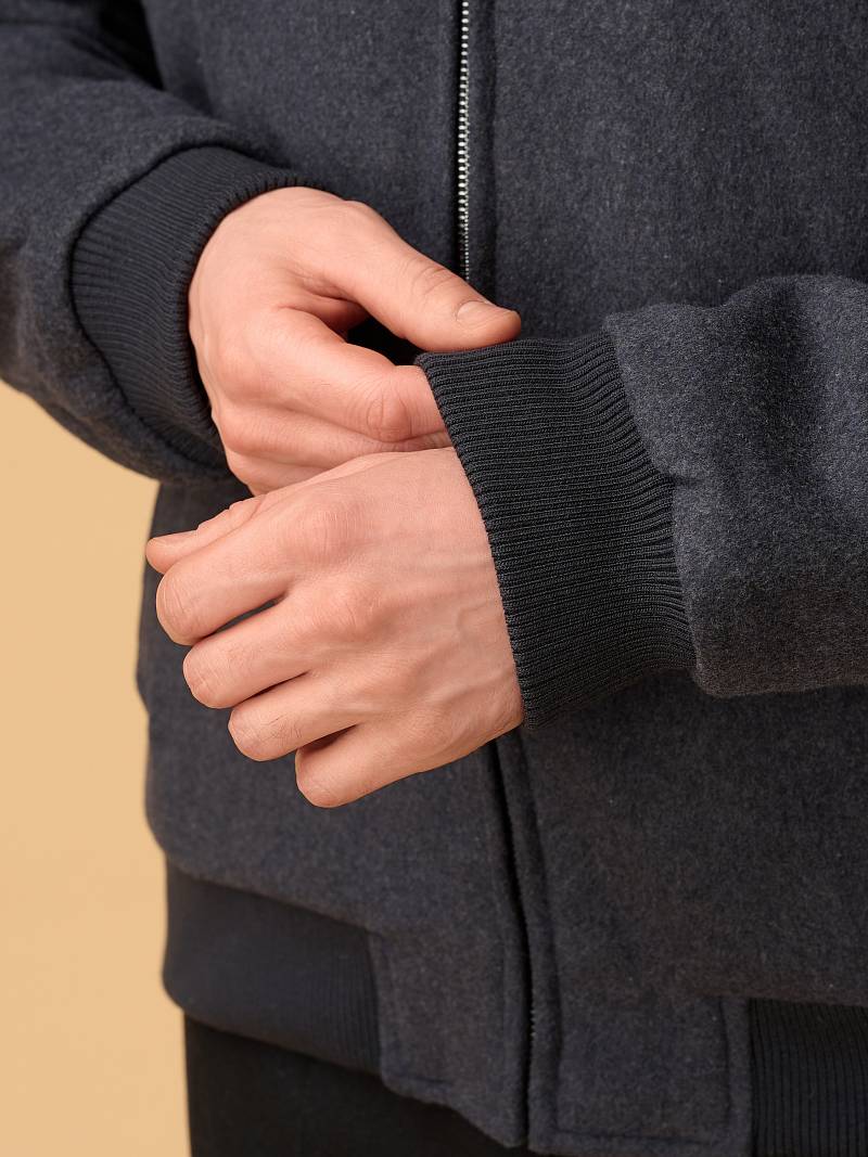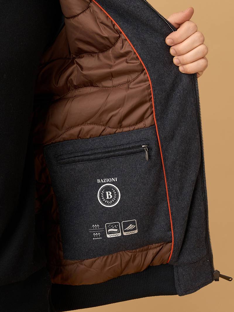 Роскошная модель современной куртки-бомбера с рукавом-реглан выполнена мастерами марки Bazioni из плотной премиальной 100% шерсти, создающей благородную фактуру и эффективно сохраняющей тепло. Изделие легкое и необыкновенно комфортное, идеально подходит для прохладной погоды в осенне-зимний сезон. Внутреннюю отделку воротника-стойки, манжеты и широкий пояс выполнили из трикотажа с фактурой в рубчик. Куртка застегивается на молнию с брендированным бегунком. Боковые вместительные карманы-листочка на магнитных кнопках. Для защиты от ветра воротник-стойка застегивается на две пуговицы. Дополнительное тепло обеспечивает стеганая подкладка, на которой расположены два внутренних кармана на молниях. Внутри куртки выполнена отделка контрастным кантом. Эта куртка идеально подходит тем, кто ищет непринуждённый стиль, но с вниманием к деталям. Она будет комфортной спутницей для пары классических или кэжуальных брюк, в комбинации с трикотажем, которые представлены в нашем магазине. Дизайнеры марки BAZIONI тщательно выбирают и используют ткани и прикладные материалы только от передовых производителей.