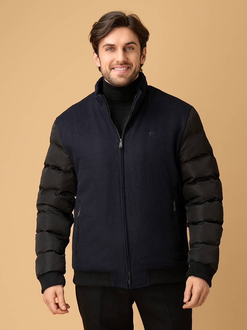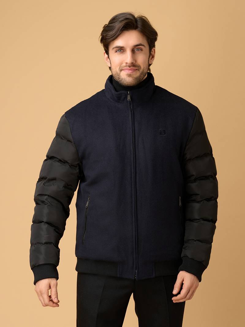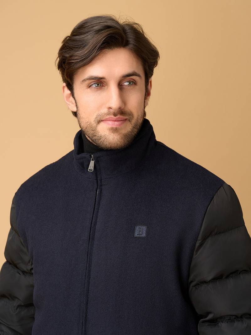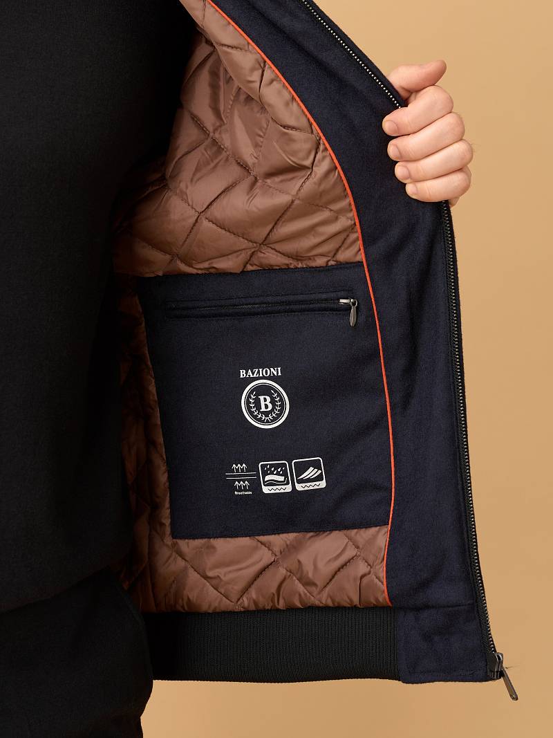 Современная комбинированная куртка-бомбер торговой марки BAZIONI изготовлена в духе стиля smart casual. Она сочетает в себе актуальный силуэт, премиальные материалы и продуманные детали для тепла и комфорта. Куртка сшита из премиальной 100% шерсти, эффективно сохраняющей тепло,создающей благородную, мягкую фактуру и отличающейся легкостью. Комбинированные утепленные рукава, выполненные из стеганой плащевой ткани, гармонируют с основным материалом, придают модели динамичный и современный вид. Центральная застежка на молнию с фирменным брендированным бегунком , Аккуратный воротник-стойка с внутренней отделкой из трикотажа защищает от ветра. Два вместительных вертикальных кармана на молниях c брендированными бегунками добавляют стильности и удобства. Для сохранения тепла и комфорта манжеты на рукавах и низ куртки собраны на широкую резинку с фактурой в рубчик. Для дополнительного тепла используется стеганая подкладка, на которой расположены два кармана на молниях. Внутри куртки выполнена отделка из контрастного канта. Дизайнеры марки BAZIONI тщательно выбирают и используют ткани и прикладные материалы только от передовых производителей.