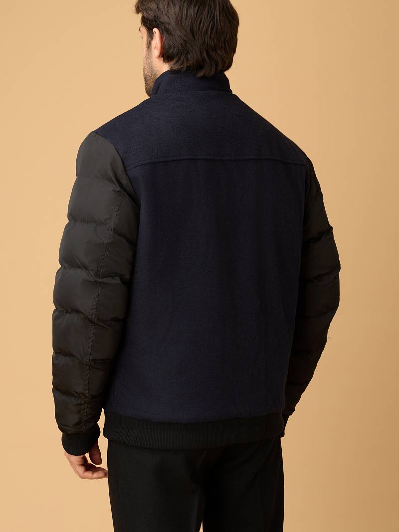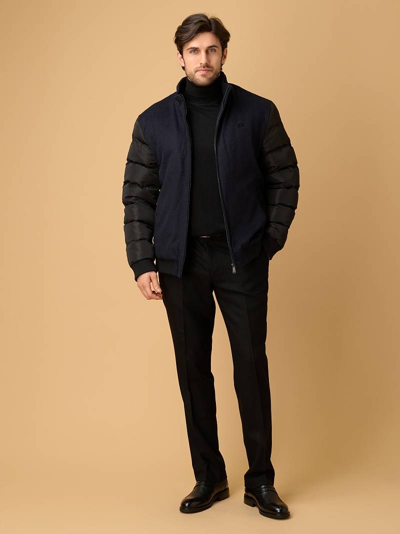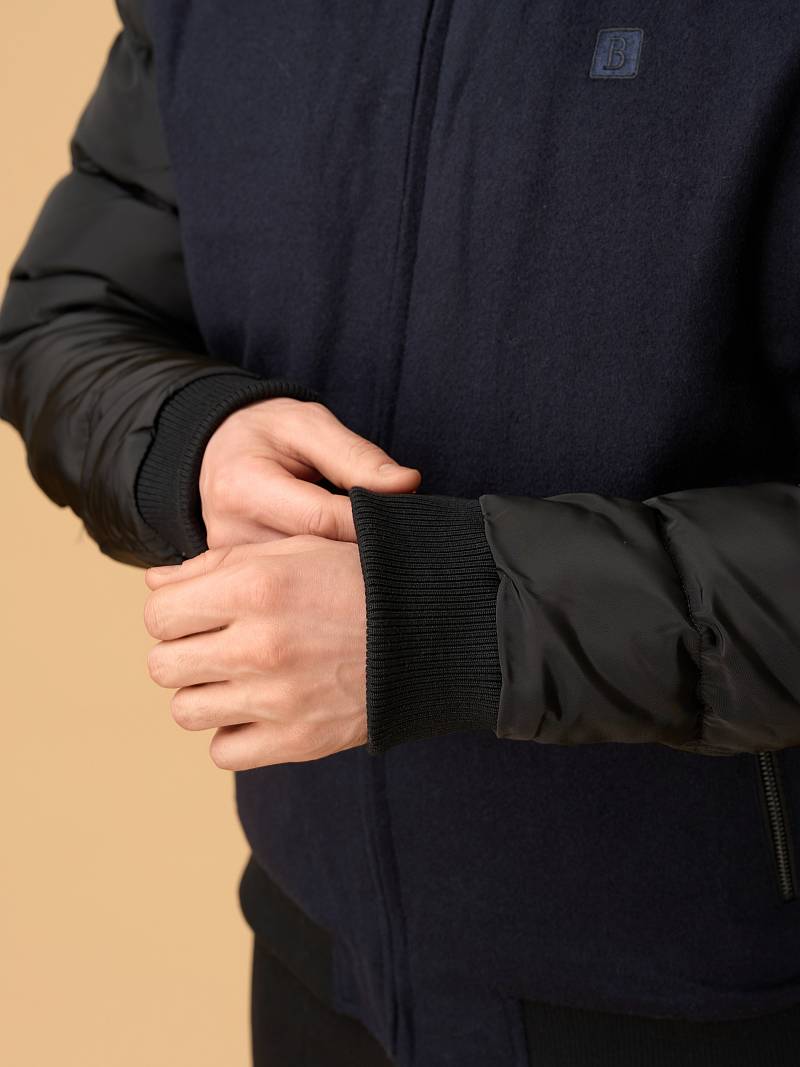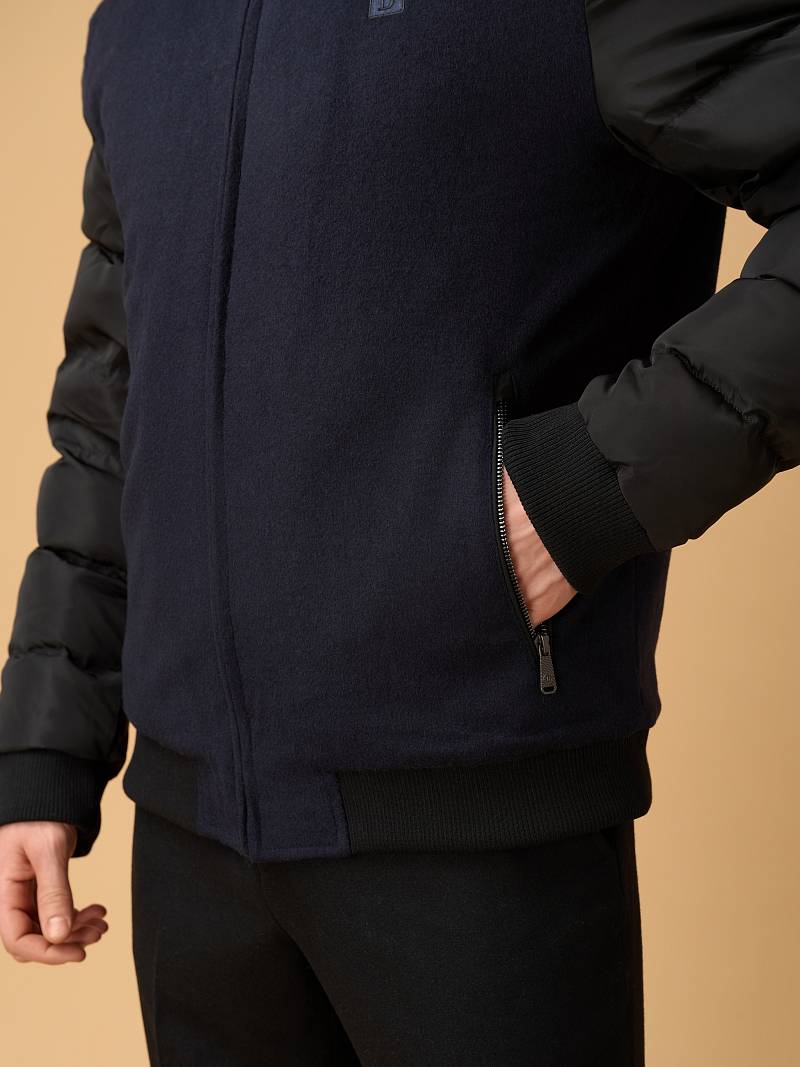 Современная комбинированная куртка-бомбер торговой марки BAZIONI изготовлена в духе стиля smart casual. Она сочетает в себе актуальный силуэт, премиальные материалы и продуманные детали для тепла и комфорта. Куртка сшита из премиальной 100% шерсти, эффективно сохраняющей тепло,создающей благородную, мягкую фактуру и отличающейся легкостью. Комбинированные утепленные рукава, выполненные из стеганой плащевой ткани, гармонируют с основным материалом, придают модели динамичный и современный вид. Центральная застежка на молнию с фирменным брендированным бегунком , Аккуратный воротник-стойка с внутренней отделкой из трикотажа защищает от ветра. Два вместительных вертикальных кармана на молниях c брендированными бегунками добавляют стильности и удобства. Для сохранения тепла и комфорта манжеты на рукавах и низ куртки собраны на широкую резинку с фактурой в рубчик. Для дополнительного тепла используется стеганая подкладка, на которой расположены два кармана на молниях. Внутри куртки выполнена отделка из контрастного канта. Дизайнеры марки BAZIONI тщательно выбирают и используют ткани и прикладные материалы только от передовых производителей.