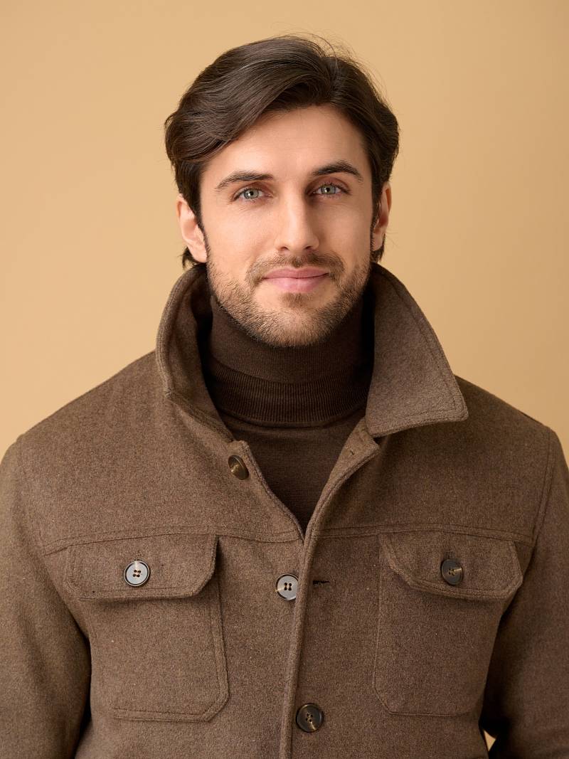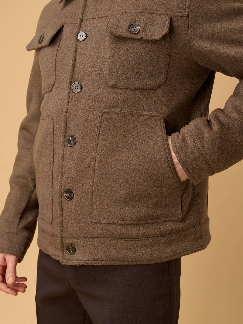 Современная короткая куртка изготовлена в духе стиля smart casual и сочетает в себе актуальный силуэт с премиальными материалами. Она сшита из плотной и мягкой 100% шерсти, создающей благородную фактуру и сохраняющей тепло и легкость. Свободный рубашечный крой рукава не сковывает движений. Куртка застегивается на пуговицы, дополнена отложным воротником, двумя нагрудными накладными карманами с клапанами на пуговице и двумя крупными, фигурными накладными боковыми карманами. Акцентные детали куртки кокетки спереди и по спинке. Для дополнительного тепла используется стеганая подкладка с двумя карманами на молнии. Внутри куртка оформлена контрастным кантом. Дизайнеры марки BAZIONI тщательно выбирают и используют ткани и прикладные материалы только от передовых производителей. Дополнить образ предлагаем трикотажем и брюками (либо джинсами) из нашей последней осенне-зимней коллекции.
