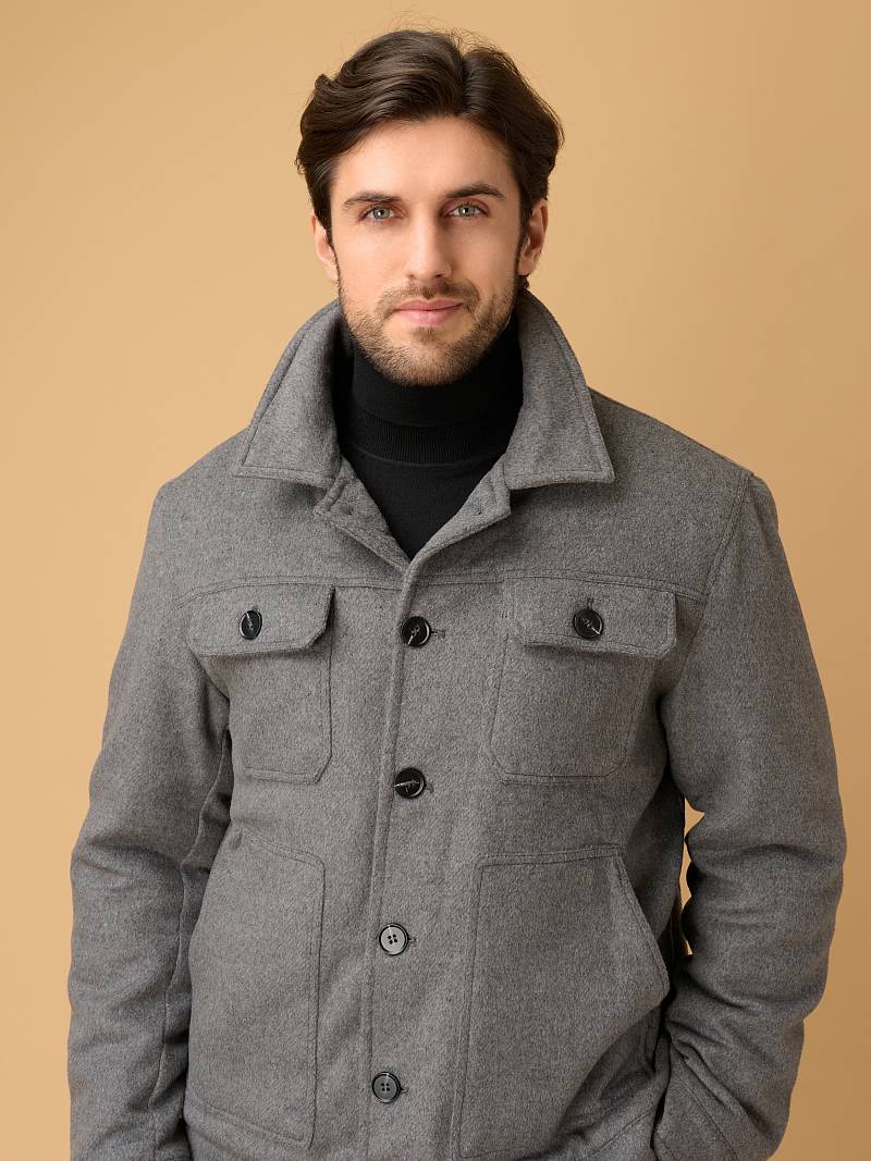 Современная короткая куртка изготовлена в духе стиля smart casual и сочетает в себе актуальный силуэт с премиальными материалами. Она сшита из плотной и мягкой 100% шерсти, создающей благородную фактуру и сохраняющей тепло и легкость. Свободный рубашечный крой рукава не сковывает движений. Куртка застегивается на пуговицы, дополнена отложным воротником, двумя нагрудными накладными карманами с клапанами на пуговице и двумя крупными, фигурными накладными боковыми карманами. Акцентные детали куртки кокетки спереди и по спинке. Для дополнительного тепла используется стеганая подкладка с двумя карманами на молнии. Внутри куртка оформлена контрастным кантом. Дизайнеры марки BAZIONI тщательно выбирают и используют ткани и прикладные материалы только от передовых производителей. Дополнить образ предлагаем трикотажем и брюками (либо джинсами) из нашей последней осенне-зимней коллекции.
