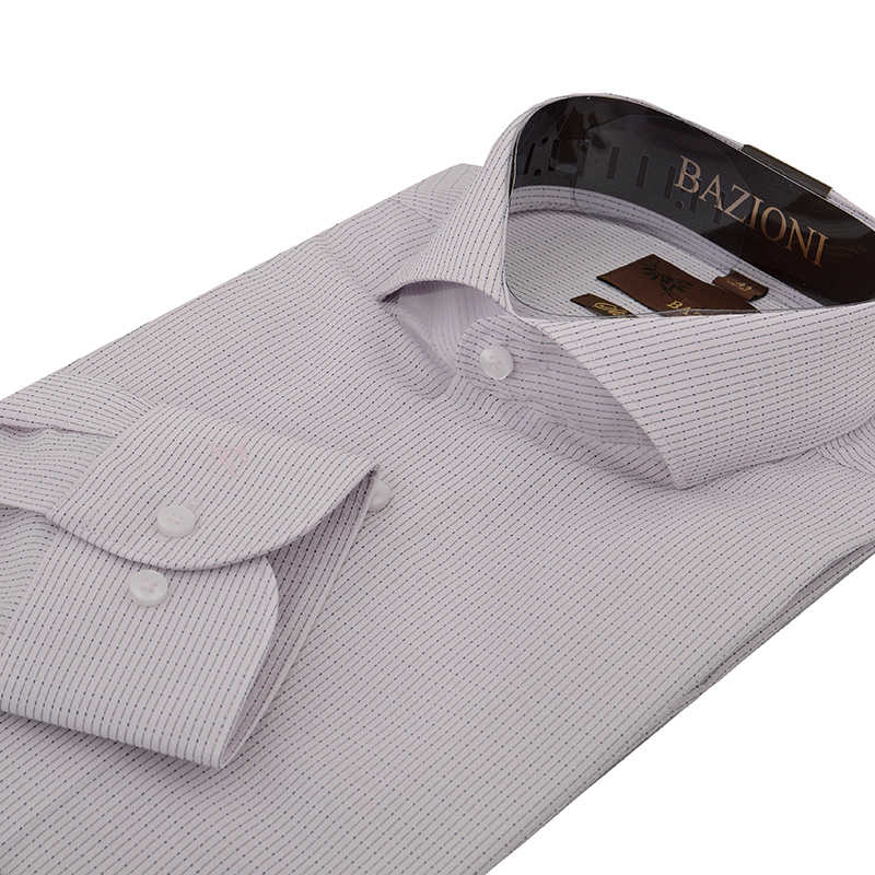 Slim fit, воротник-акула, манжет на две пуговицы.