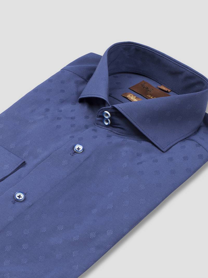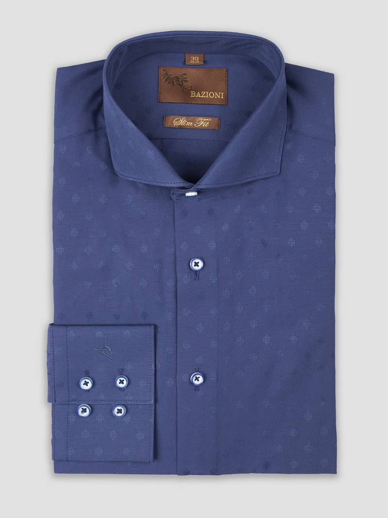 Ultra slim fit c отрезными бочками, воротник - акула с высокой стойкой на 2 пуговицы, манжет - универсальный на двух пуговицах расположенных вертикально, застежка - без отделки.