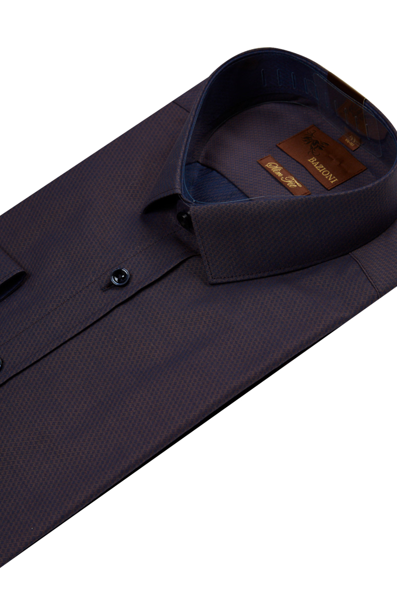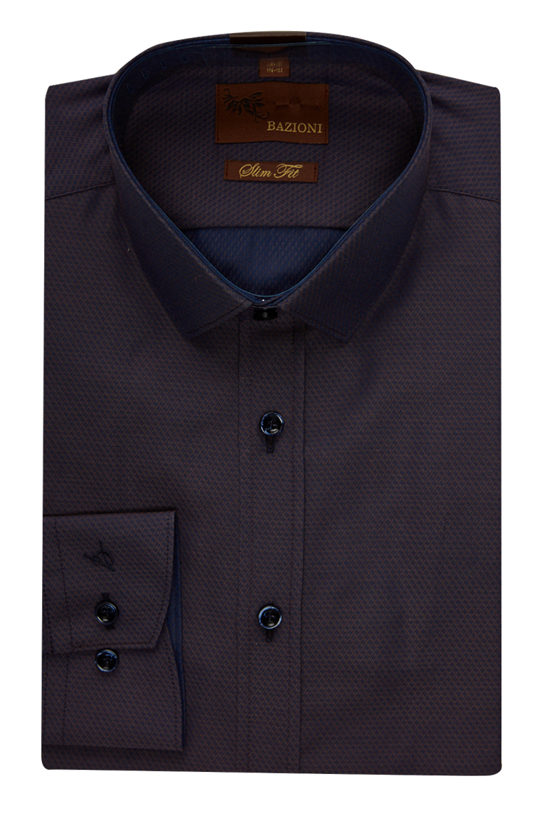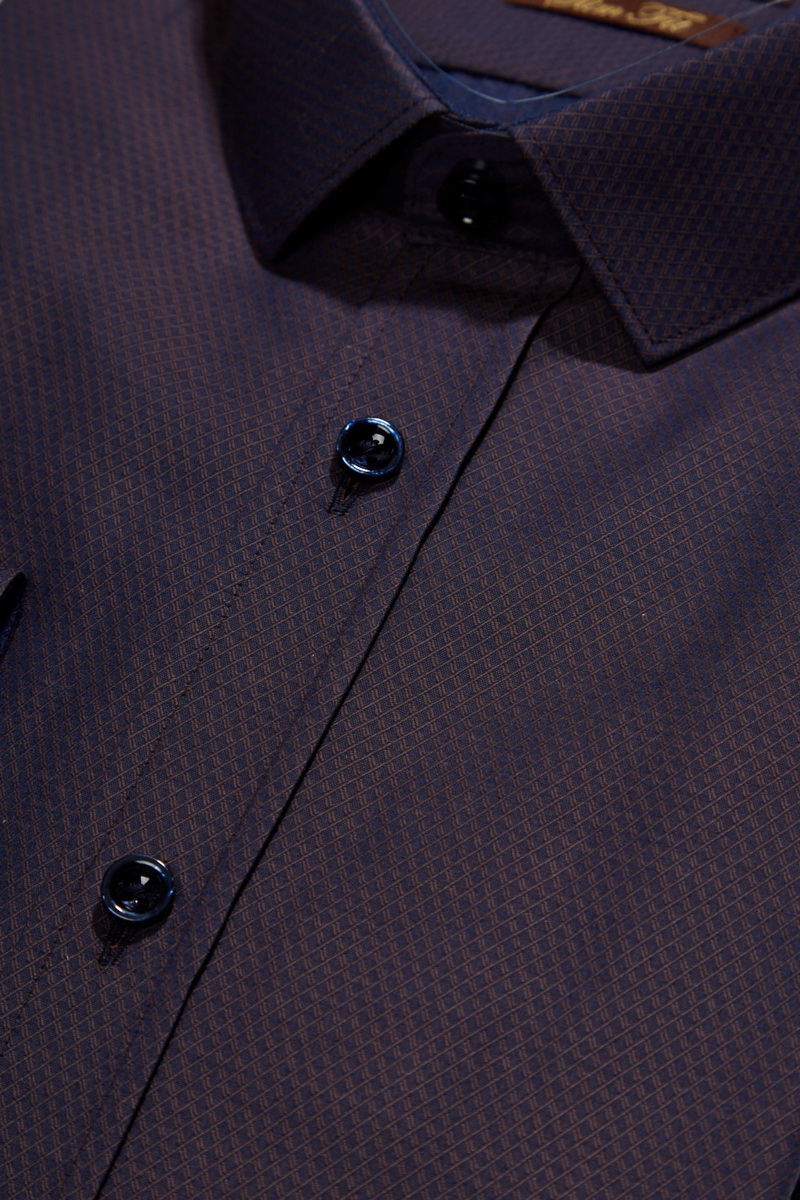 Slim fit. воротник-узкий, манжет полукруглой формы на две пуговицы, застежка - ложная планка. Отделка - внутренняя стойка и внутренний манжет.