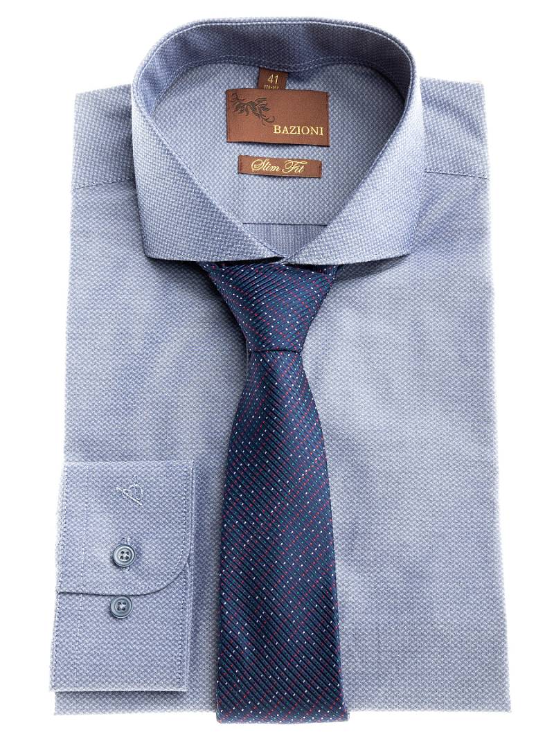 Slim fit, воротник - акула, манжет - с закругленными концами. Застежка - без отделки
