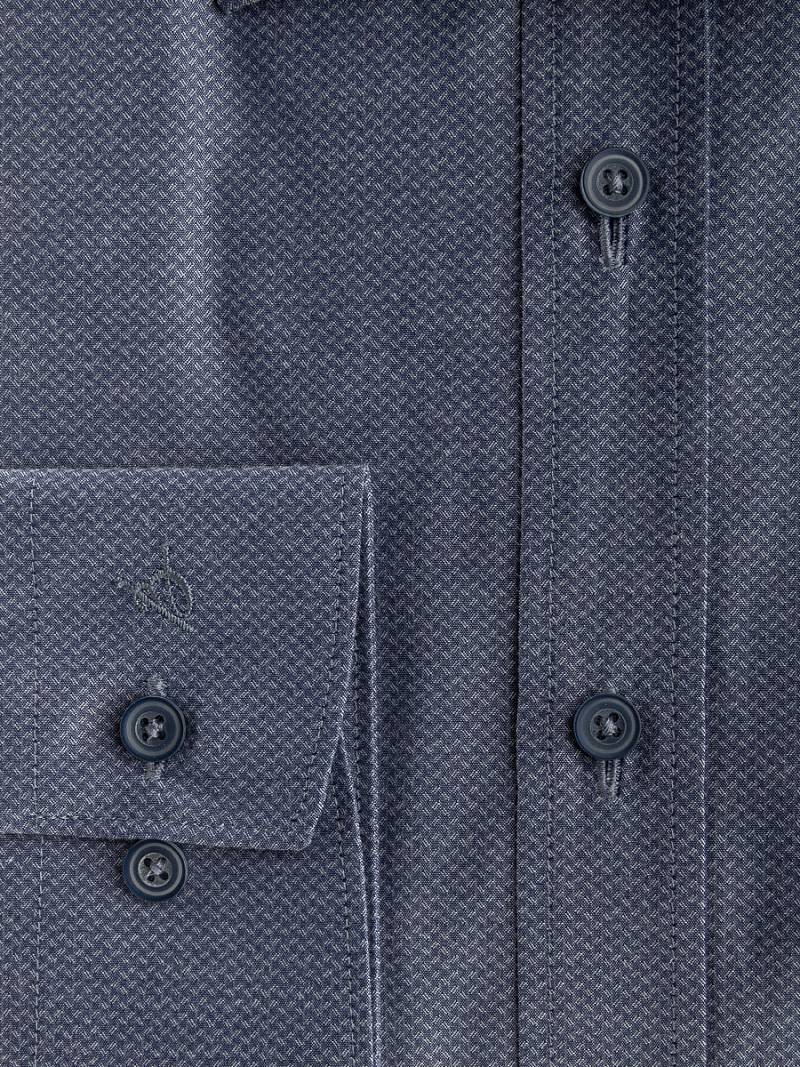 Classic fit, воротник - классический, манжет - полукруглой формы. Застежка - ложная планка