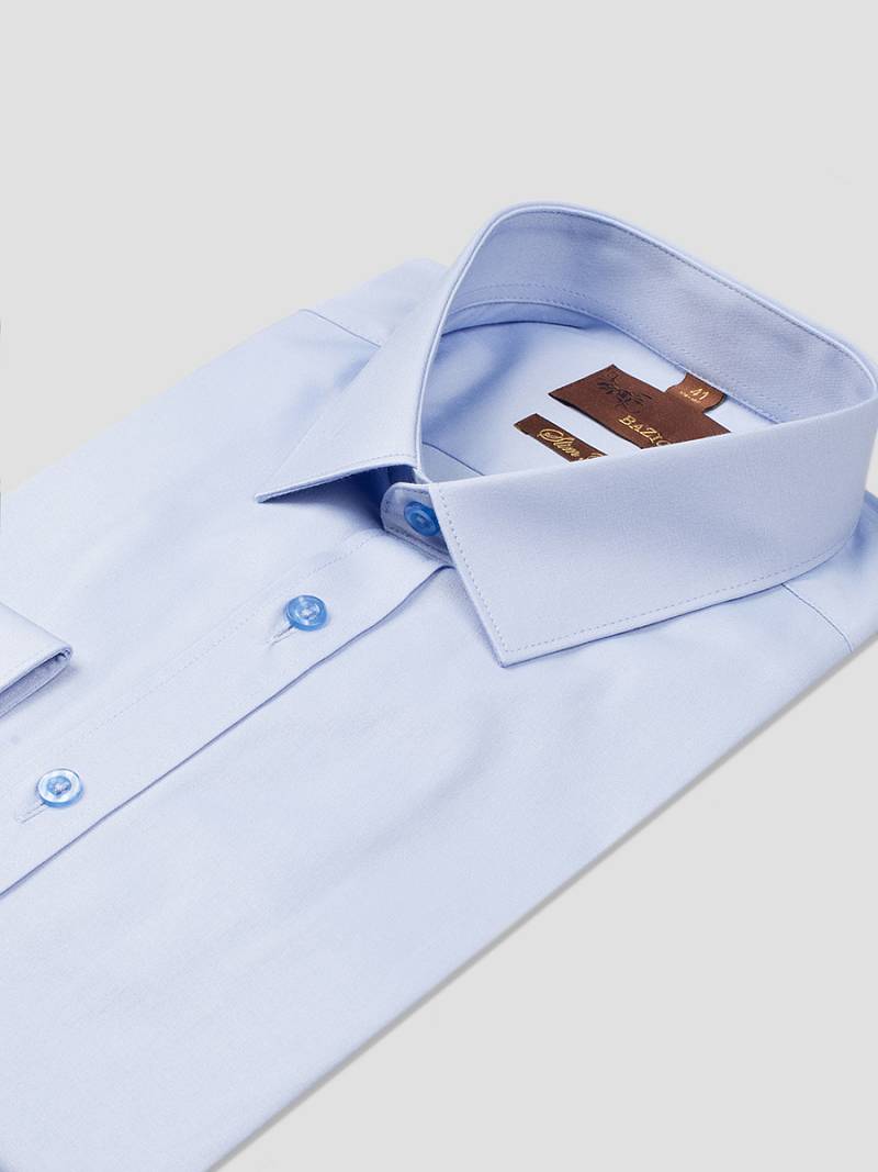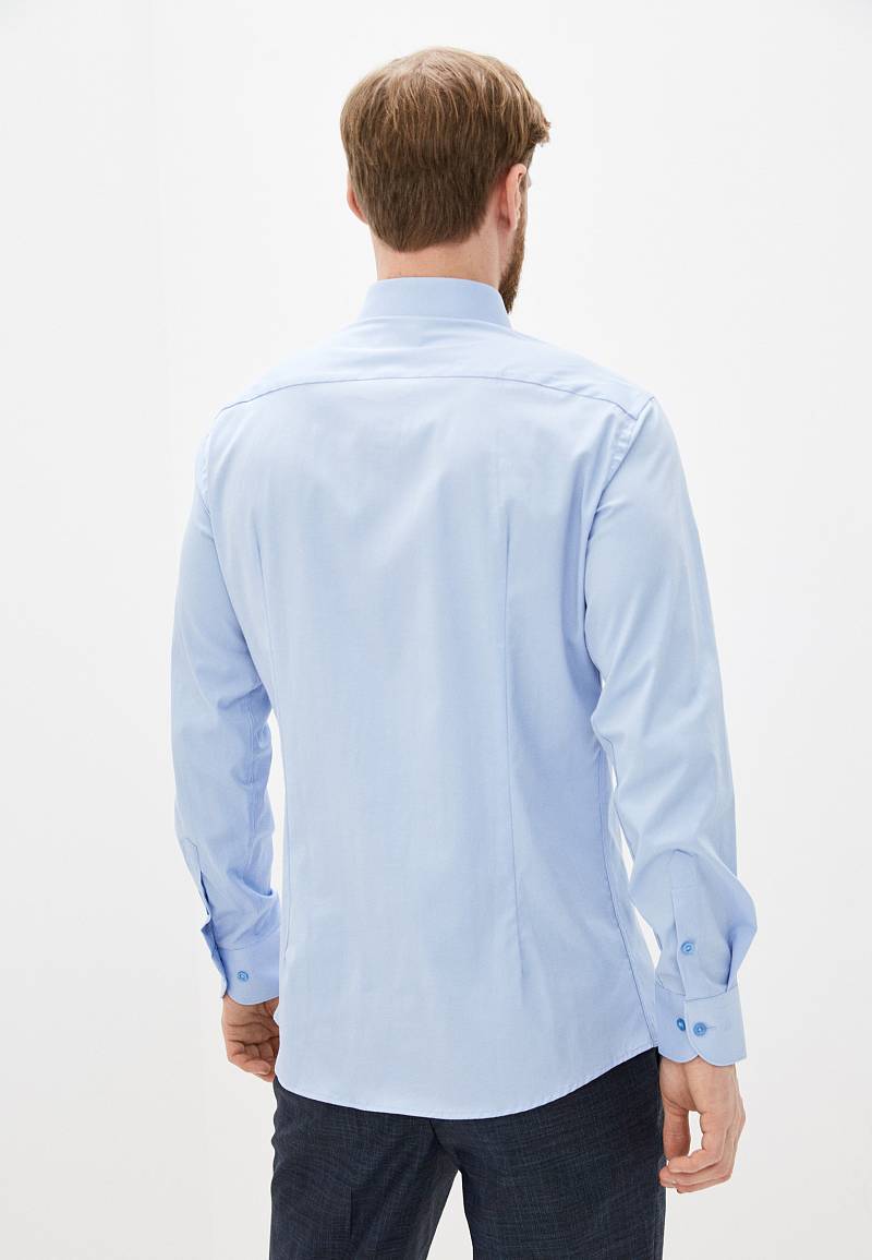 Slim fit. воротник-классический, манжет с закругленными концами на две пуговицы, застежка - ложная планка.