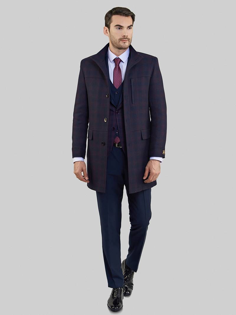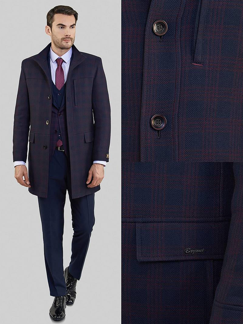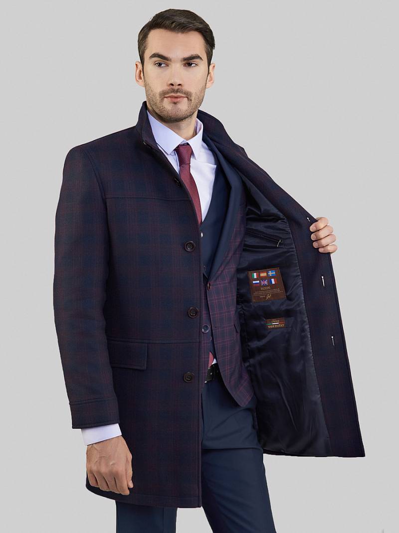 Пальто мужское демисезонное с утеплителем 60г. прилегающего силуэта, центральная застежка на 5 пуговиц. Полочка состоит из трех частей. На полочках: верхний нагрудный карман с листочкой на молнии и в нижней части полочек- прорезные карманы с листочкой и карманы с клапаном в шве. Спинка с кокеткой и со шлицей в среднем шве. По низу рукавов - притачная деталь. На клапане кармана- фирменная нашивка. В концах листочек прорезных карманов - декоративные закрепки.
