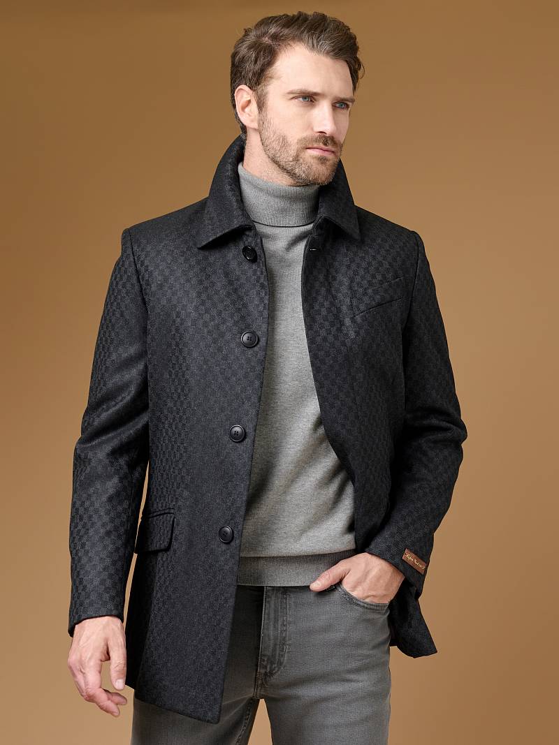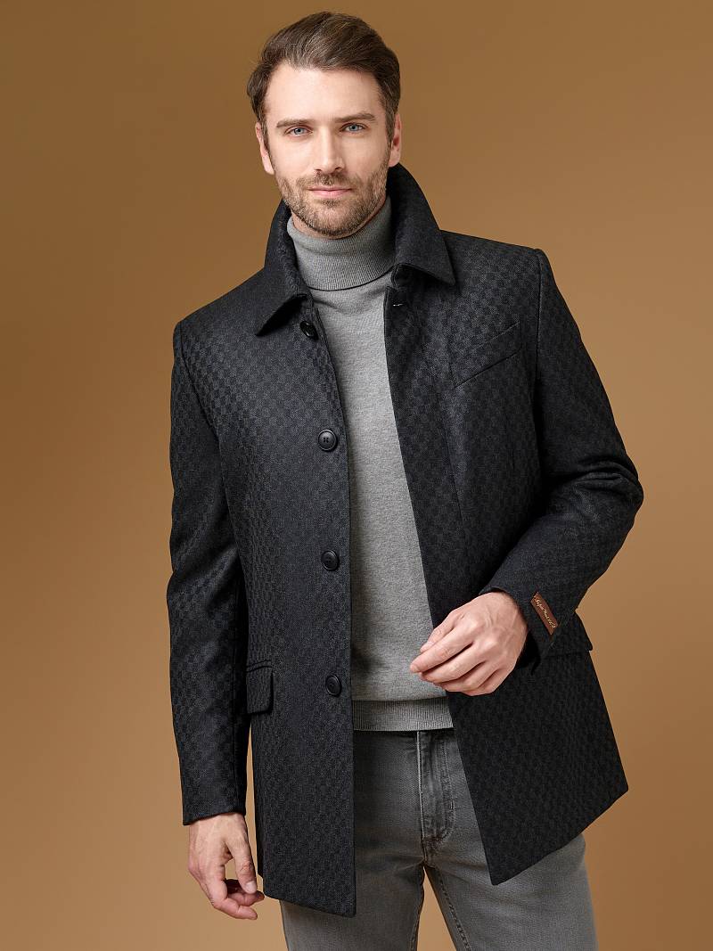 Пальто мужское классическое утеплённое, с супатной застёжкой, боковые карманы с клапанами, нагрудный с листочкой