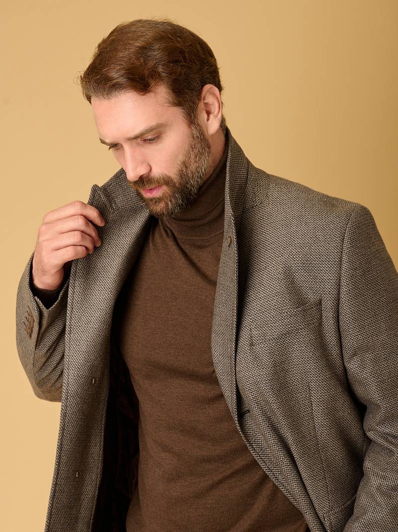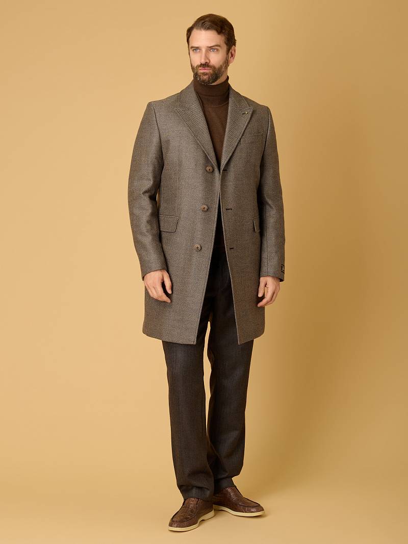 Классическое утепленное пальто (ПОЛУПРИЛЕГАЮЩИЙ СИЛУЭТ). Дизайнеры марки BAZIONI создали классическое пальто из осенне-зимней коллекции, вдохновившись главным принципам марки — стиль и качество, неподверженные времени. Благодаря выверенным лекалам и кропотливой сборке деталей силуэт вещи получился четким, а посадка комфортной. Для создания модели с острым лацканом использовали фактурную шерстяную ткань высокого качества и дополнительно утеплили, по этому пальто получилось легким и теплым одновременно. Однобортное пальто на трех пуговицах дополнено двумя боковыми карманами с клапанами. Чтобы модель не стесняла движения, сзади предусмотрели шлицу. Хоть модель и выдержана в классическом стиле она прекрасно будет сочетаться с неформальными вещами в стиле casual. Пальто обработано шелковой подкладкой с двумя внутренними карманами. Дизайнеры марки BAZIONI тщательно подходят к выбору материалов. Пуговицы подбираются и красятся индивидуально под каждую ткань, а прикладные материалы используют только от передовых производителей. Утеплитель: спинка-полочка-100г, рукава-60г. Пальто мужское, классическое, под джины, повседневный, молодежный, casual, для работы в офисе, модный, для мужа, сына, брата, на праздник.