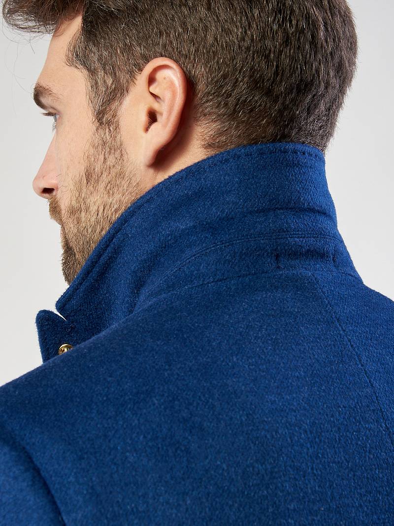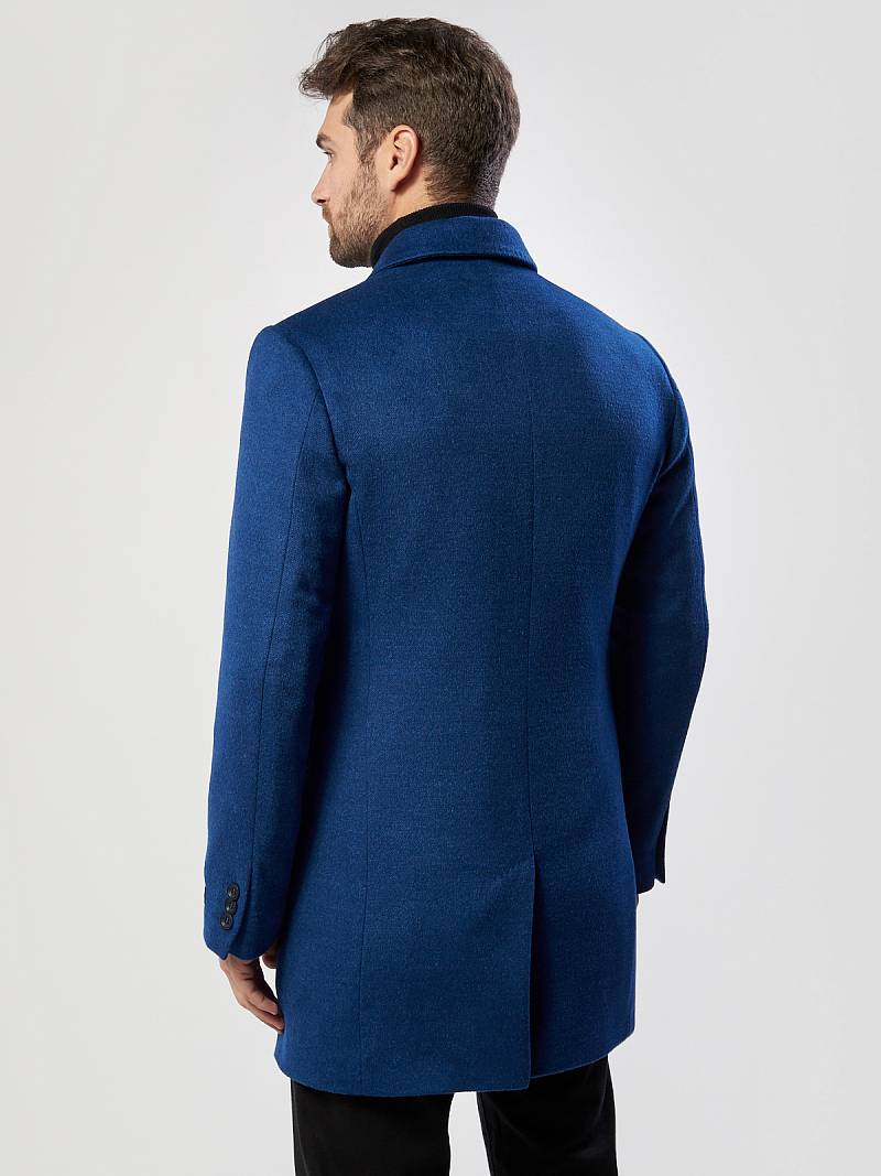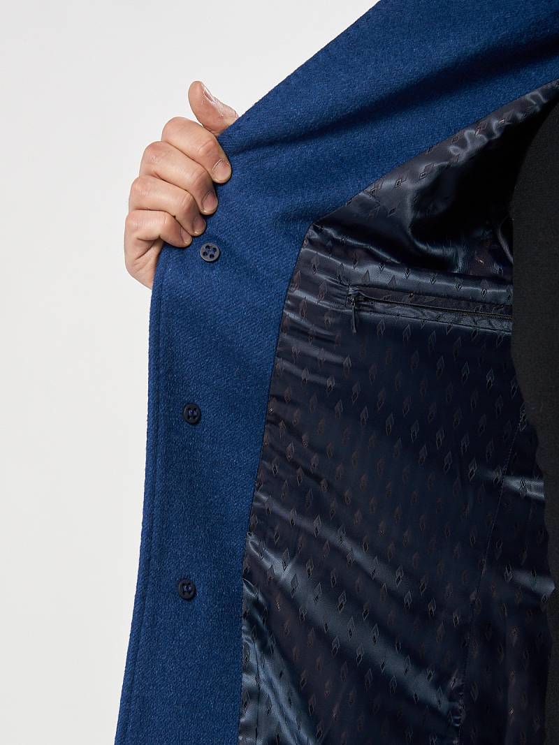 Пальто мужское утепленное с английским воротником. На полочках нижние боковые прорезные карманы с листочками. Спинка со средним швом и шлицей. Рукава втачные с локтевыми швами, по низу рукавов - пата на пуговицу. Подкладка с внутренними прорезными карманами в рамку. Длина изделия по спинке для роста 176 - 92см. Ткань верха: 100% кашемир. Подкладка: 100% вискоза. Утеплитель: Термоплюс 160гр./100гр.