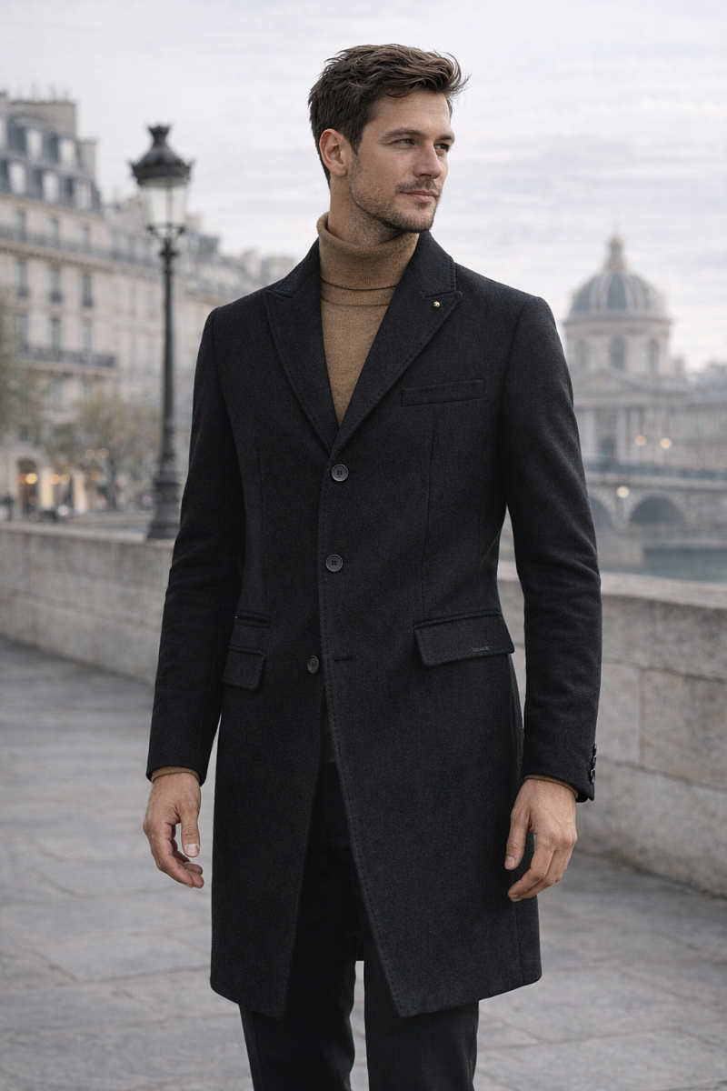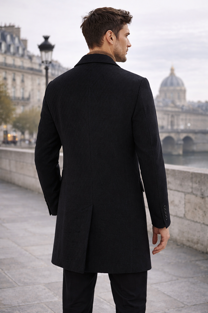 Пальто с центр.застежкой на 3 пуговицы, лацкан "ласточкин хвост", карманы с клапанами, по спинке шлица