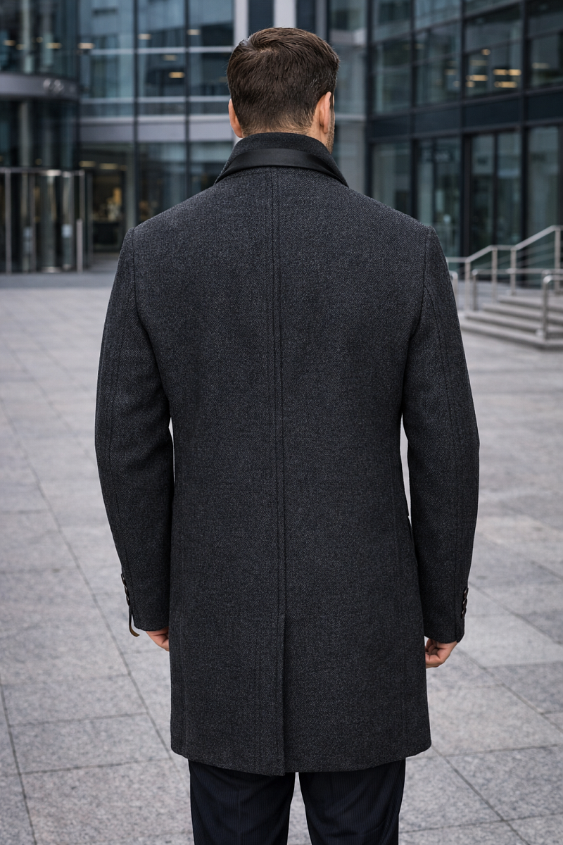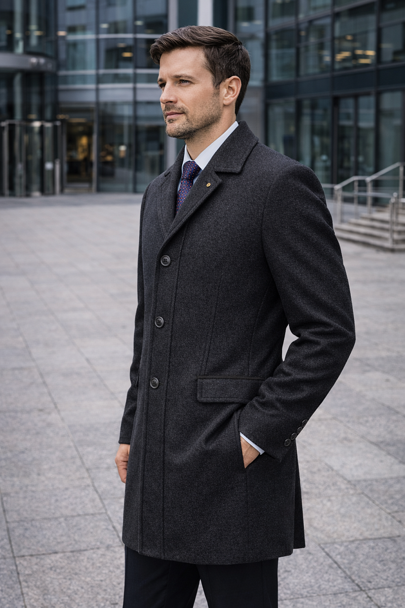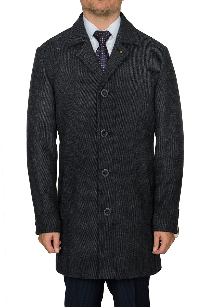 Пальто с центр.застежкой на 4 пуговицы, воротник и лацкан классические, карманы листочки, по спинке шлица