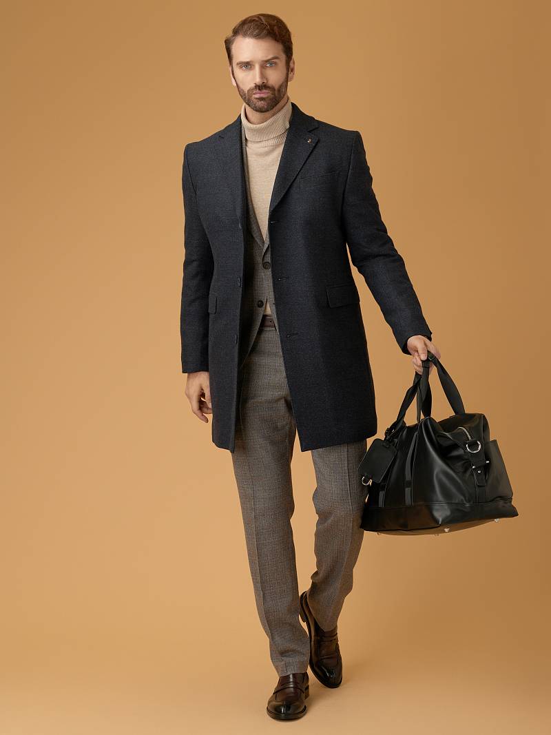 Классическое утепленное пальто (ПОЛУПРИЛЕГАЮЩИЙ СИЛУЭТ). Дизайнеры марки BAZIONI создали классическое пальто из осенне-зимней коллекции, вдохновившись главным принципам марки — стиль и качество, неподверженные времени. Благодаря выверенным лекалам и кропотливой сборке деталей силуэт вещи получился четким, а посадка комфортной. Для создания модели с широкими лацканами использовали фактурную шерстяную ткань высокого качества и дополнительно утеплили, по этому пальто получилось легким и теплым одновременно. Однобортное пальто на трех пуговицах дополнено двумя боковыми карманами с клапанами. Чтобы модель не стесняла движения, сзади предусмотрели шлицу. Хоть модель и выдержана в классическом стиле она прекрасно будет сочетаться с неформальными вещами в стиле casual. Пальто обработано шелковой подкладкой с двумя внутренними карманами. Дизайнеры марки BAZIONI тщательно подходят к выбору материалов. Пуговицы подбираются и красятся индивидуально под каждую ткань, а прикладные материалы используют только от передовых производителей. Утеплитель: спинка-полочка-100г, рукава-60г. Пальто мужское, классическое, под джины, повседневный, молодежный, casual, для работы в офисе, модный, для мужа, сына, брата, на праздник.