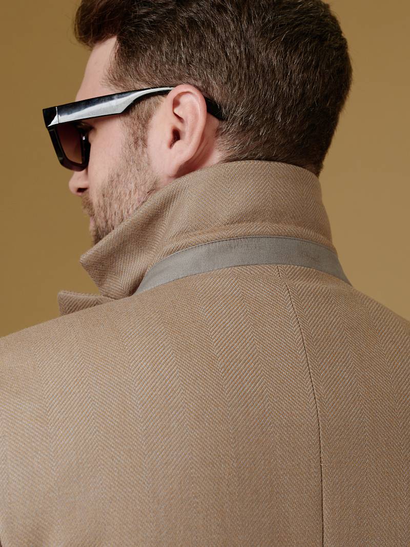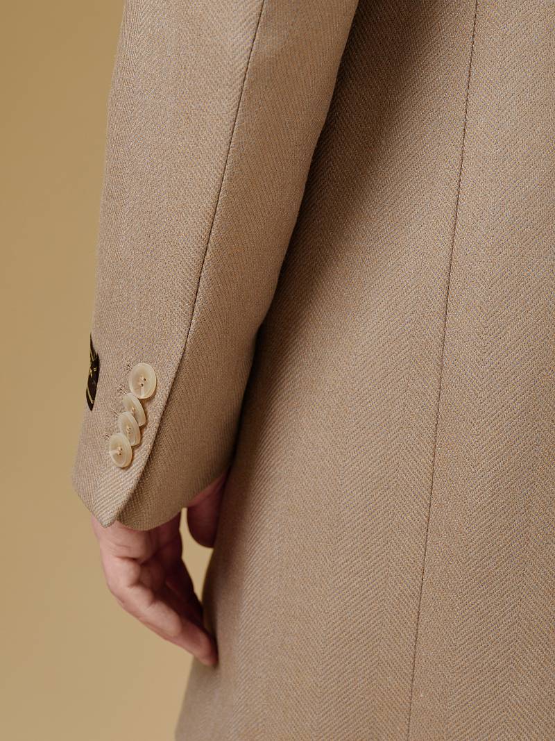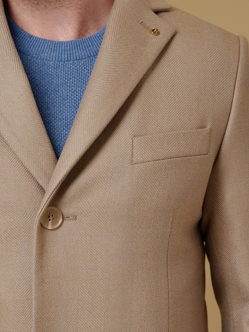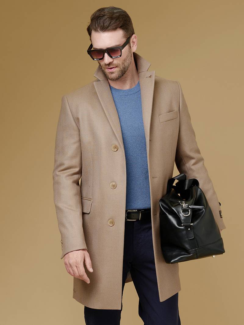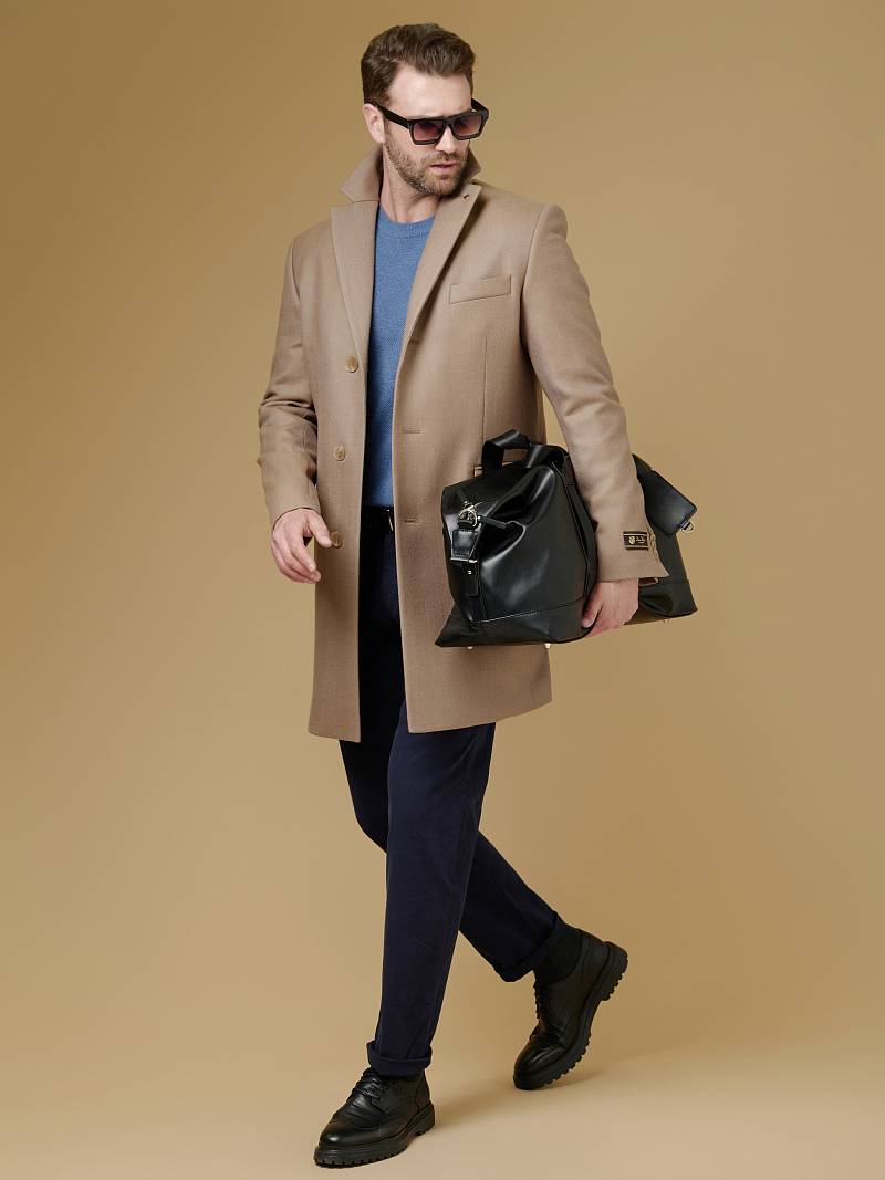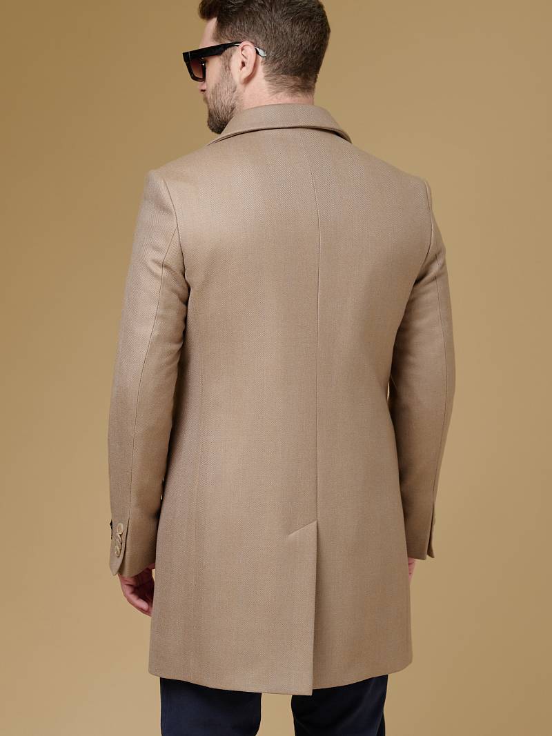 Классическое утепленное пальто (ПОЛУПРИЛЕГАЮЩИЙ СИЛУЭТ). Центральная застежка на 3 пуговицы, на полочке расположены два боковых кармана с клапанами и одной нагрудной листочкой. Рукав втачной, двухшовный, со шлицей и четырьмя декоративными пуговицами. По спинке расположена одна шлица. Пальто на подкладке с двумя внутренними карманами. Утеплитель: спинка-полочка-100г, рукава-60г.
