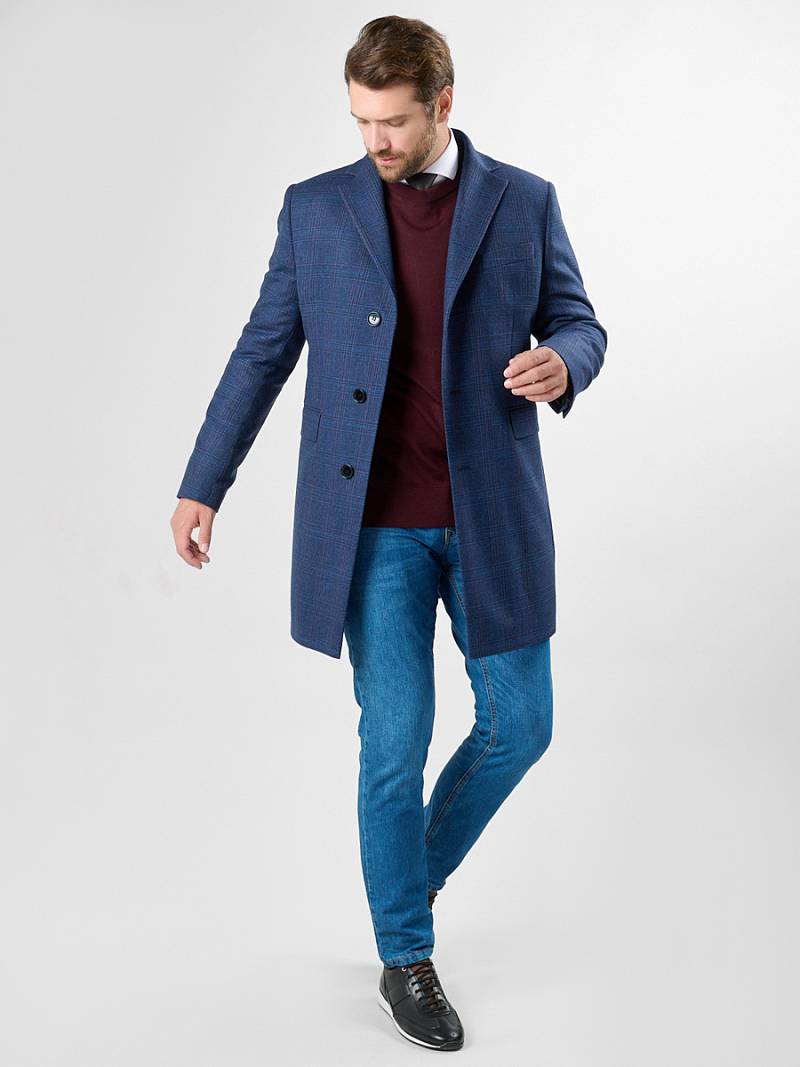 Классическое утепленное пальто (ПОЛУПРИЛЕГАЮЩИЙ СИЛУЭТ). Центральная застежка на 3 пуговицы, на полочке расположены два боковых кармана с клапанами и одной нагрудной листочкой. Рукав втачной, двухшовный, со шлицей и четырьмя декоративными пуговицами. По спинке расположена одна шлица. Пальто на подкладке с двумя внутренними карманами. Утеплитель: спинка-полочка-100г, рукава-60г.