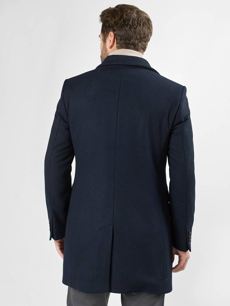 Классическое утепленное пальто Classic Fit (ПОЛУПРИЛЕГАЮЩИЙ СИЛУЭТ), на 3 пуговицы, с нагрудной листочкой и двумя боковыми карманами с клапанами. По спинке расположена одна шлица.