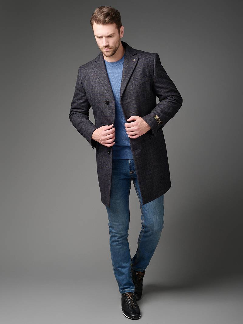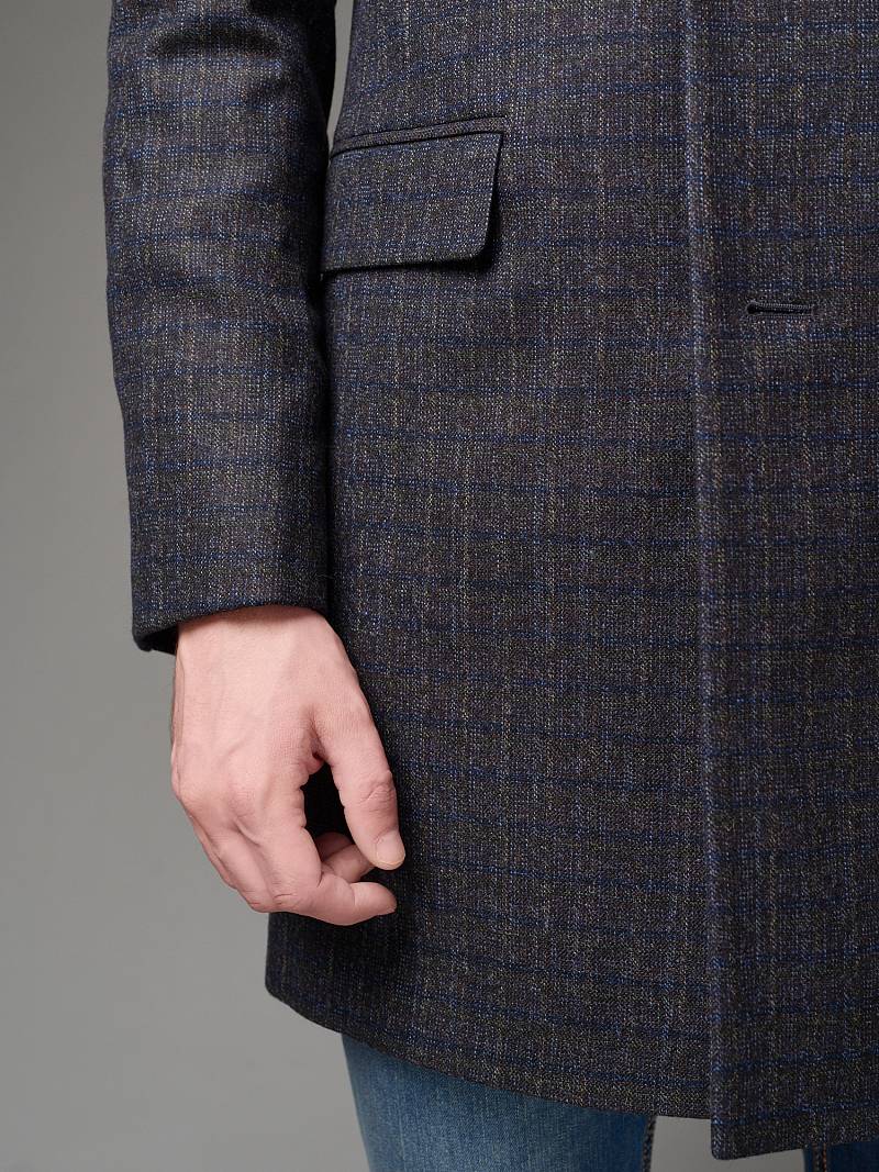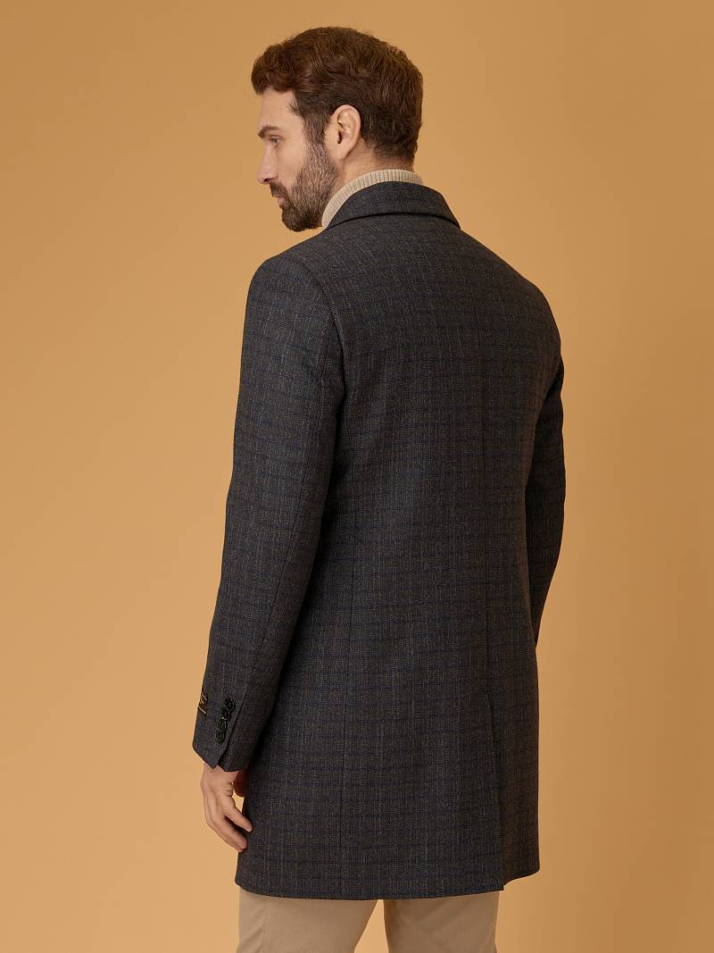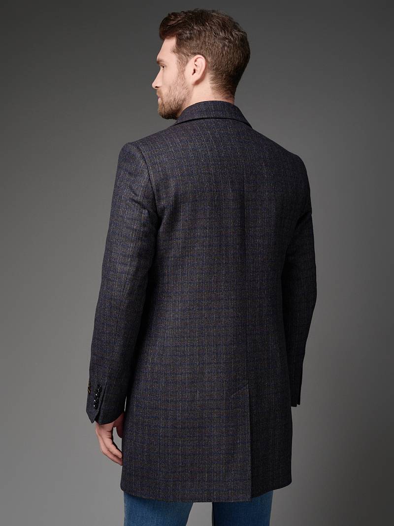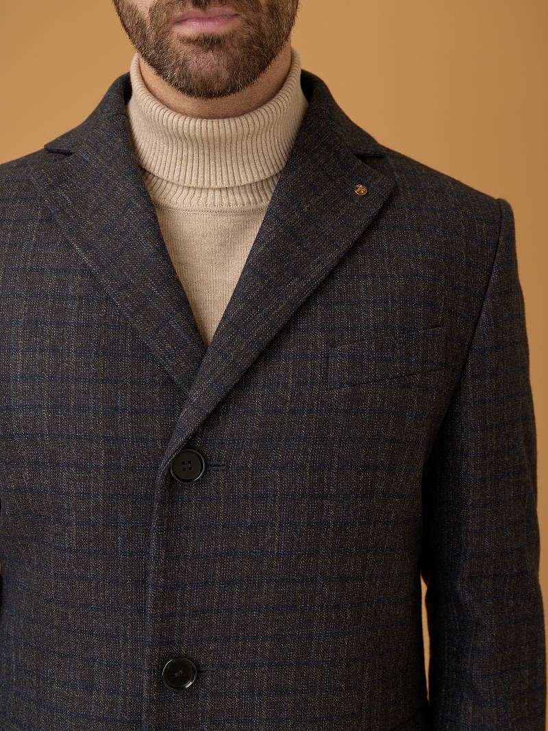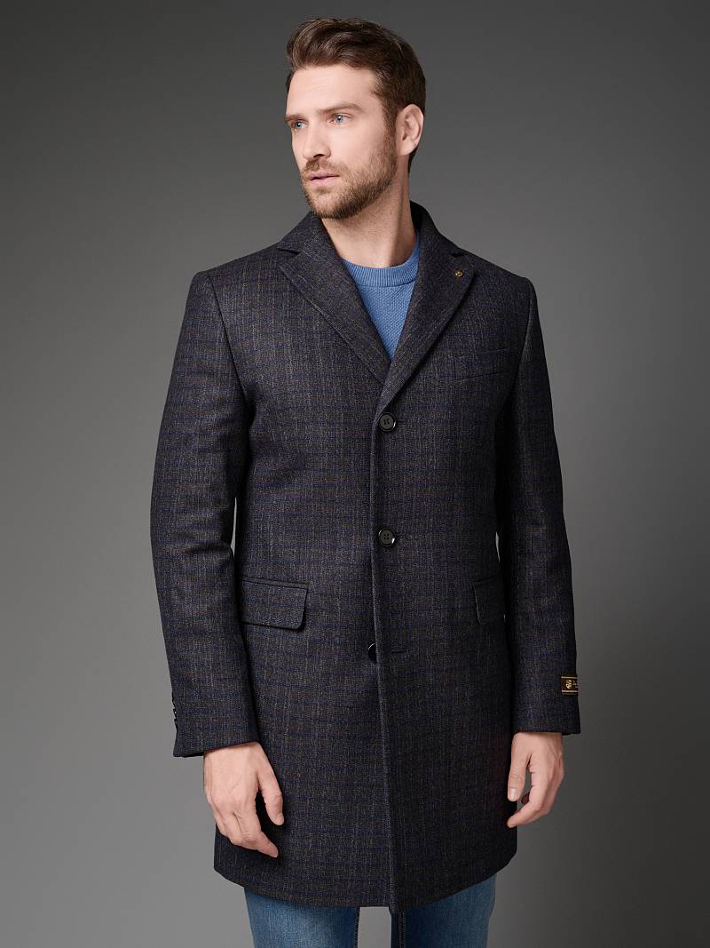 Классическое утепленное пальто (ПОЛУПРИЛЕГАЮЩИЙ СИЛУЭТ). Центральная застежка на 3 пуговицы, на полочке расположены два боковых кармана с клапанами и одной нагрудной листочкой. Рукав втачной, двухшовный, со шлицей и четырьмя декоративными пуговицами. По спинке расположена одна шлица. Пальто на подкладке с двумя внутренними карманами. Утеплитель: спинка-полочка-100г, рукава-60г.