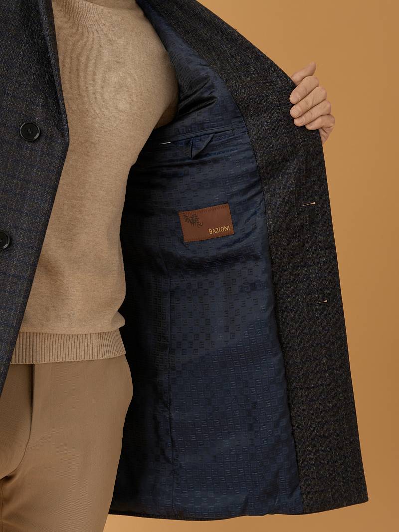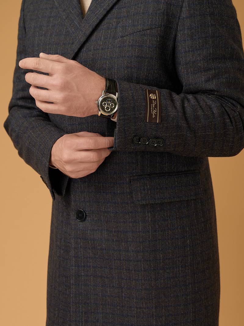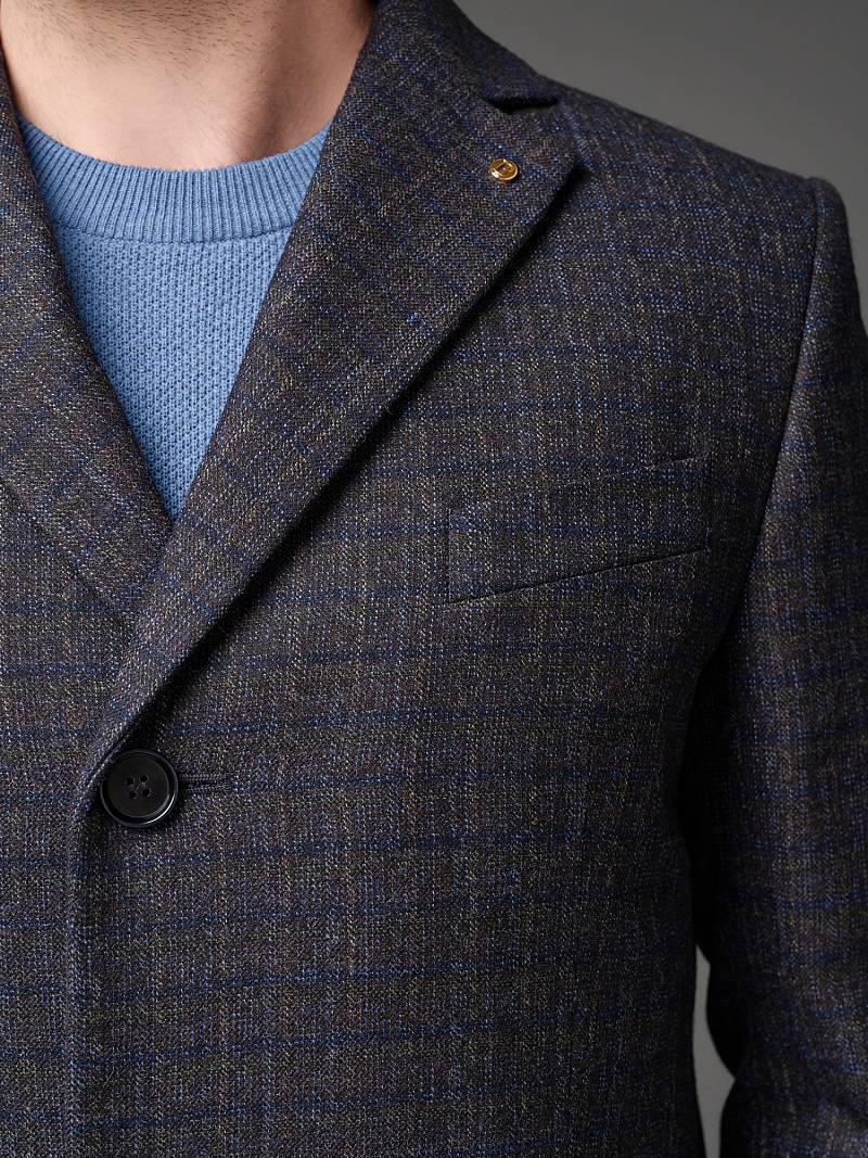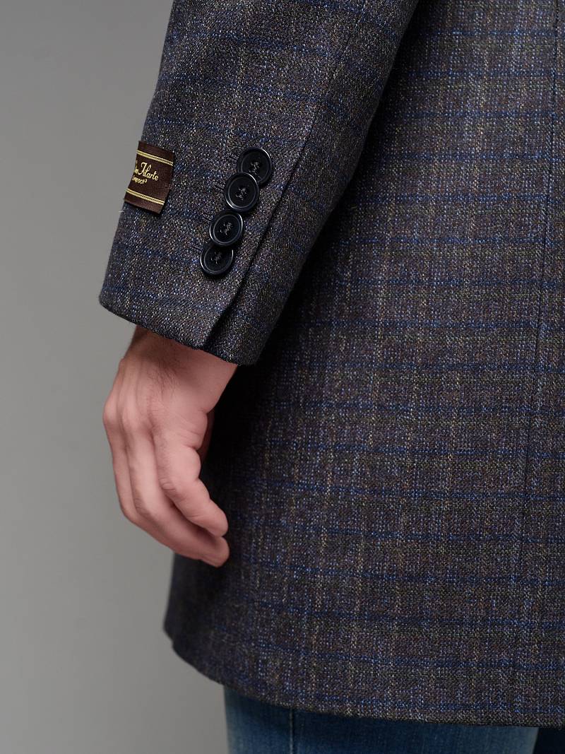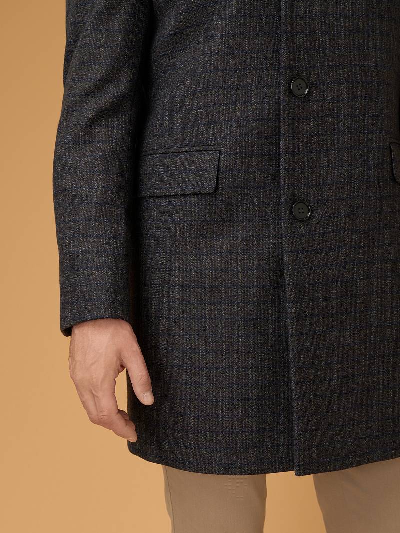 Классическое утепленное пальто (ПОЛУПРИЛЕГАЮЩИЙ СИЛУЭТ). Центральная застежка на 3 пуговицы, на полочке расположены два боковых кармана с клапанами и одной нагрудной листочкой. Рукав втачной, двухшовный, со шлицей и четырьмя декоративными пуговицами. По спинке расположена одна шлица. Пальто на подкладке с двумя внутренними карманами. Утеплитель: спинка-полочка-100г, рукава-60г.
