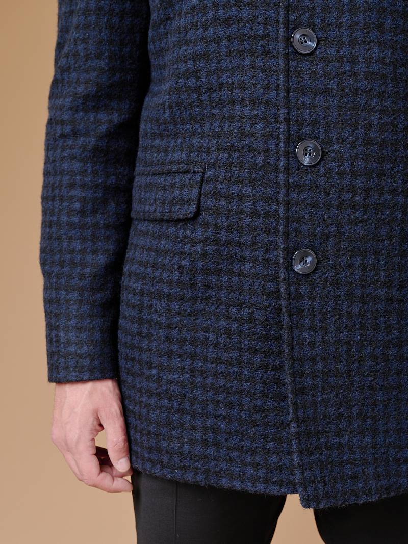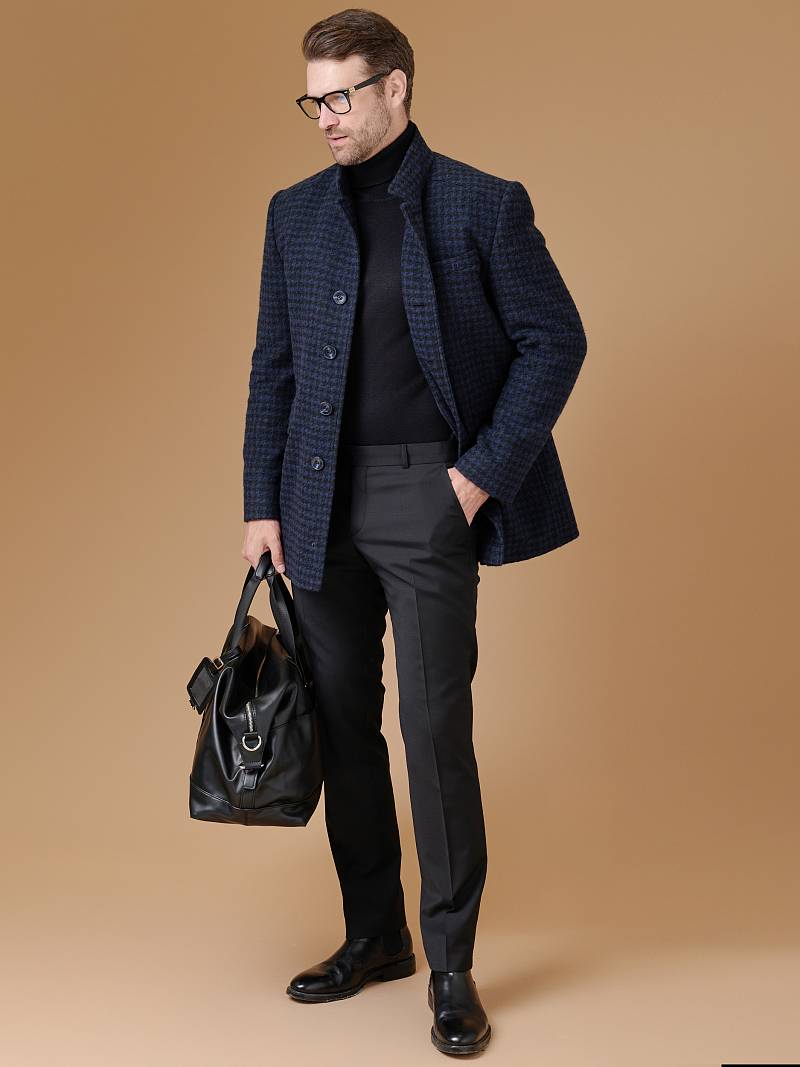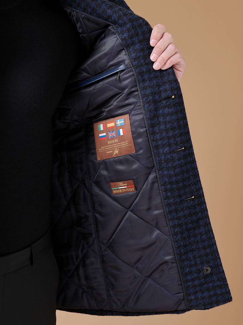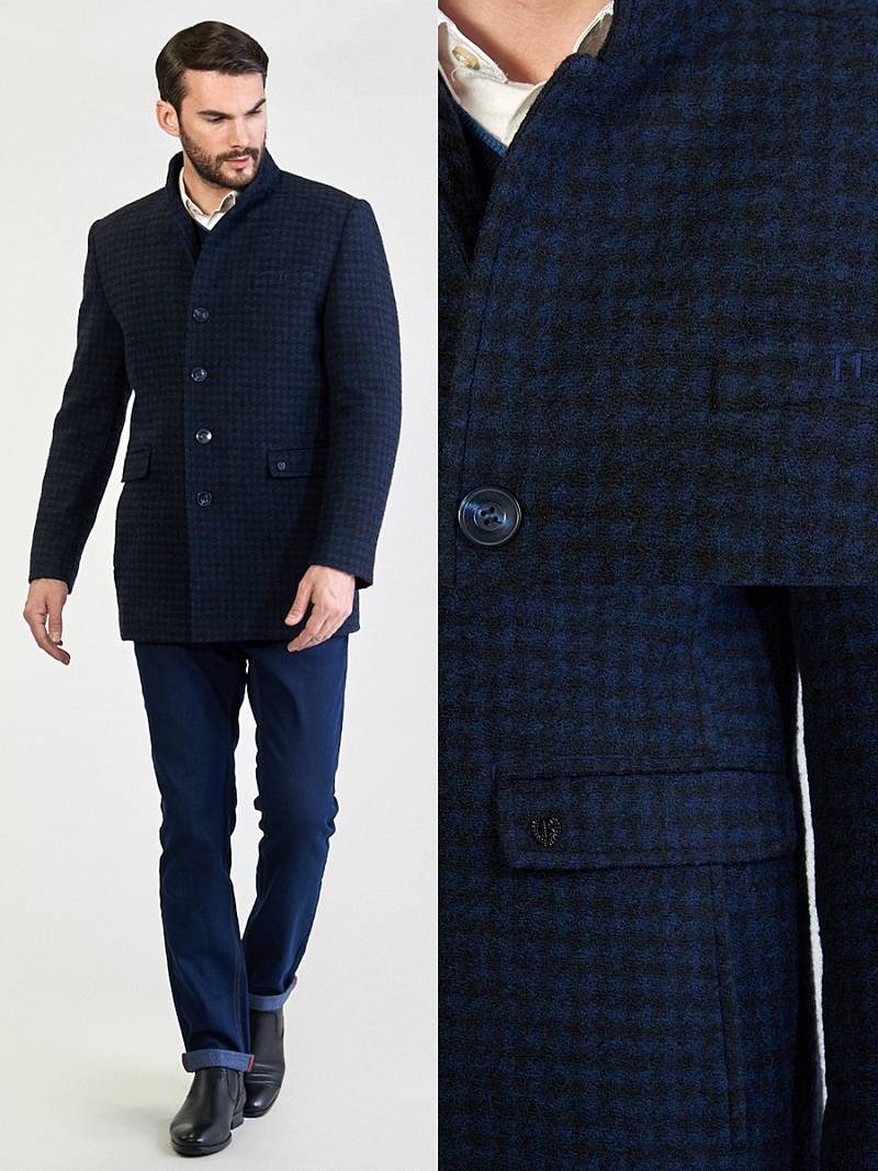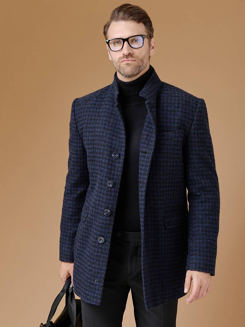 Пальто мужское утепленное, с застежкой на пуговицы, воротник-стойка. На полочках - нагрудный карман с листочкой и два нижних кармана с клапанами и два вертикальных кармана в шве. Длина изделия по спинке для роста 176 - 82см. Ткань верха: 80% шерсть,20%вискоза. Подкладка: 50% вискоза, 50% полиэстер. Утеплитель: Термоплюс 100гр