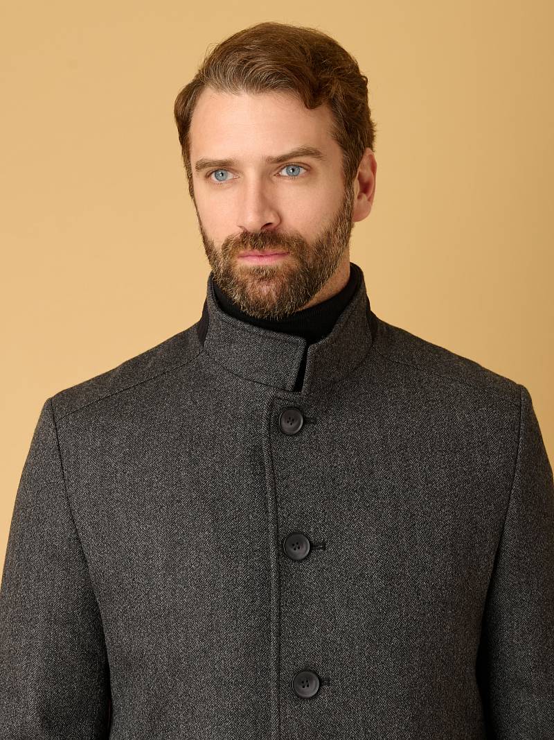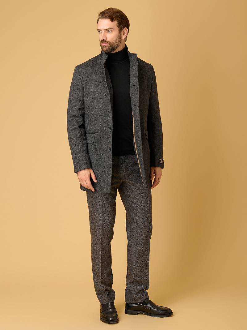 Мужское утепленное пальто (ПОЛУПРИЛЕГАЮЩИЙ СИЛУЭТ). Дизайнеры марки BAZIONI создали классическое пальто из осенне-зимней коллекции, вдохновившись главным принципам марки — стиль и качество, неподверженные времени. Благодаря выверенным лекалам и кропотливой сборке деталей силуэт вещи получился четким, а посадка комфортной. Для создания модели  использовали 100% шерстяную ткань высокого качества которую дополнительно утеплили, по этому пальто получилось легким и теплым одновременно. Однобортное пальто с воротником-стойкой дополнено  боковыми карманами с клапанами и двумя  карманами в боковых швах. По воротнику и рукавам использовали отделку из кожи. Пальто обработано шелковой подкладкой с двумя внутренними карманами. Дизайнеры марки BAZIONI тщательно подходят к выбору материалов. Пуговицы подбираются и красятся индивидуально под каждую ткань, а прикладные материалы используют только от передовых производителей. Утеплитель: спинка-полочка-100г, рукава-60г.       Пальто мужское, классическое, под джины, повседневный, молодежный, casual, для работы в офисе, модный, для мужа, сына, брата, на праздник.