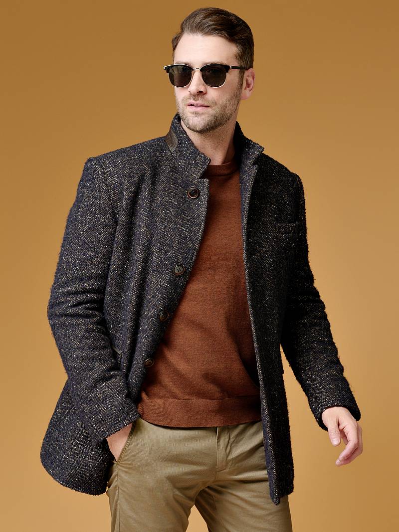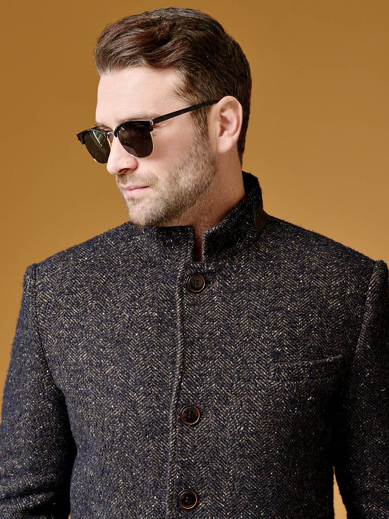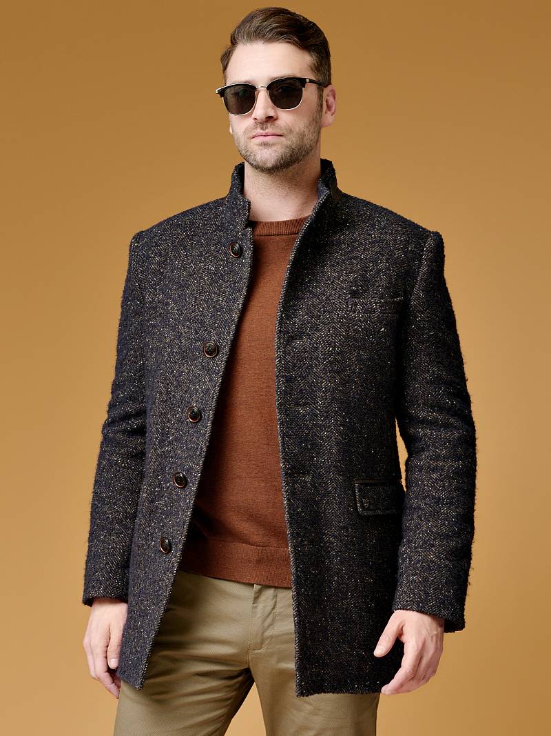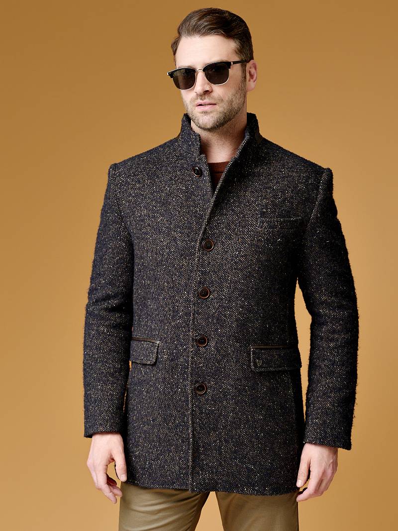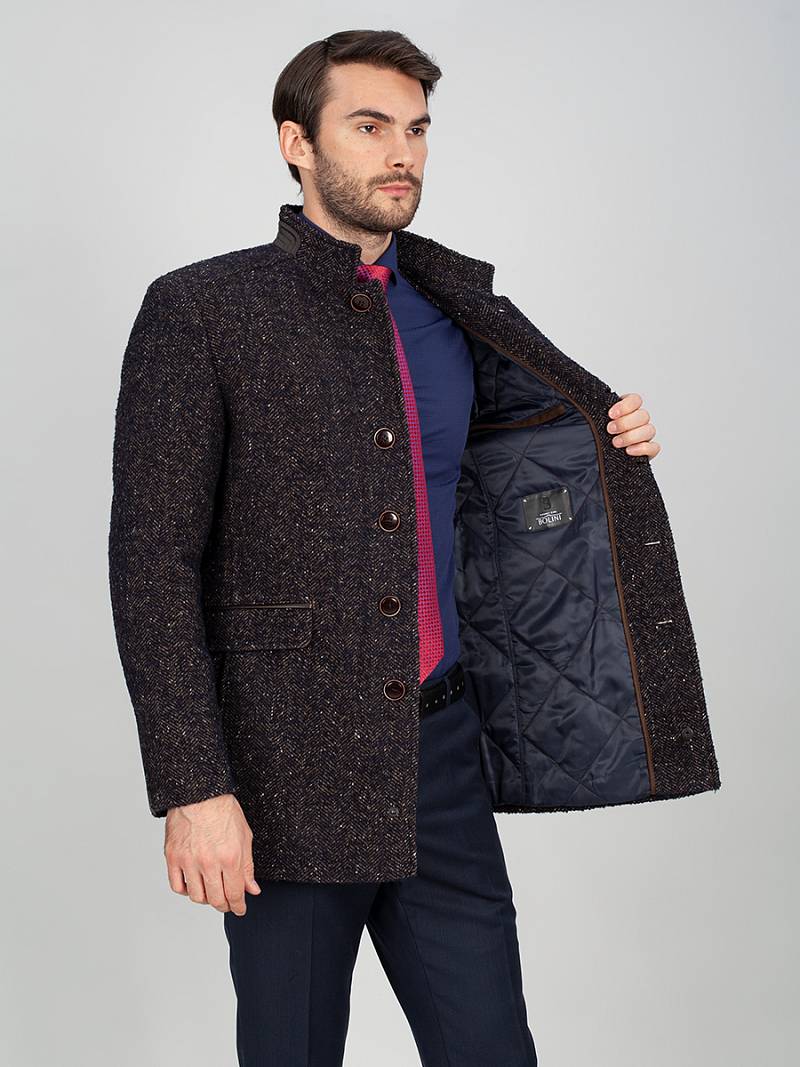 2063У M BARGELLO NAVY BROWN/ Пальто мужское