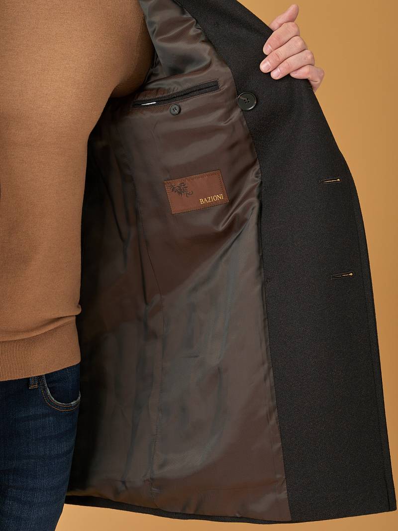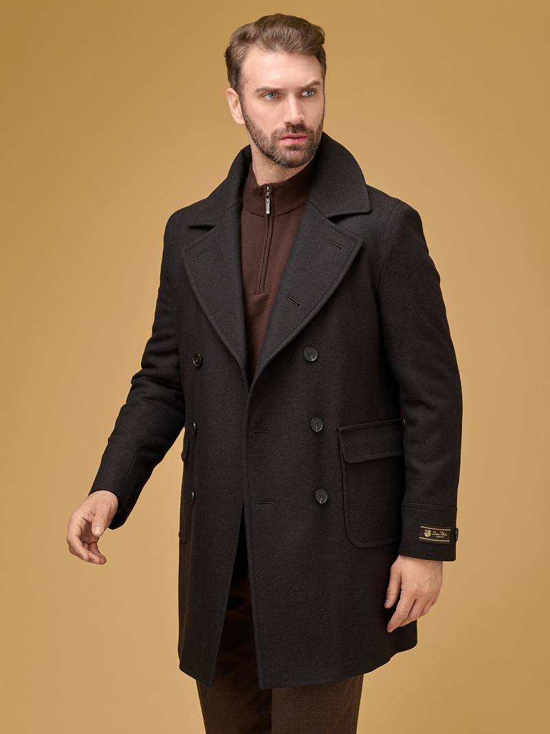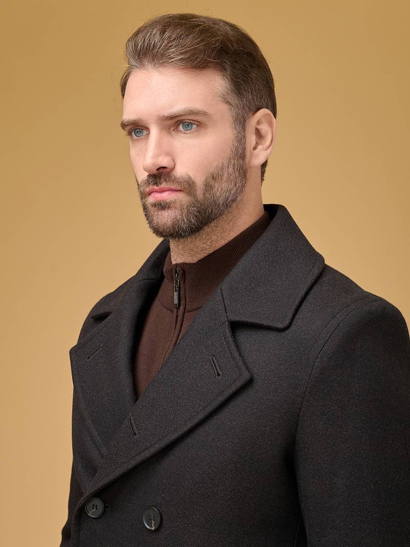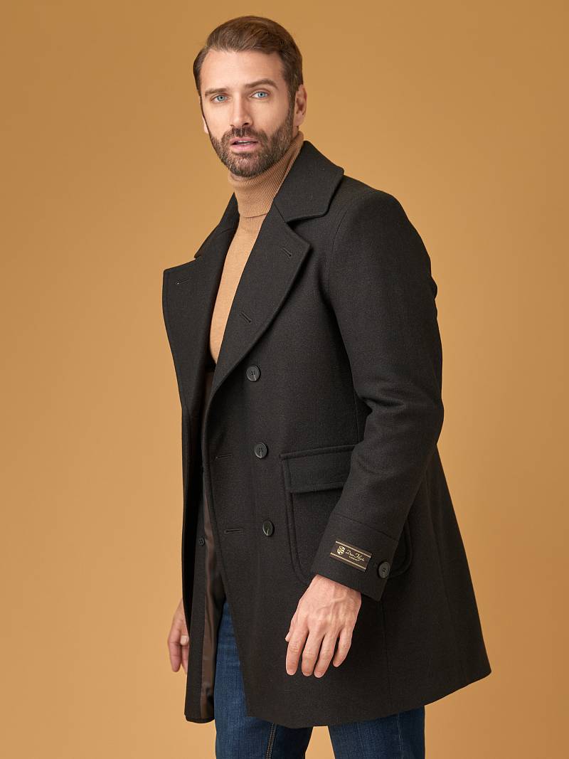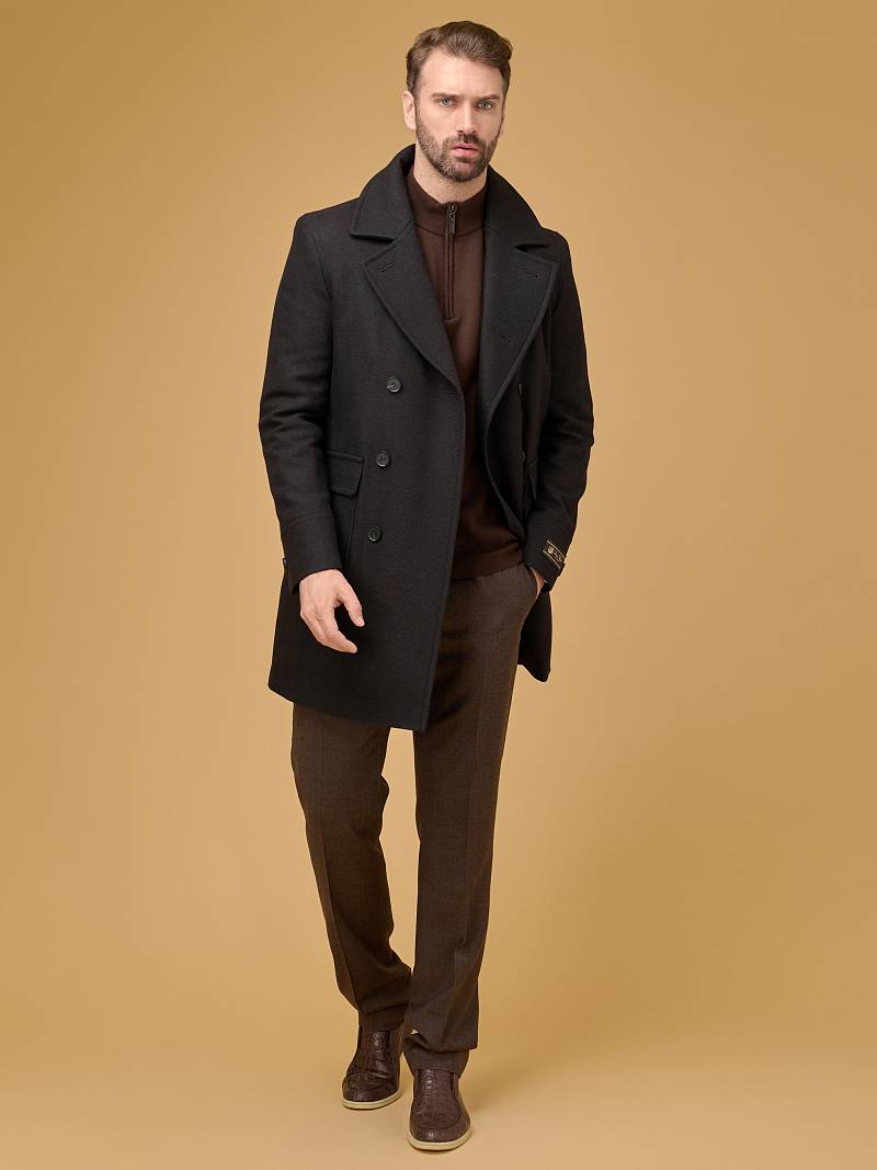 Утепленное пальто (ПОЛУПРИЛЕГАЮЩИЙ СИЛУЭТ). Мастера марки BAZIONI сшили универсальное двубортное пальто из мягкой шерсти для осенне-зимней коллекции которое станет удачным вложением в мужской гардероб. Модель с отложным воротником, удобными накладными боковыми карманами с клапаном гармонично впишется в любой образ мужчины, как с формальным костюмом, так и с вещами в стиле casual. Пальто комфортно садится по фигуре, высокая шлица не даст изделию сковывать шаг при ходьбе, а мягкая линия плеч не утяжеляет силуэт. Для пошива пальто использовали фактурную шерсть исключительного качества. Чтобы в таком изделии было комфортнее морозным днем, его дополнительно утеплили, при этом изделие получилось легким и теплым одновременно. Пальто обработано шелковой подкладкой с двумя внутренними карманами. Дизайнеры марки BAZIONI тщательно подходят к выбору материалов. Пуговицы подбираются и красятся индивидуально под каждую ткань, а прикладные материалы используют только от передовых производителей. Утеплитель: спинка-полочка-100г, рукава-60г. Пальто мужское, классическое, под джины, повседневный, молодежный, casual, для работы в офисе, модный, для мужа, сына, брата, на праздник.