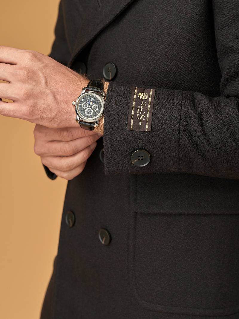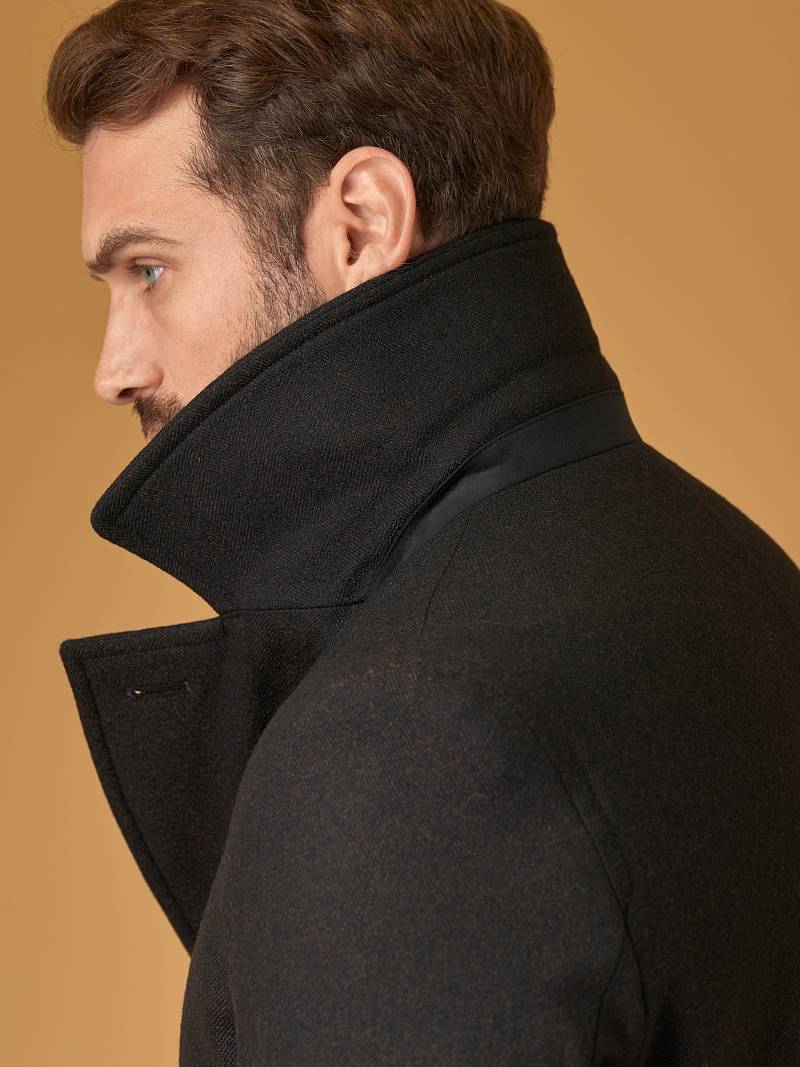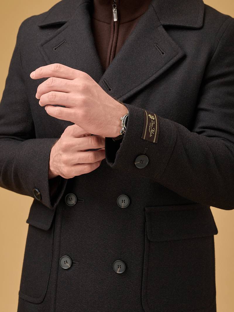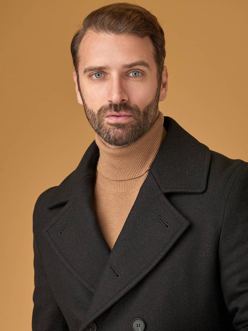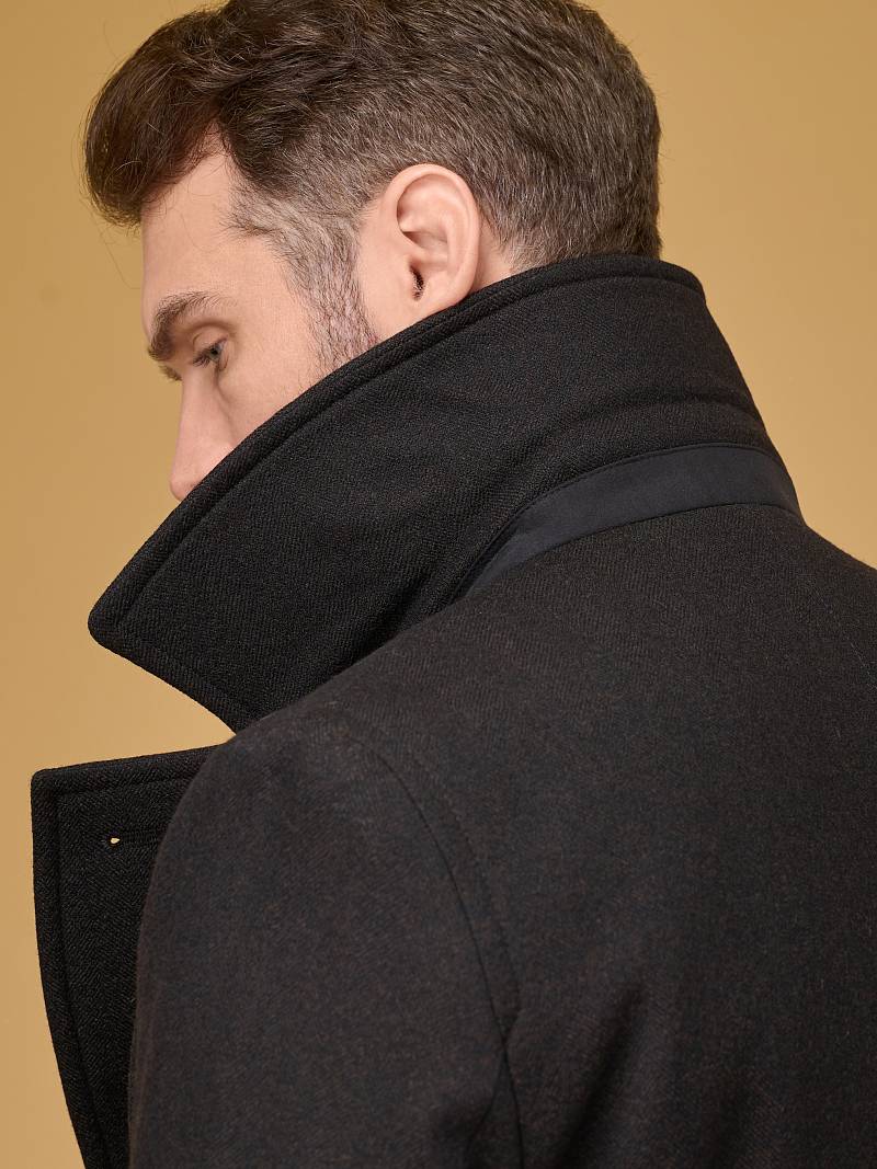 Утепленное пальто (ПОЛУПРИЛЕГАЮЩИЙ СИЛУЭТ). Мастера марки BAZIONI сшили универсальное двубортное пальто из мягкой шерсти для осенне-зимней коллекции которое станет удачным вложением в мужской гардероб. Модель с отложным воротником, удобными накладными боковыми карманами с клапаном гармонично впишется в любой образ мужчины, как с формальным костюмом, так и с вещами в стиле casual. Пальто комфортно садится по фигуре, высокая шлица не даст изделию сковывать шаг при ходьбе, а мягкая линия плеч не утяжеляет силуэт. Для пошива пальто использовали фактурную шерсть исключительного качества. Чтобы в таком изделии было комфортнее морозным днем, его дополнительно утеплили, при этом изделие получилось легким и теплым одновременно. Пальто обработано шелковой подкладкой с двумя внутренними карманами. Дизайнеры марки BAZIONI тщательно подходят к выбору материалов. Пуговицы подбираются и красятся индивидуально под каждую ткань, а прикладные материалы используют только от передовых производителей. Утеплитель: спинка-полочка-100г, рукава-60г. Пальто мужское, классическое, под джины, повседневный, молодежный, casual, для работы в офисе, модный, для мужа, сына, брата, на праздник.