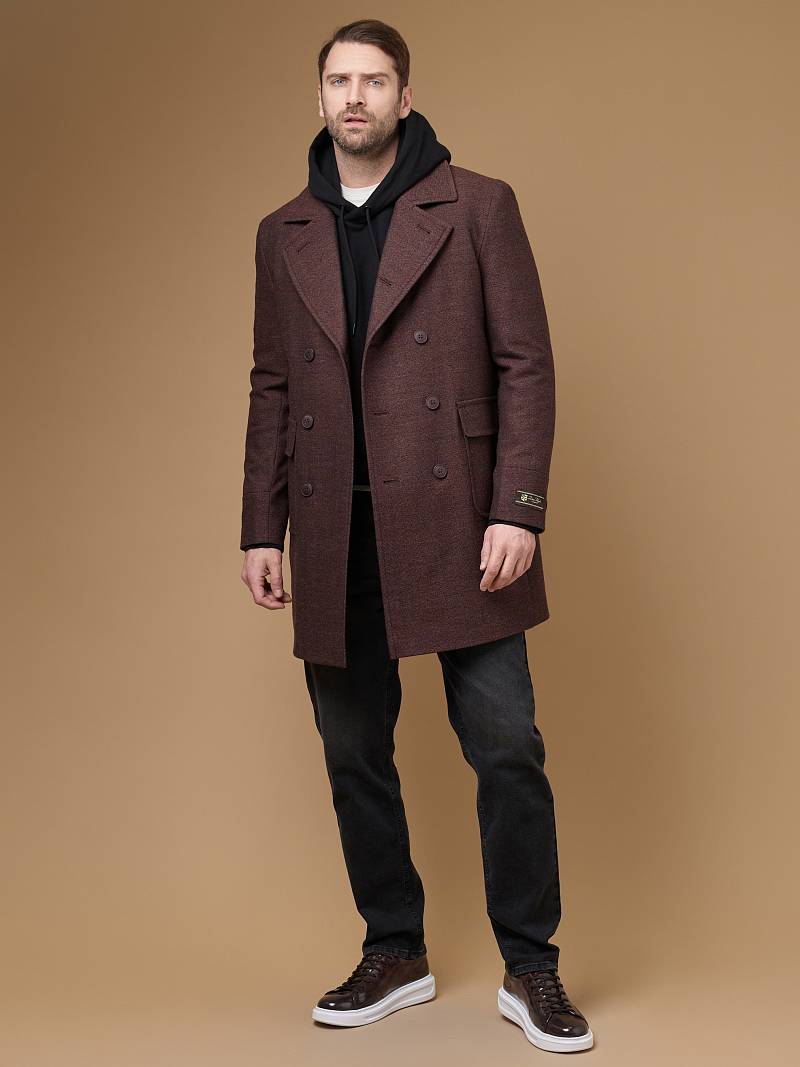 Утепленное пальто (ПОЛУПРИЛЕГАЮЩИЙ СИЛУЭТ). Мастера марки BAZIONI сшили универсальное двубортное пальто из мягкой шерсти для осенне-зимней коллекции которое станет удачным вложением в мужской гардероб. Модель с отложным воротником, удобными накладными боковыми карманами с клапаном гармонично впишется в любой образ мужчины, как с формальным костюмом, так и с вещами в стиле casual. Пальто комфортно садится по фигуре, высокая шлица не даст изделию сковывать шаг при ходьбе, а мягкая линия плеч не утяжеляет силуэт. Для пошива пальто использовали фактурную шерсть исключительного качества. Чтобы в таком изделии было комфортнее морозным днем, его дополнительно утеплили, при этом изделие получилось легким и теплым одновременно. Пальто обработано шелковой подкладкой с двумя внутренними карманами. Дизайнеры марки BAZIONI тщательно подходят к выбору материалов. Пуговицы подбираются и красятся индивидуально под каждую ткань, а прикладные материалы используют только от передовых производителей. Утеплитель: спинка-полочка-100г, рукава-60г. Пальто мужское, классическое, под джины, повседневный, молодежный, casual, для работы в офисе, модный, для мужа, сына, брата, на праздник.