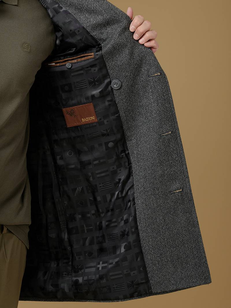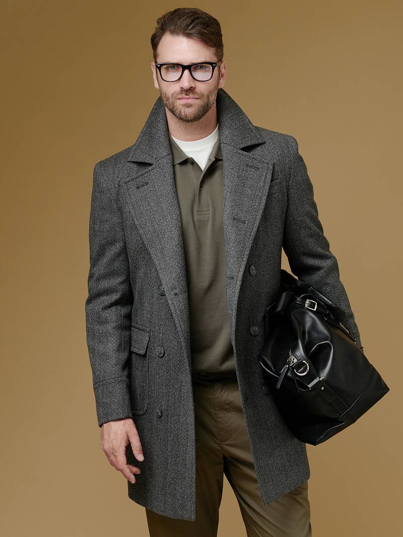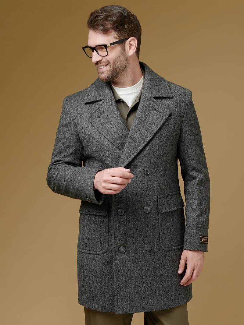 Утепленное пальто (ПОЛУПРИЛЕГАЮЩИЙ СИЛУЭТ). Мастера марки BAZIONI сшили универсальное двубортное пальто из мягкой шерсти для осенне-зимней коллекции которое станет удачным вложением в мужской гардероб. Модель с отложным воротником, удобными накладными боковыми карманами с клапаном гармонично впишется в любой образ мужчины, как с формальным костюмом, так и с вещами в стиле casual. Пальто комфортно садится по фигуре, высокая шлица не даст изделию сковывать шаг при ходьбе, а мягкая линия плеч не утяжеляет силуэт. Для пошива пальто использовали фактурную шерсть исключительного качества. Чтобы в таком изделии было комфортнее морозным днем, его дополнительно утеплили, при этом изделие получилось легким и теплым одновременно. Пальто обработано шелковой подкладкой с двумя внутренними карманами. Дизайнеры марки BAZIONI тщательно подходят к выбору материалов. Пуговицы подбираются и красятся индивидуально под каждую ткань, а прикладные материалы используют только от передовых производителей. Утеплитель: спинка-полочка-100г, рукава-60г. Пальто мужское, классическое, под джины, повседневный, молодежный, casual, для работы в офисе, модный, для мужа, сына, брата, на праздник.