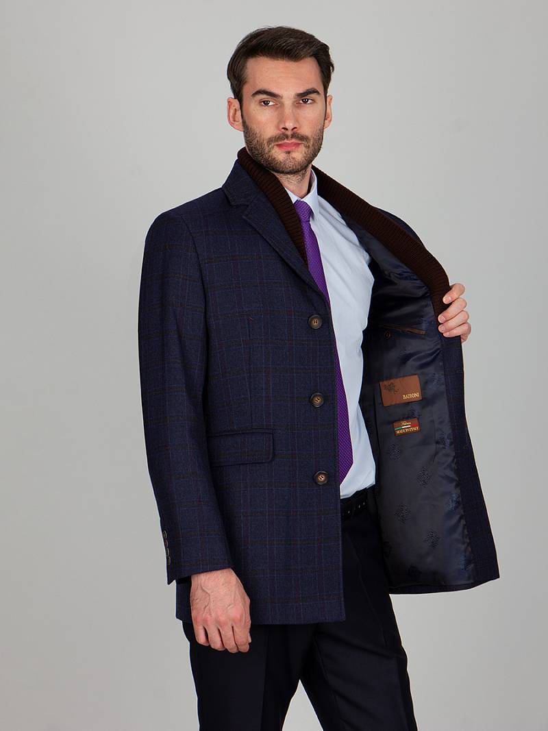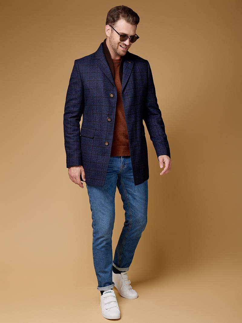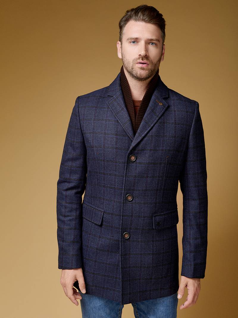 2068-3 S DK NAVY CHECK/ Пальто мужское