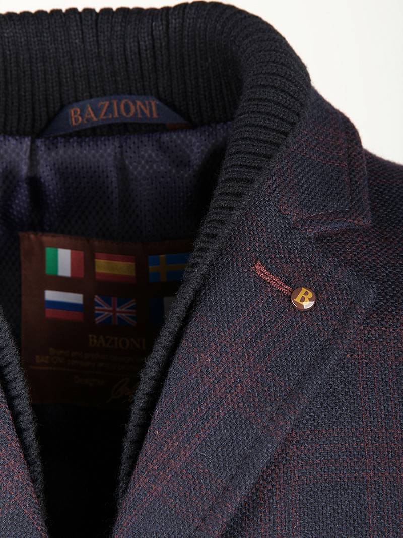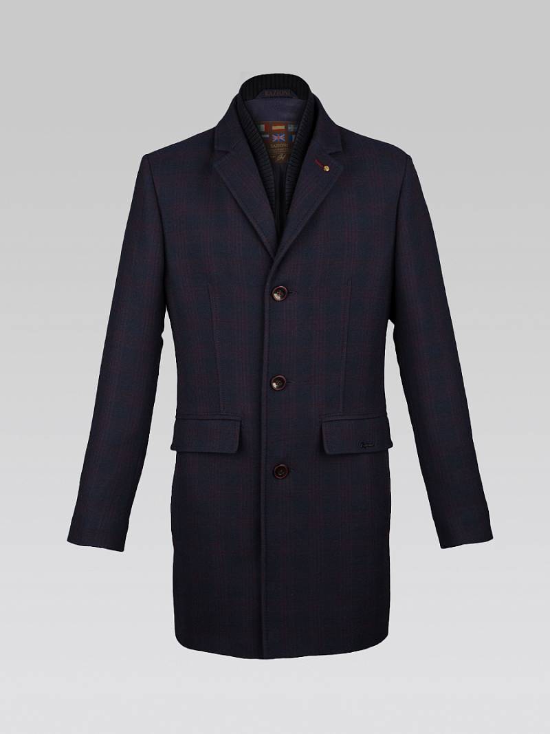 Пальто мужское, центральная застёжка на 3 пуговицы, Воротник английский +воротник трикотажный, боковые карманы с клапаном, рукав втачной, одна шлица. BAZIONI