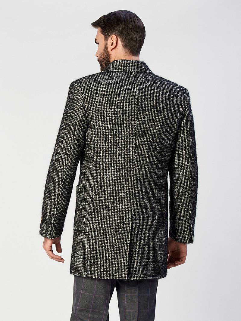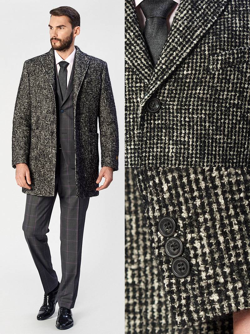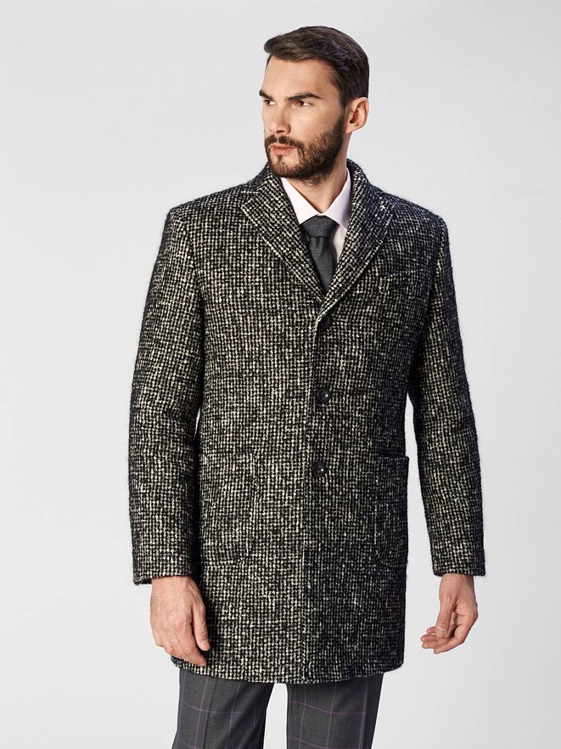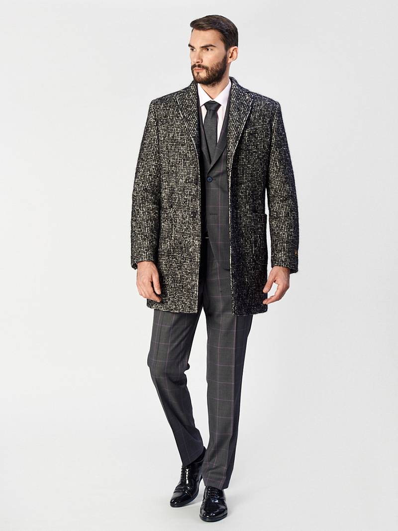 Пальто мужское утепленное с застежкой на 3 пуговицы, воротник английский с лацканами, нагрудный карман c листочкой и два нижних боковых накладных кармана. Длина изделия по спинке для роста 176 - 90см. Ткань верха: 100%шерсть. Подкладка: 50%вискоза 50%полиэстер. Утеплитель: термоплюс 60гр