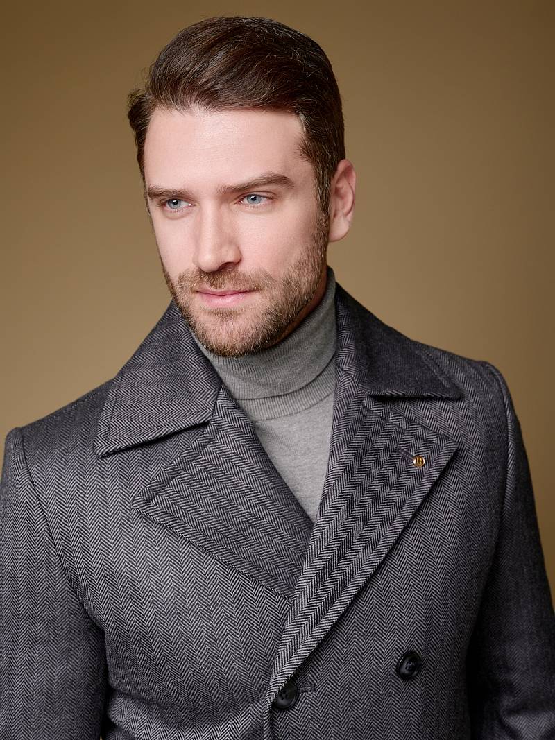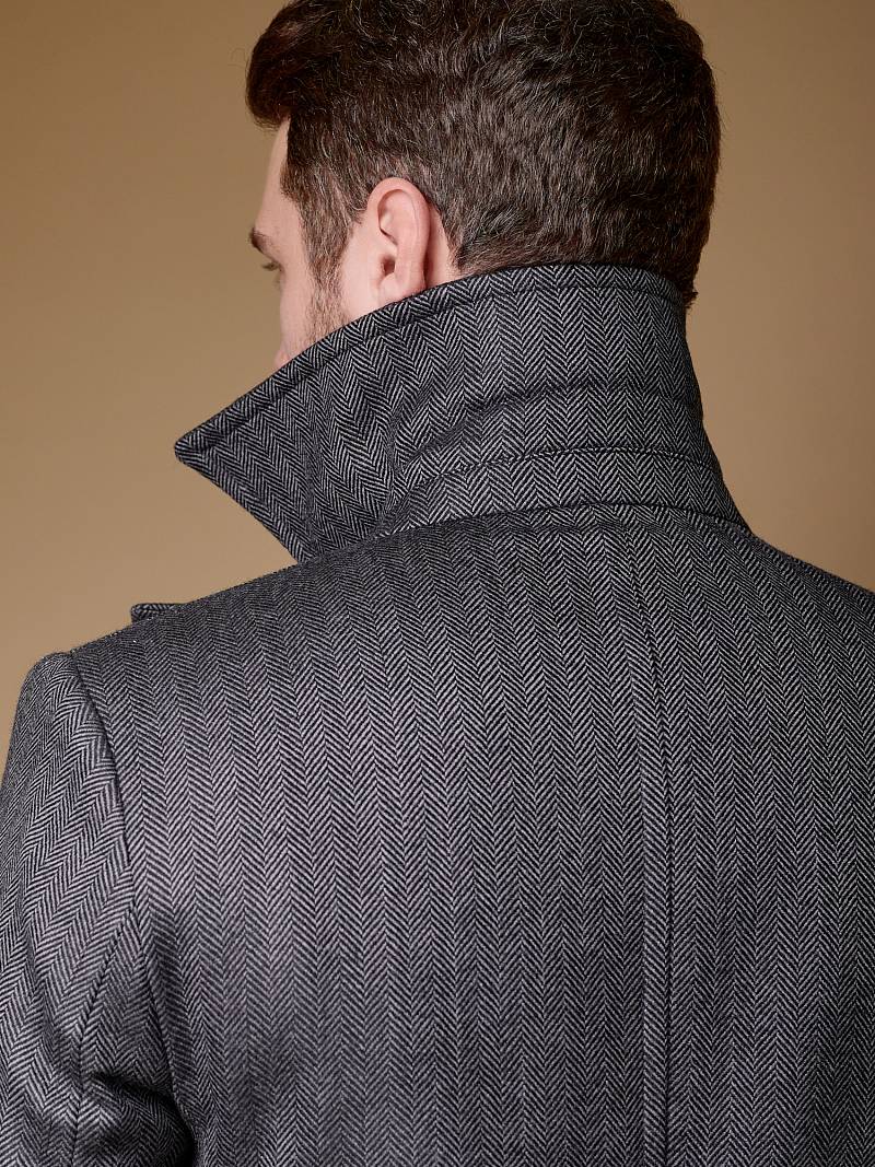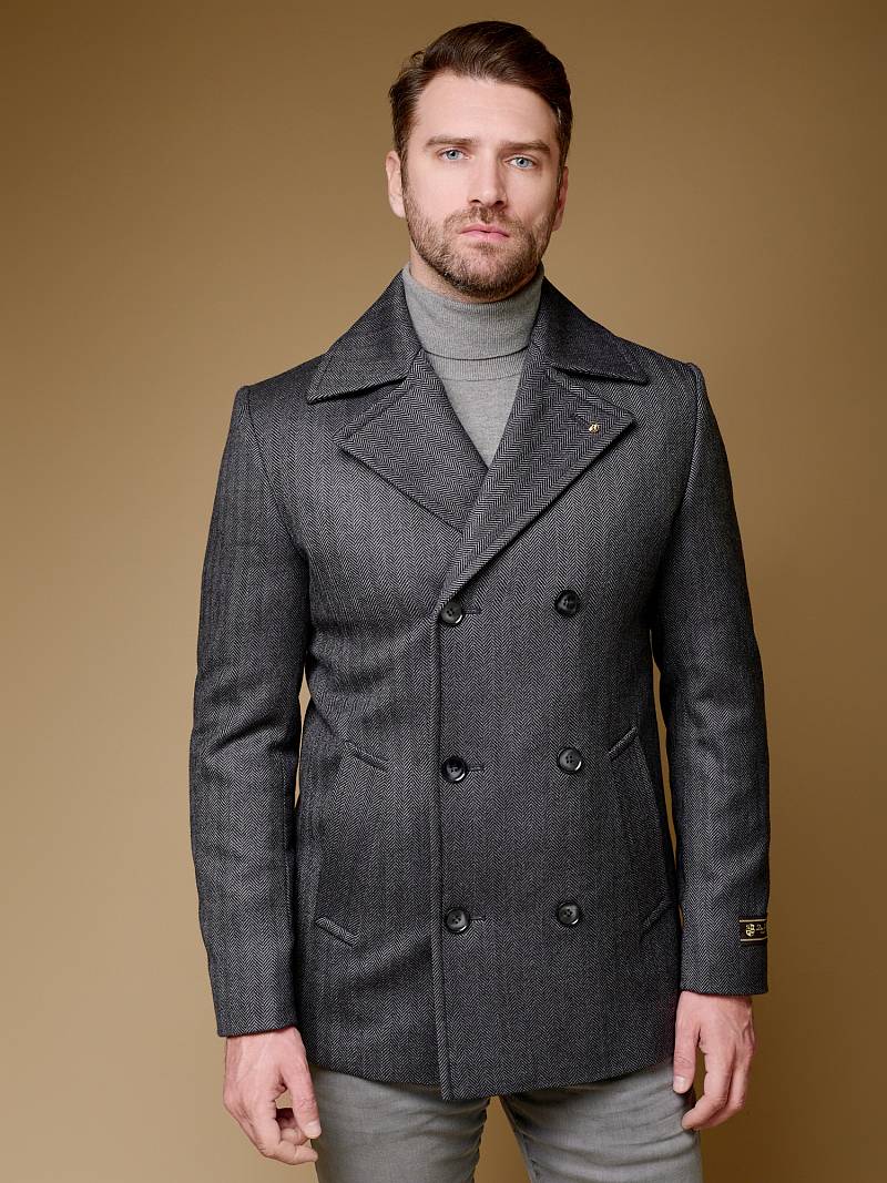 Slim Fit (ПРИТАЛЕННЫЙ СИЛУЭТ). Бушлат двубортный утепленный с застежкой на пуговицы, с двумя наклонными боковыми карманами "листочка". По спинке расположена одна шлица. Внутри на подкладке расположены два внутренних кармана. Отделочная сторочка проходит по краю борта, воротнику и лацкану. Термоплюс 100 гр.