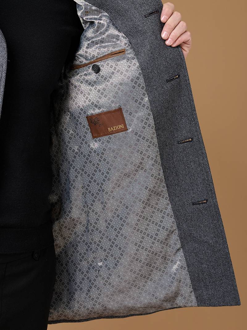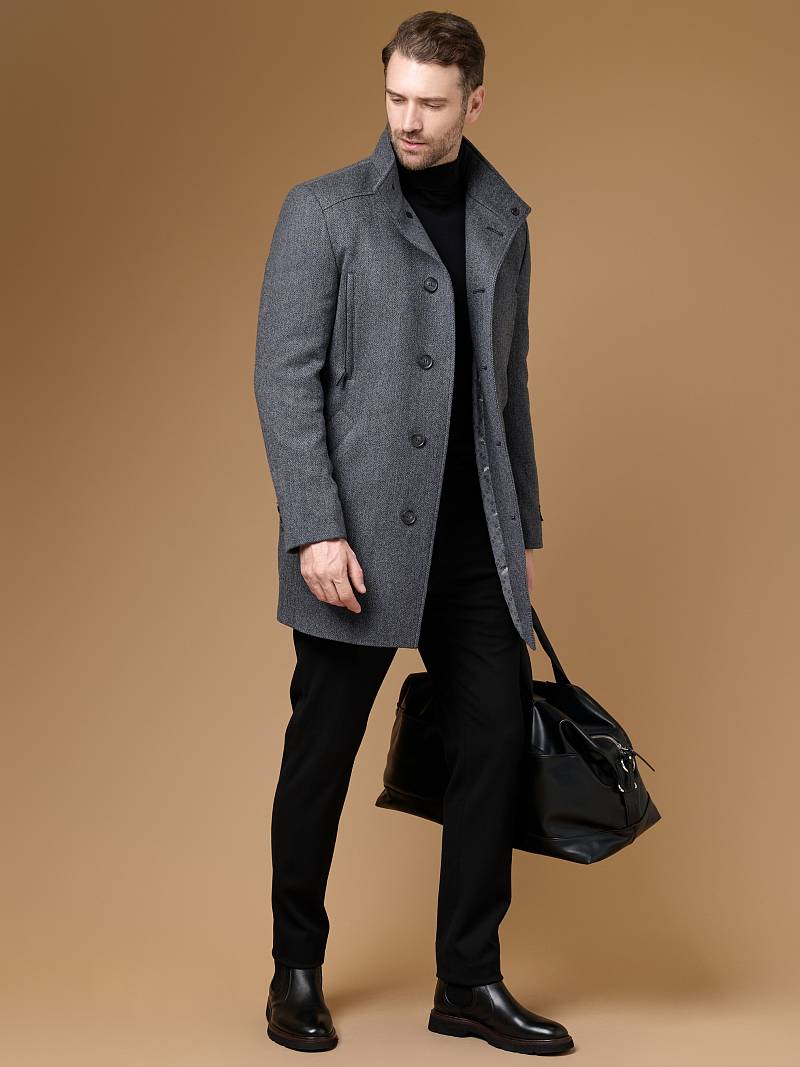 Утепленное пальто (ПОЛУПРИЛЕГАЮЩИЙ СИЛУЭТ). Мастера марки BAZIONI сшили универсальное однобортное пальто для осенне-зимней коллекции которое станет удачным вложением в мужской гардероб. Модель стала выглядеть более демократично благодаря воротнику-стойке, отстроченным кокеткам на полочке, удобными вертикальными нагрудными карманами на молнии и боковыми прорезными карманами с листочкой. Пальто гармонично впишется в любой образ, отлично сядет по фигуре, а расположенные по спинке шлица обеспечат дополнительный комфорт и свободу движения. Для пошива пальто использовали шерсть высокого качества. За защиту от холода в пальто отвечает легкий и теплый утеплитель. Украшено пальто металлической нашивкой с логотипом бренда на боковом кармане. Пальто обработано шелковой подкладкой с двумя внутренними карманами. Дизайнеры марки BAZIONI тщательно подходят к выбору материалов. Пуговицы подбираются и красятся индивидуально под каждую ткань, а прикладные материалы используют только от передовых производителей. Утеплитель: спинка-полочка-100г, рукава-60г. Пальто мужское, классическое, под джины, повседневный, молодежный, casual, для работы в офисе, модный, для мужа, сына, брата, на праздник.
