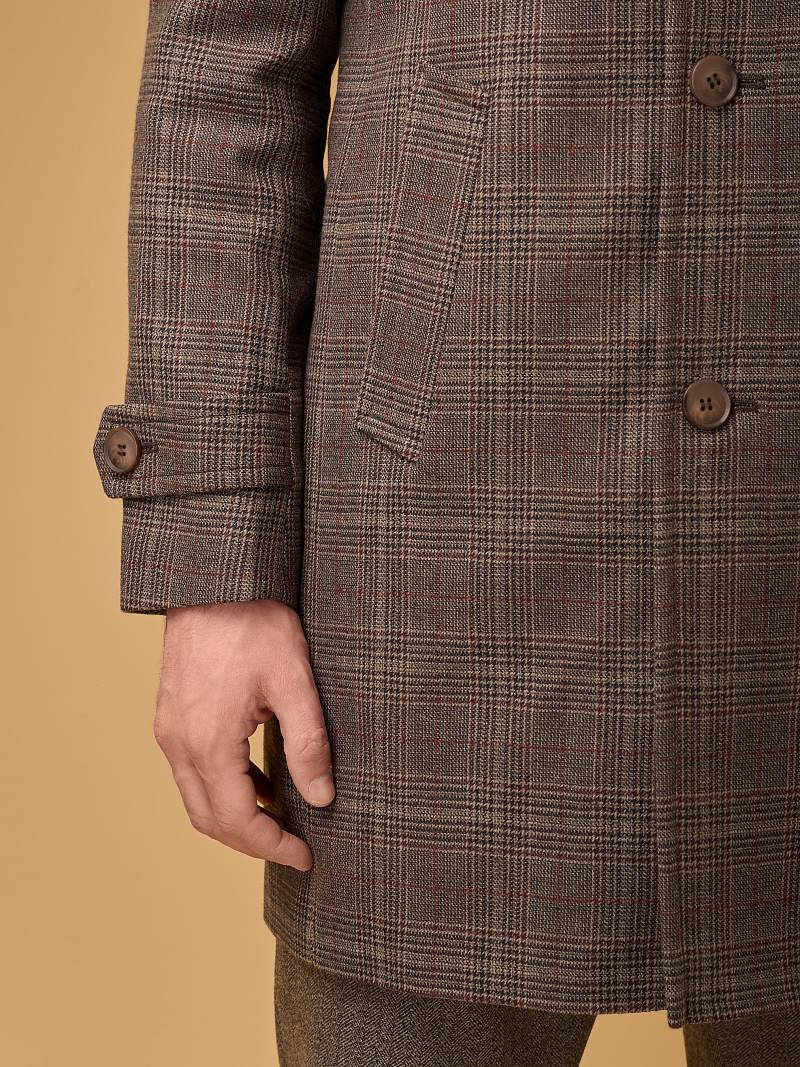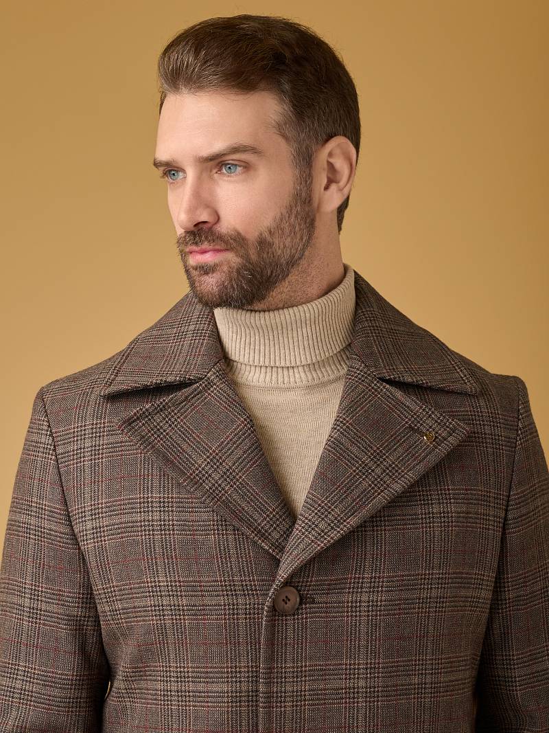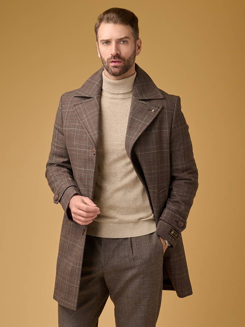 Утепленное пальто (ПОЛУПРИЛЕГАЮЩИЙ СИЛУЭТ). Дизайнеры марки BAZIONI создали однобортное пальто для осенне-зимней коллекции, вдохновившись главным принципам марки — стиль и качество, неподверженные времени. Благодаря выверенным лекалам и кропотливой сборке деталей силуэт вещи получился четким, а посадка комфортной. Для создания модели с широкими лацканами использовали фактурную шерстяную ткань высокого качества и дополнительно утеплили. Поэтому пальто получилось легким и теплым одновременно. Модель на трех пуговицах украшена патами на рукавах и дополнено двумя удобными боковыми карманами с листочкой. Длины изделия достаточно, чтобы носить его с пиджаком. Чтобы модель не стесняла движения, сзади предусмотрели шлицу. Хоть модель и выдержана в классическом стиле она прекрасно будет сочетаться с неформальными вещами в стиле casual. Пальто обработано шелковой подкладкой с двумя внутренними карманами. Дизайнеры марки BAZIONI тщательно подходят к выбору материалов. Пуговицы подбираются и красятся индивидуально под каждую ткань, а прикладные материалы используют только от передовых производителей. Утеплитель: спинка-полочка-100г, рукава-60г. Пальто мужское, классическое, под джины, повседневный, молодежный, casual, для работы в офисе, модный, для мужа, сына, брата, на праздник.