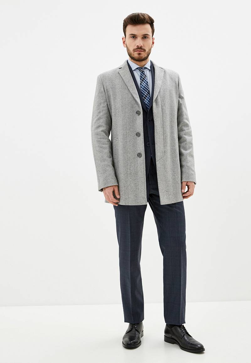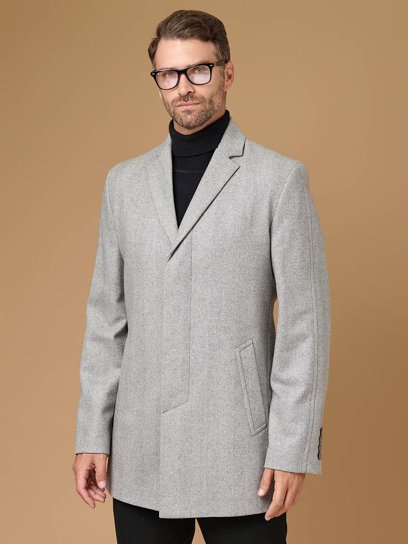 Пальто мужcкое, на супатной застёжке, боковые карманы с листочками.