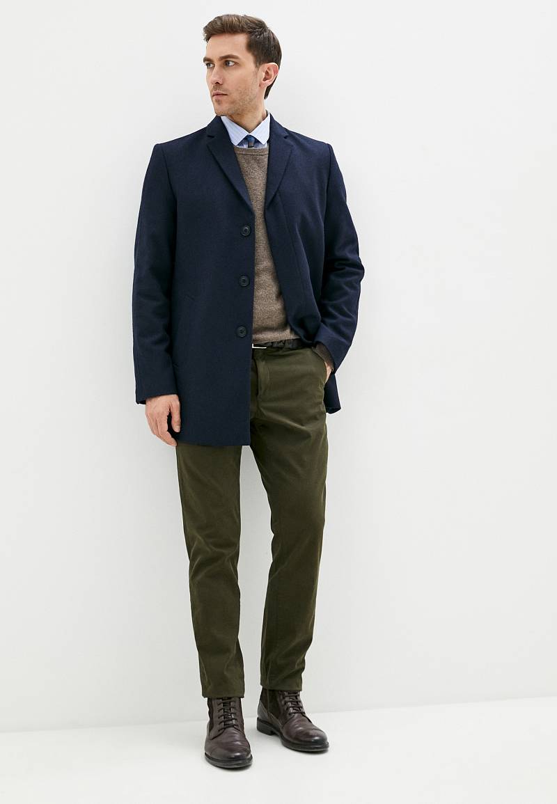 Пальто мужcкое, на супатной застёжке, боковые карманы с листочками
