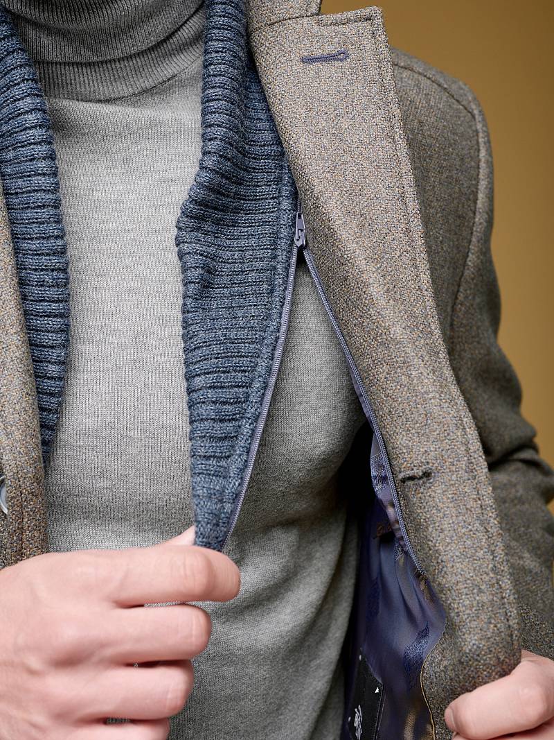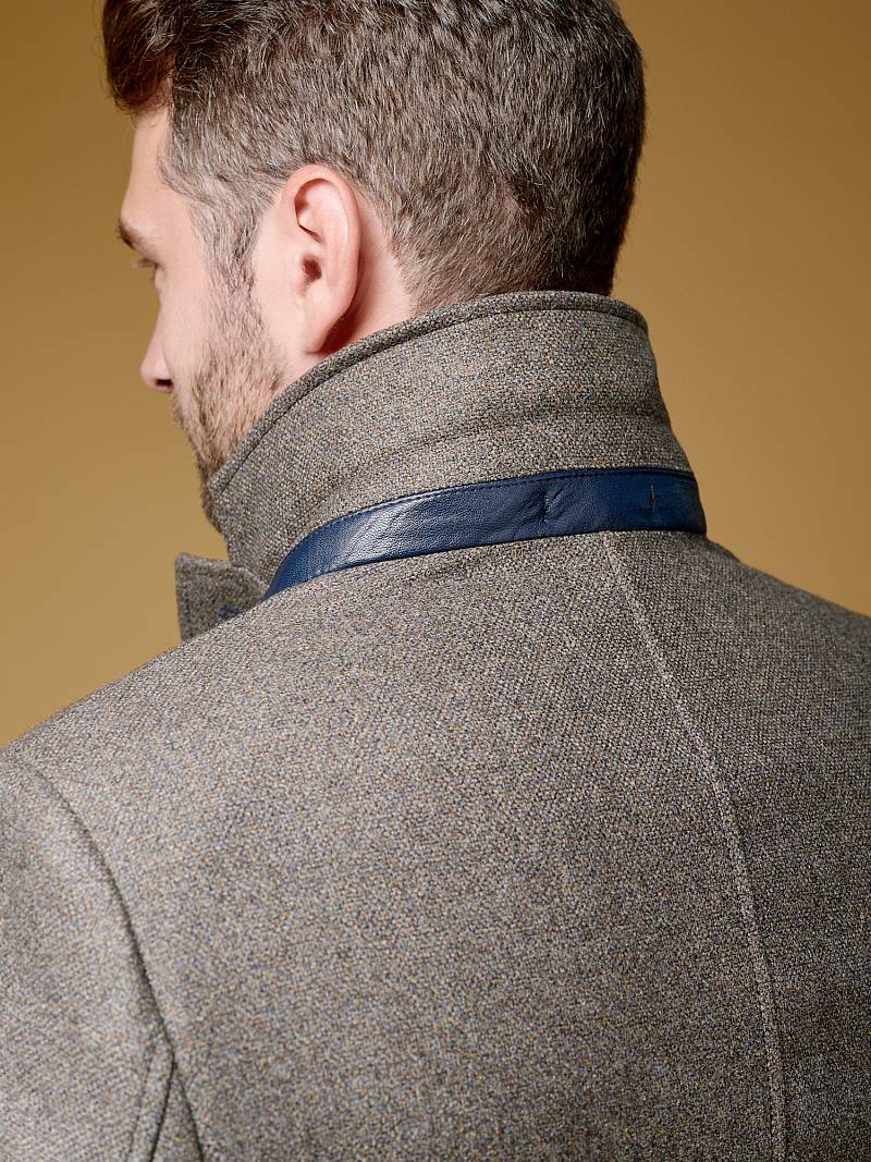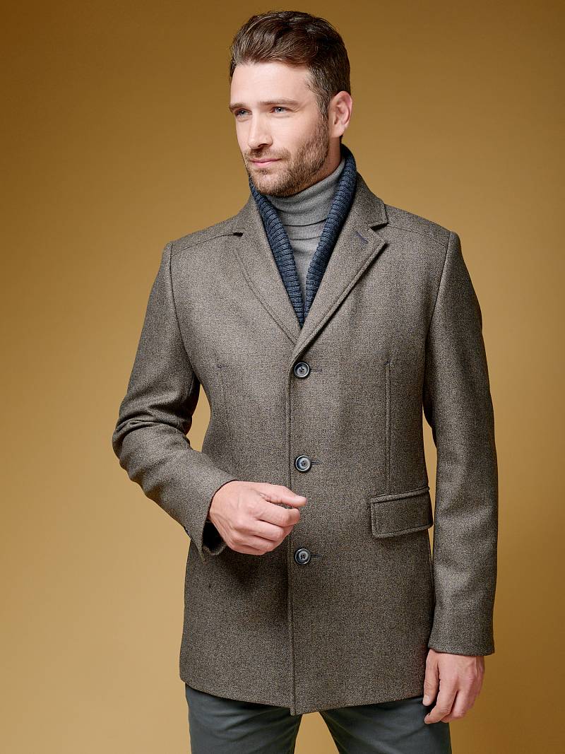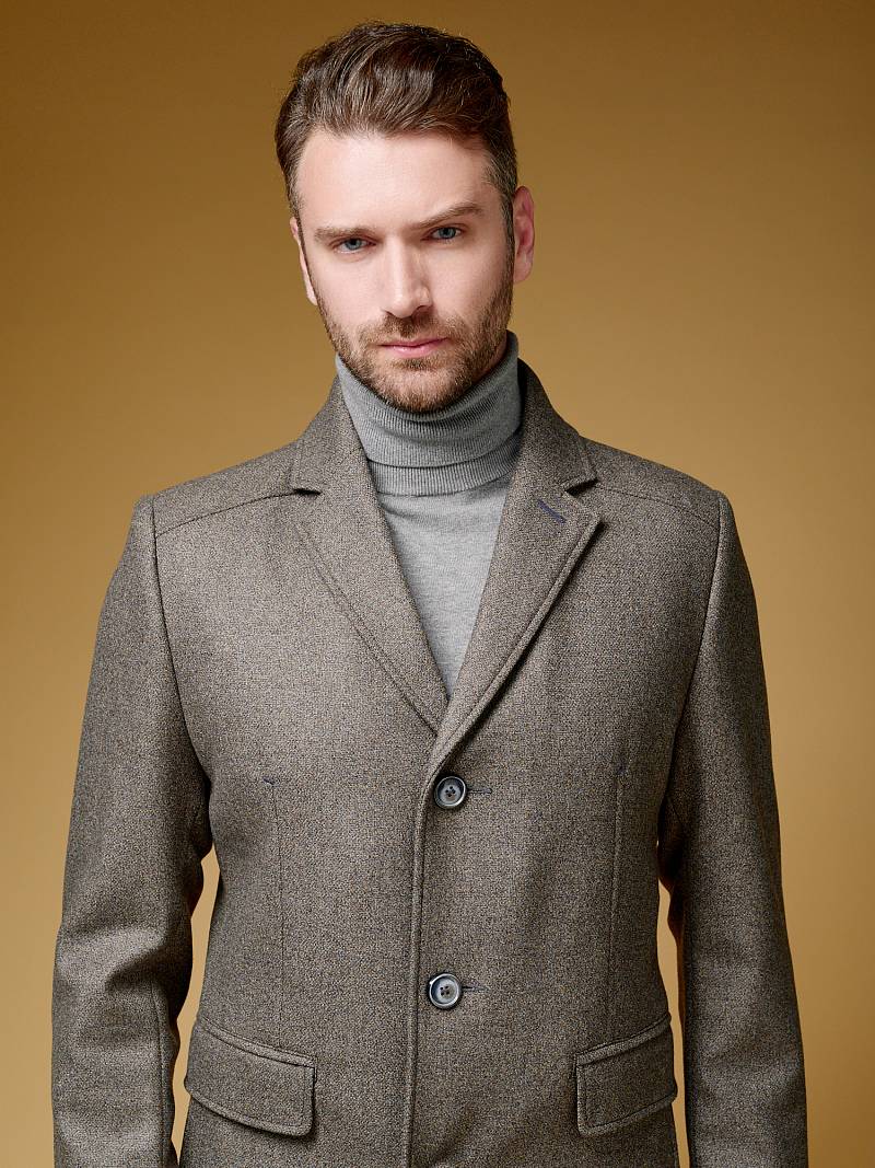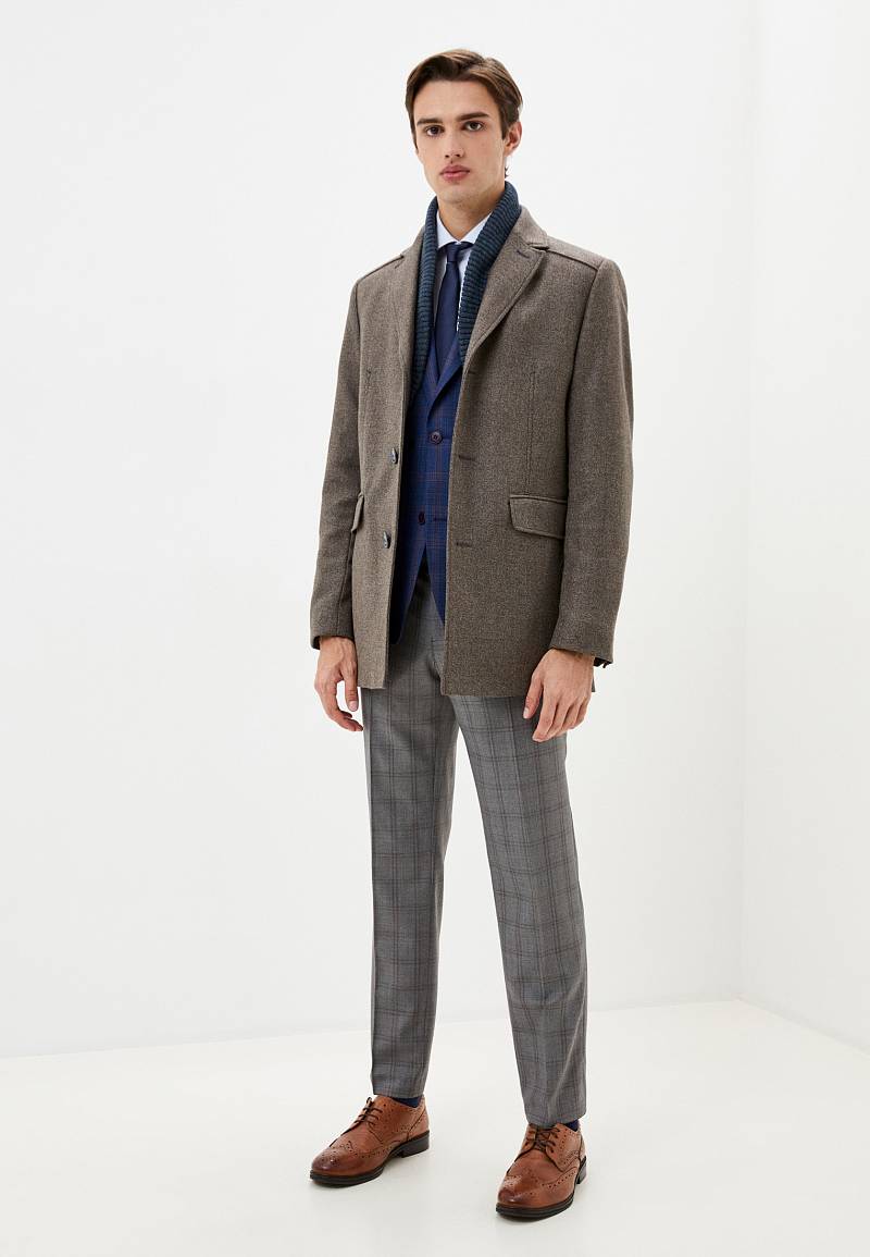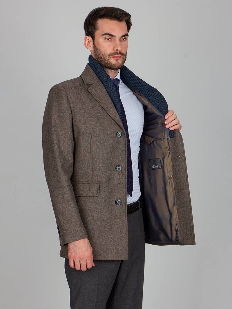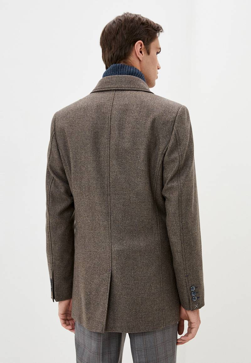 Пальто мужское, центральная застёжка на 3 пуговицы, Воротник английский +воротник трикотажный отстегивается на молнии, боковые карманы с клапаном, рукав втачной, спинка со средним швом, одна шлица. На подкладке два внутренних кармана на пуговицах. Длина изделия по спинке для роста 176 - 82см. Ткань верха: 100%шерсть. Подкладка: 50%вискоза 50%полиэстер.