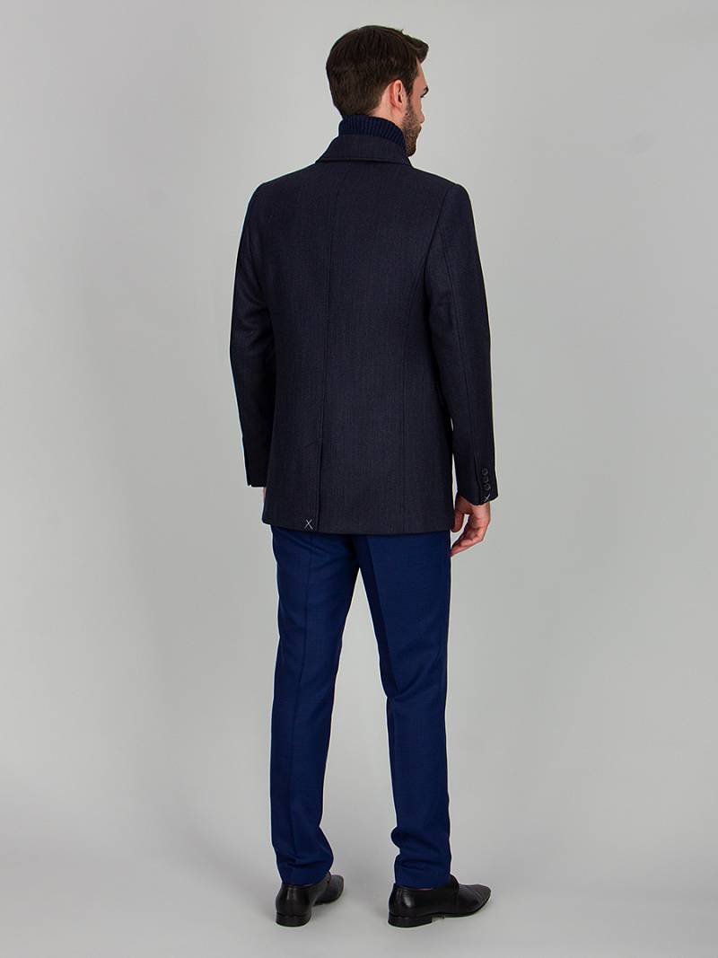 Пальто мужское, центральная застёжка на 3 пуговицы, Воротник английский +воротник трикотажный отстегивается на молнии, боковые карманы с клапаном, рукав втачной, спинка со средним швом, одна шлица. На подкладке два внутренних кармана на пуговицах. Длина изделия по спинке для роста 176 - 82см. Ткань верха: 100%шерсть. Подкладка: 50%вискоза 50%полиэстер.