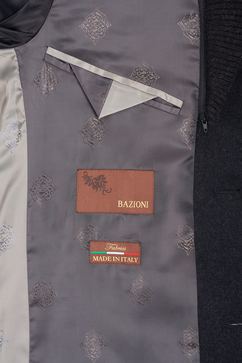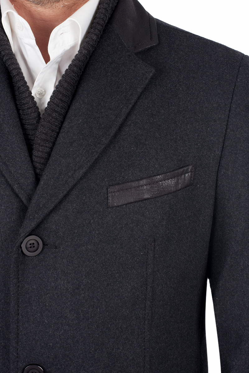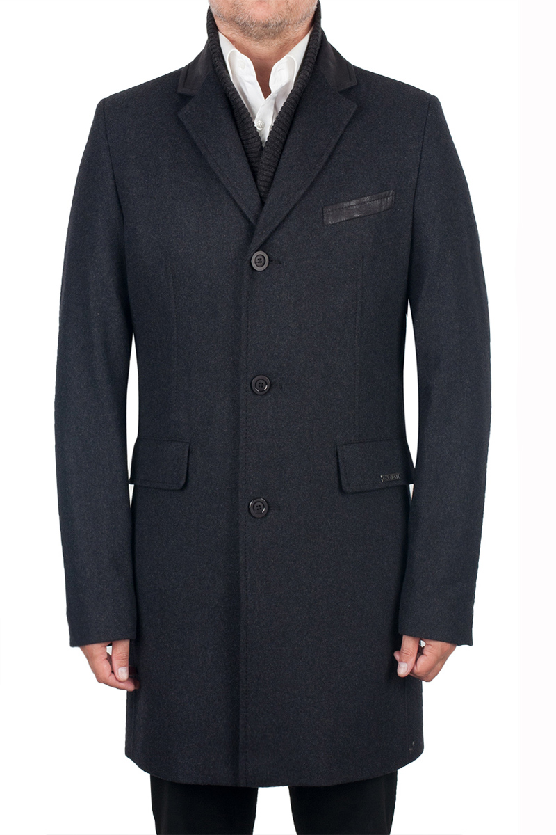 Пальто мужское, застёжка на 3 пуговицы, Воротник английский +трикотажный остёгивающийся, карманы с клапаном, одна шлица. BAZIONI