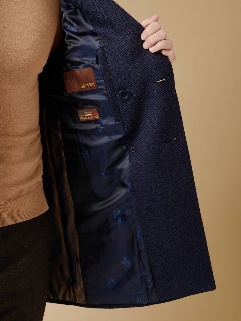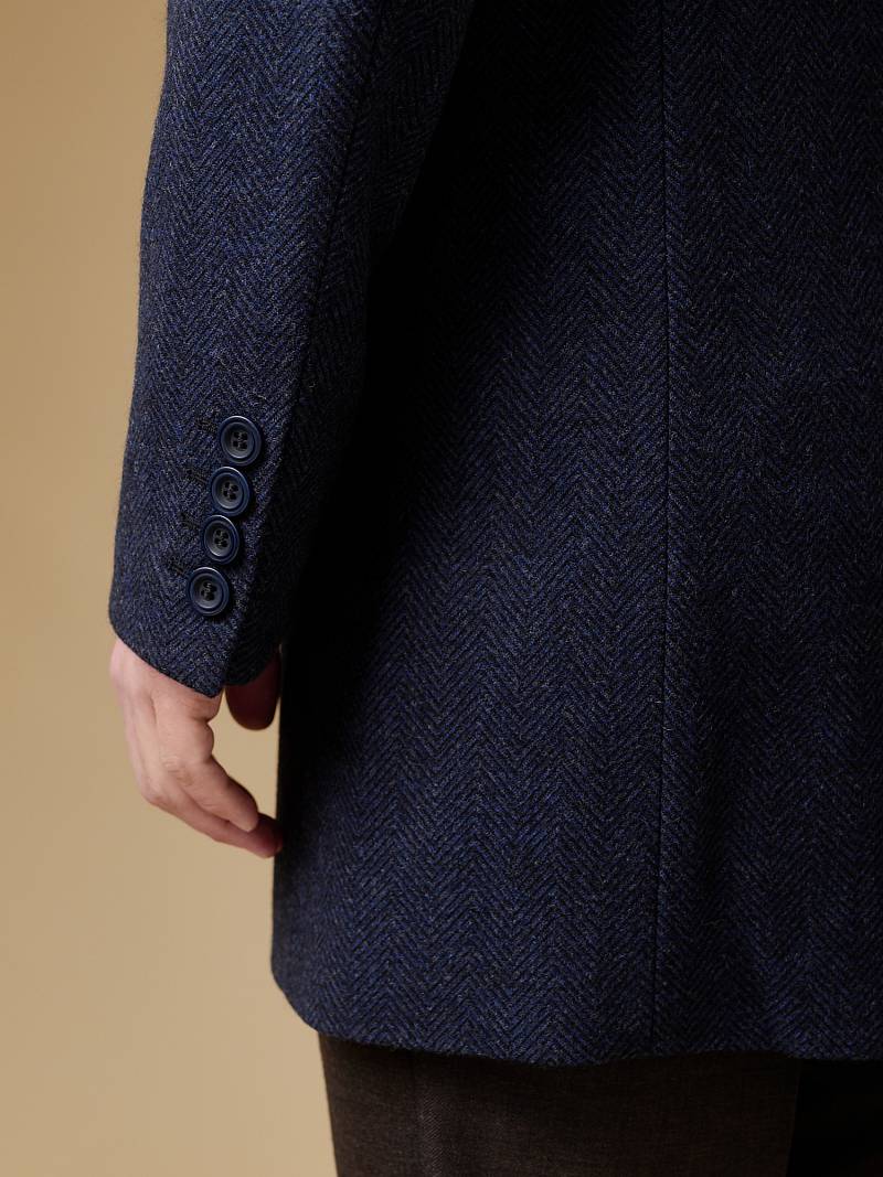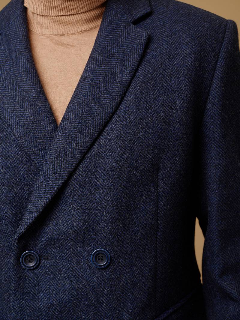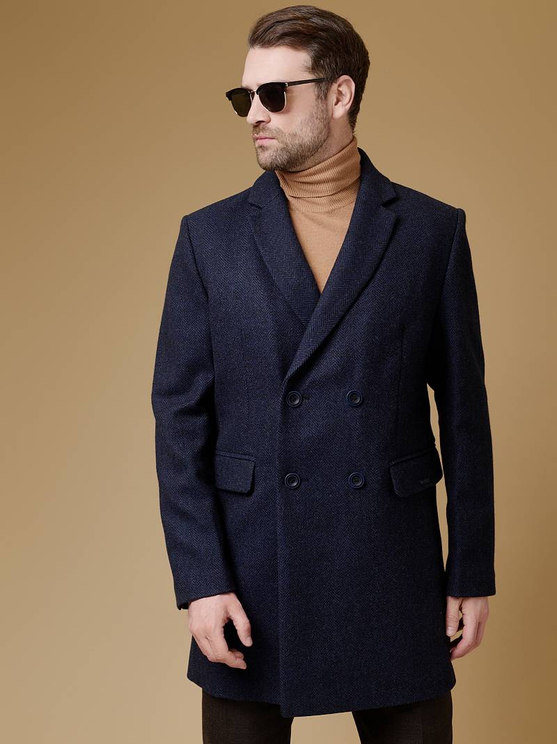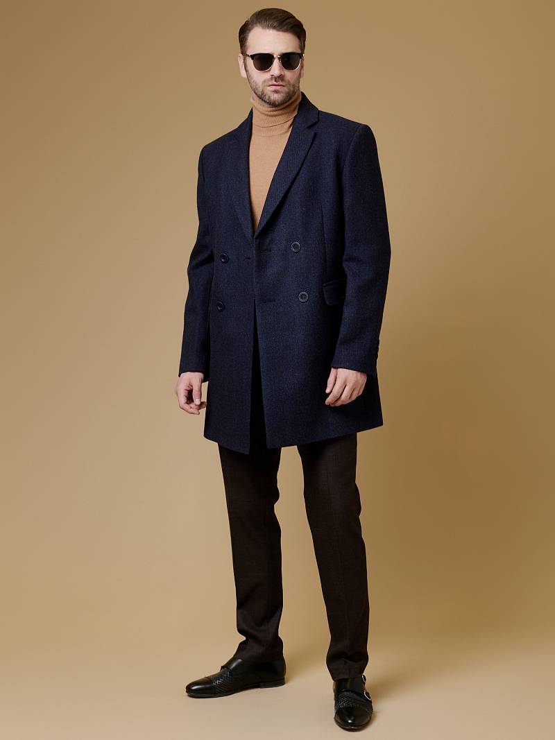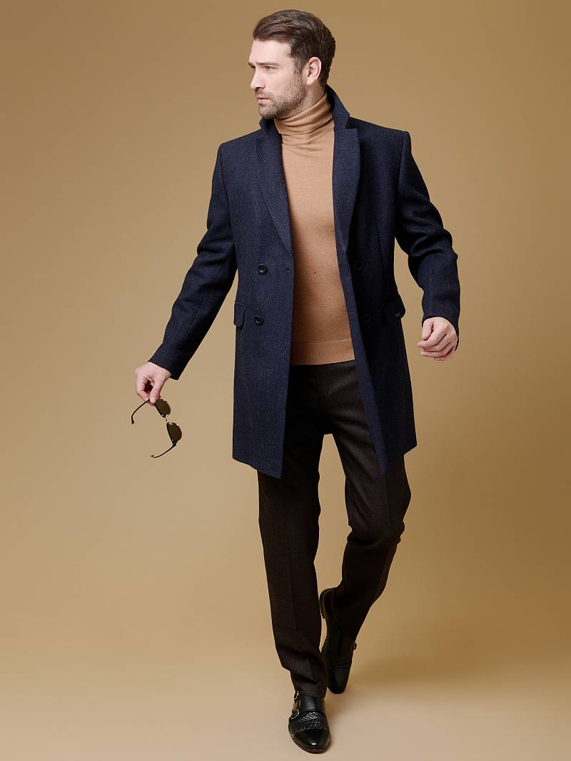 Двубортное пальто, воротник с лацканом классические, карман с клапаном. По спинке шлица.