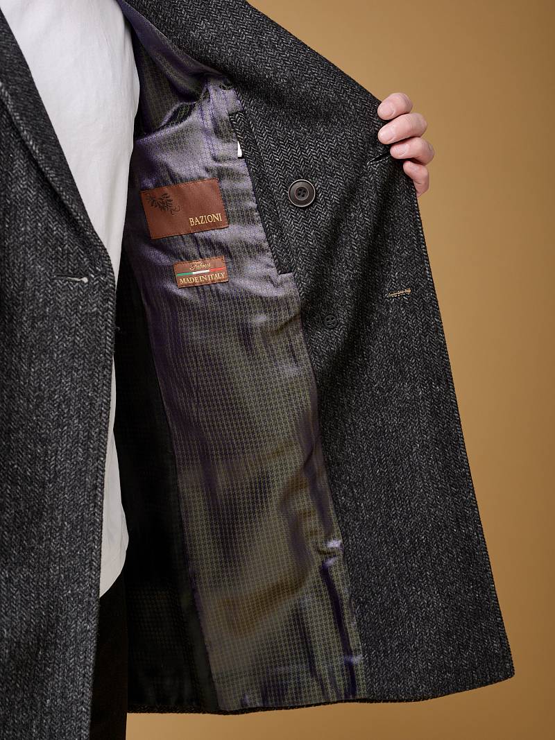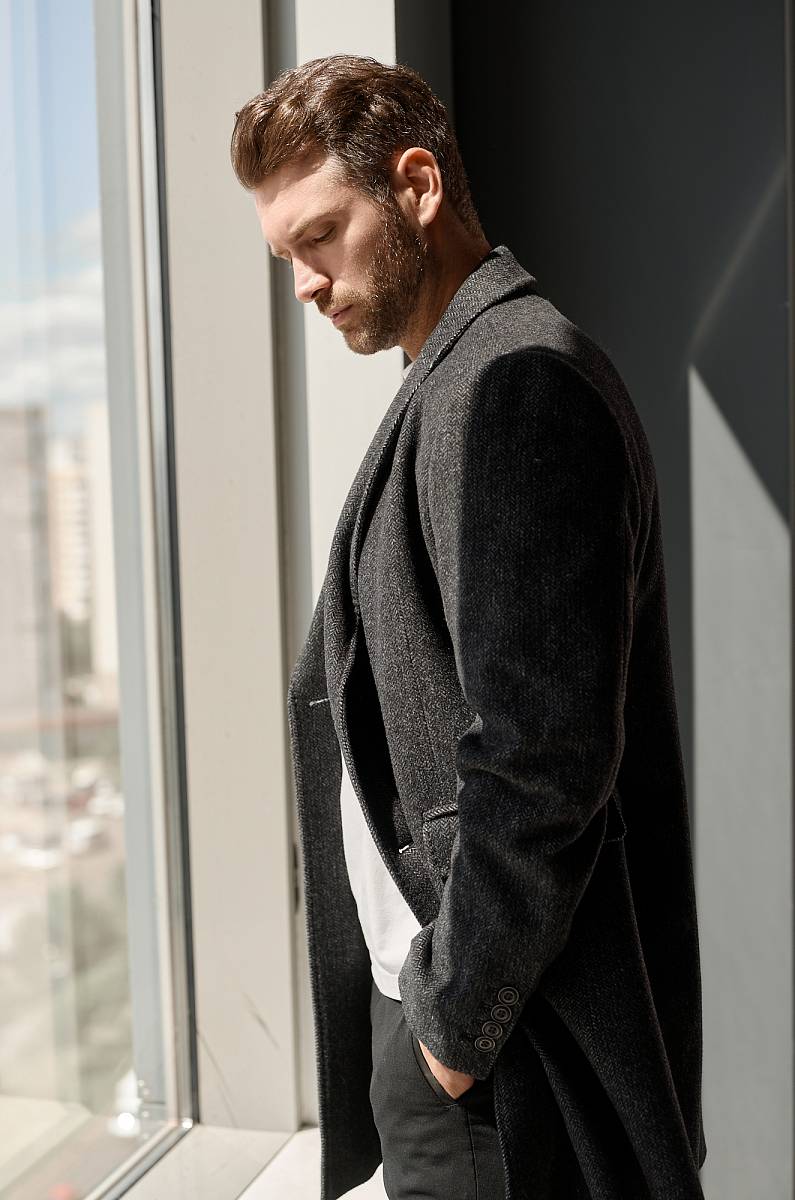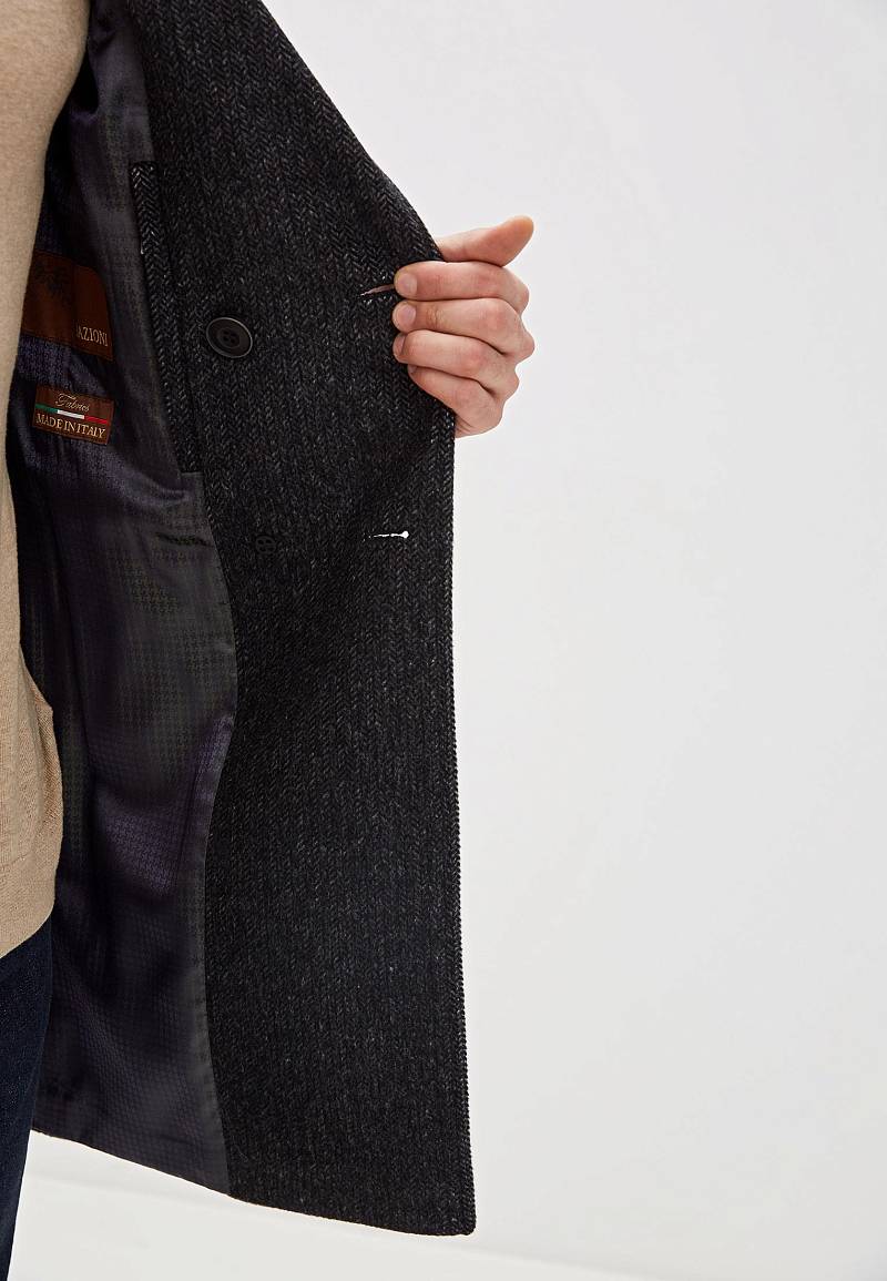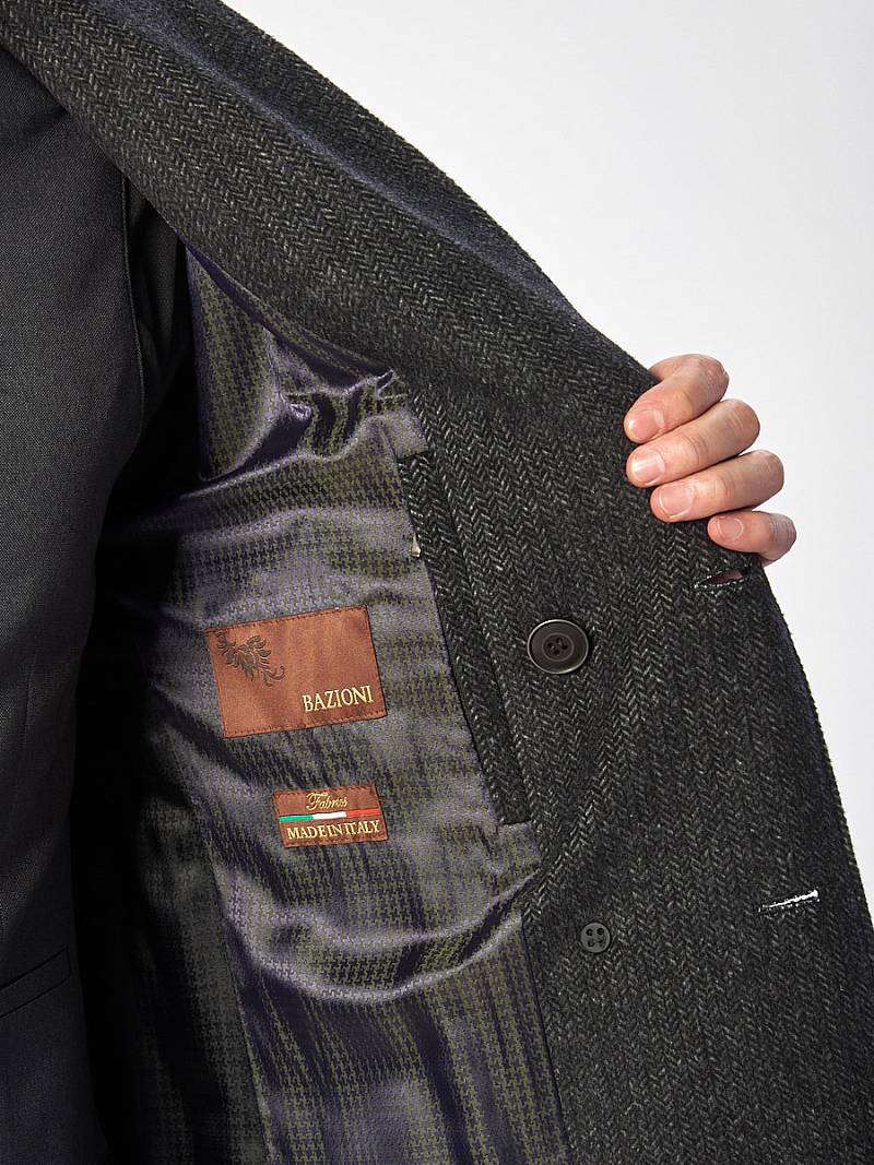 Пальто мужское, застёжка на 3 пуговицы, Воротник английский +трикотажный, карманы с клапаном, одна шлица. BAZIONI